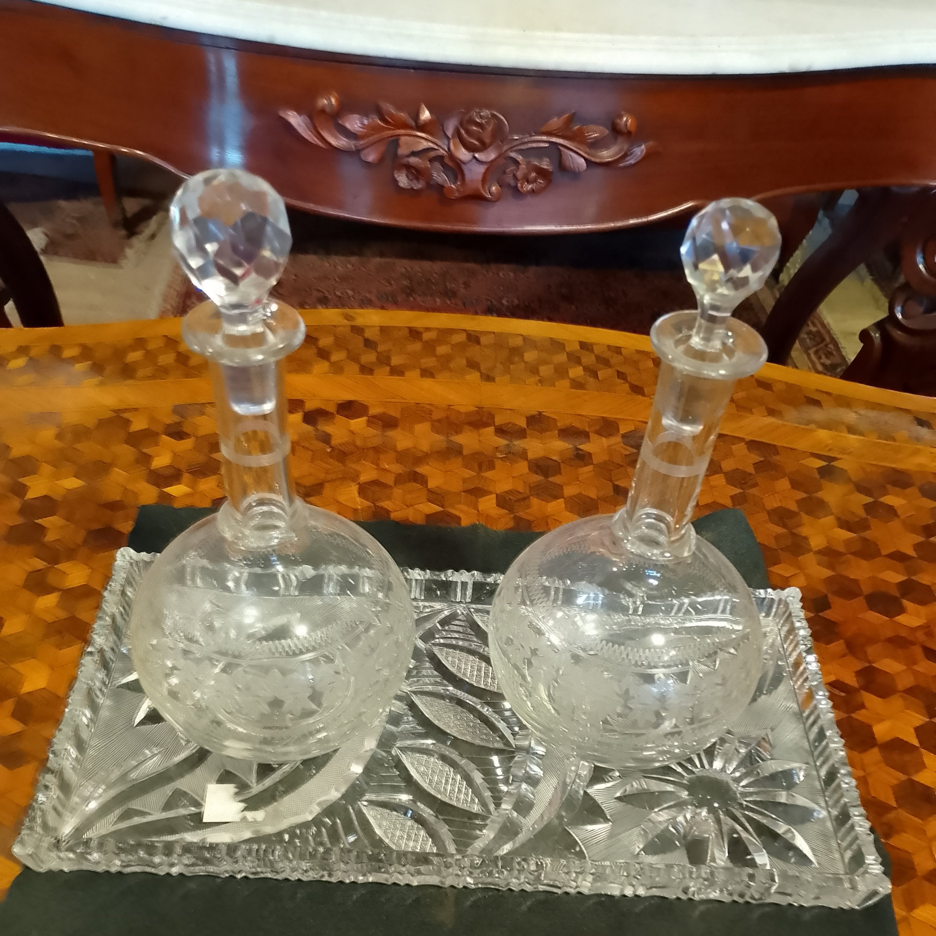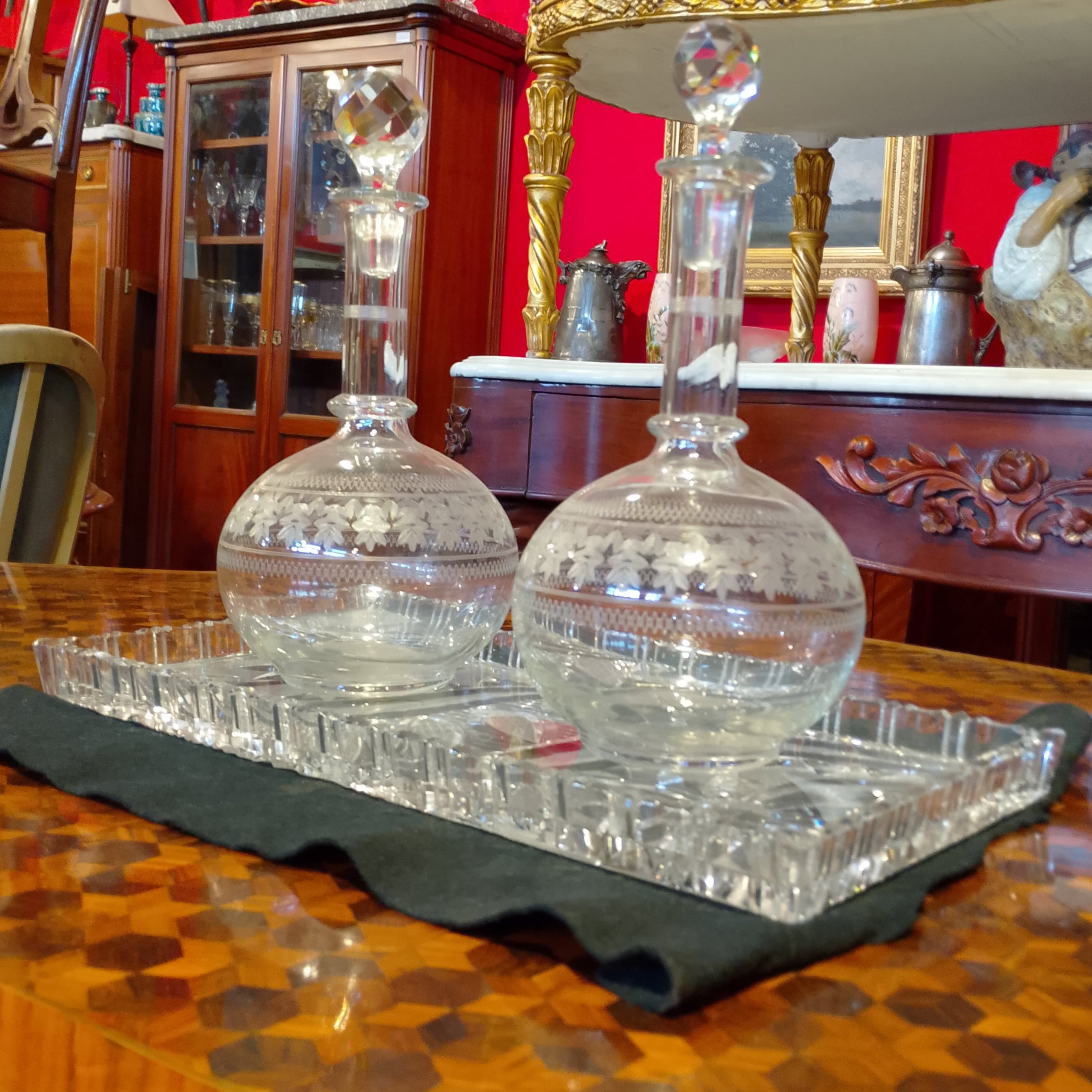 Etat : En très bon état. Écrivez au magasin pour acheter séparément : Paire de bouteilles 240 000 $ et Plateau en verre taillé 220 000 $