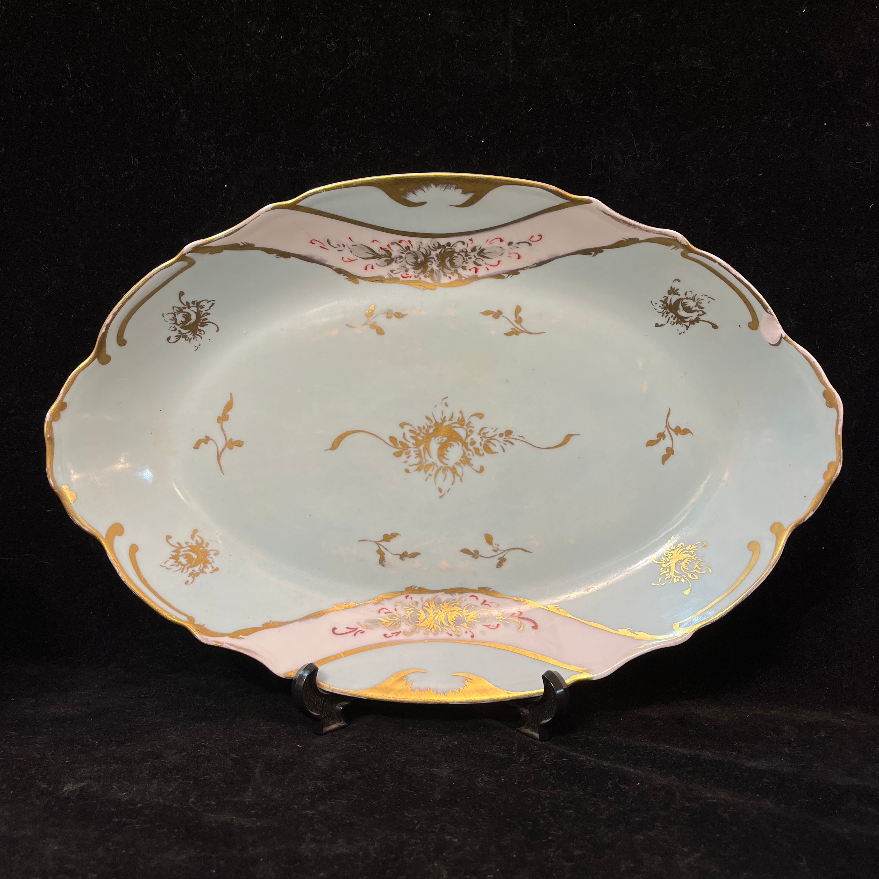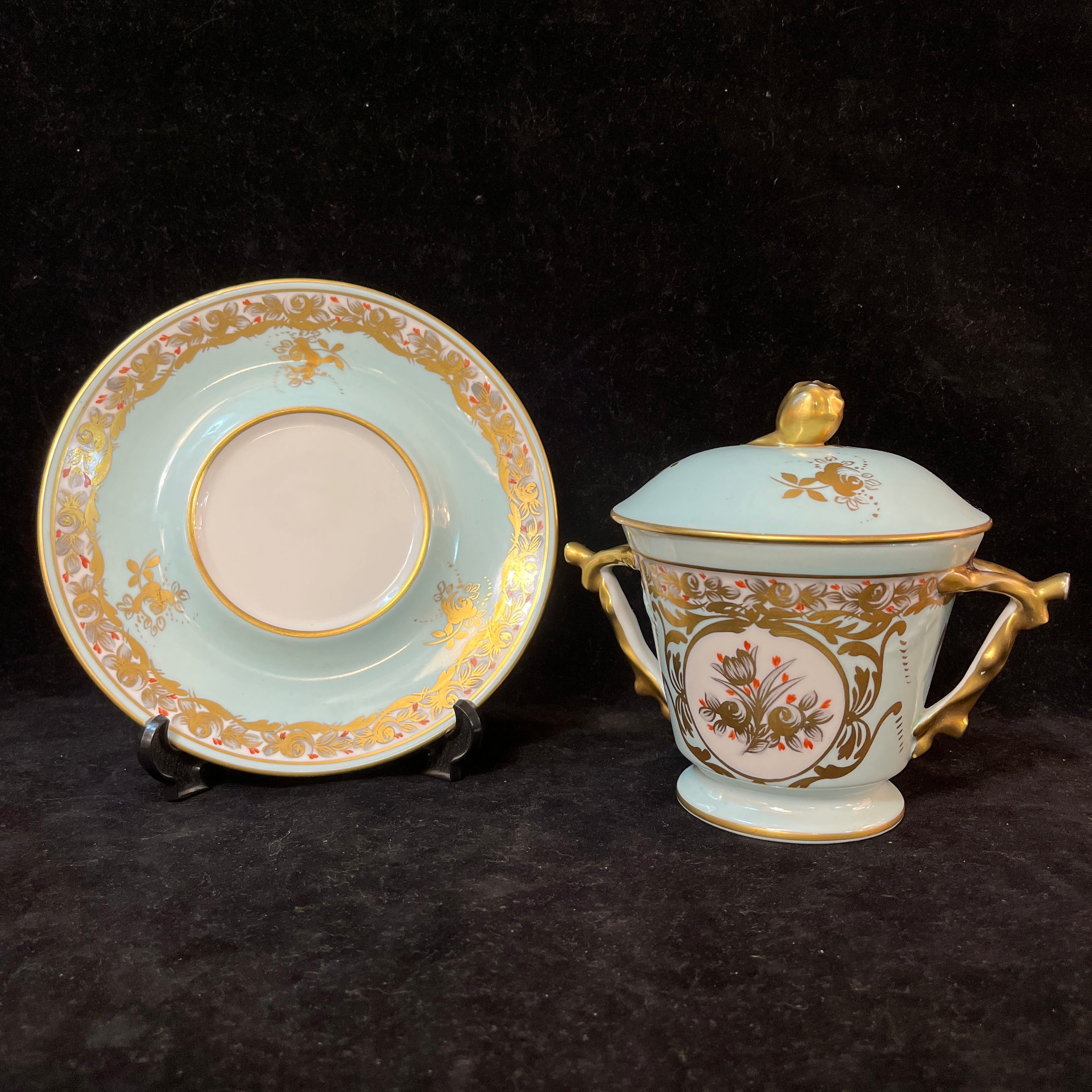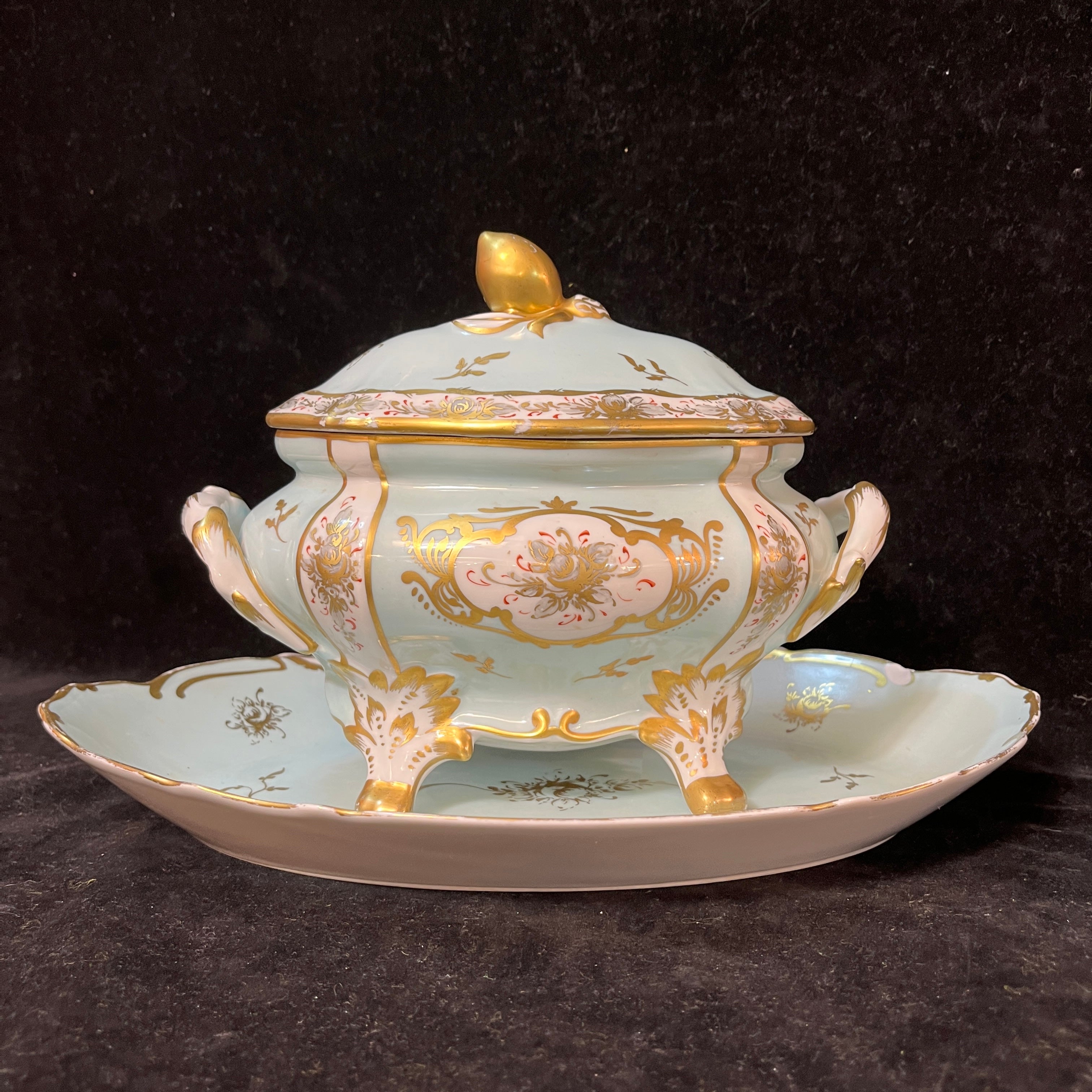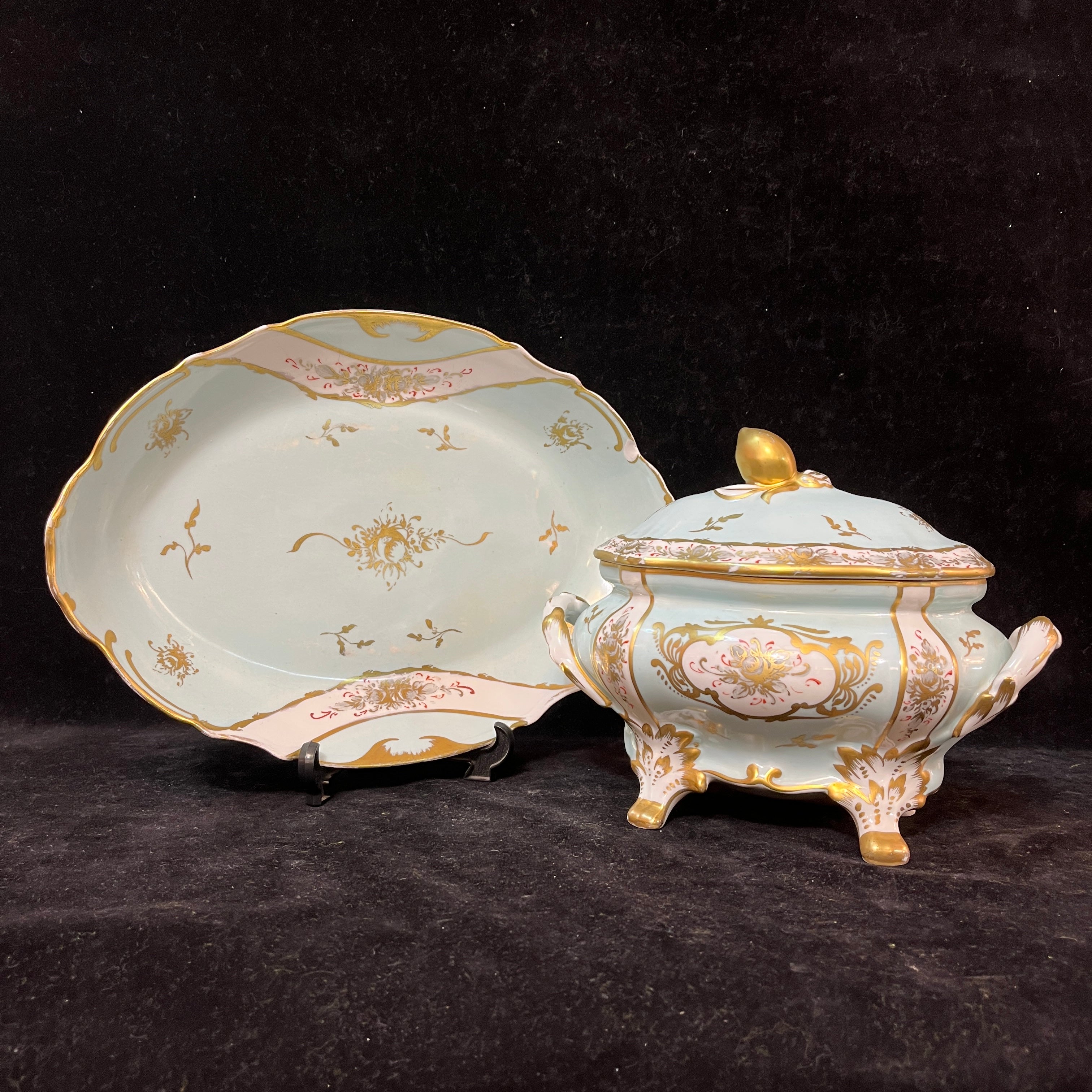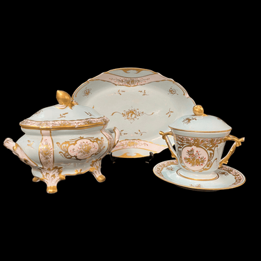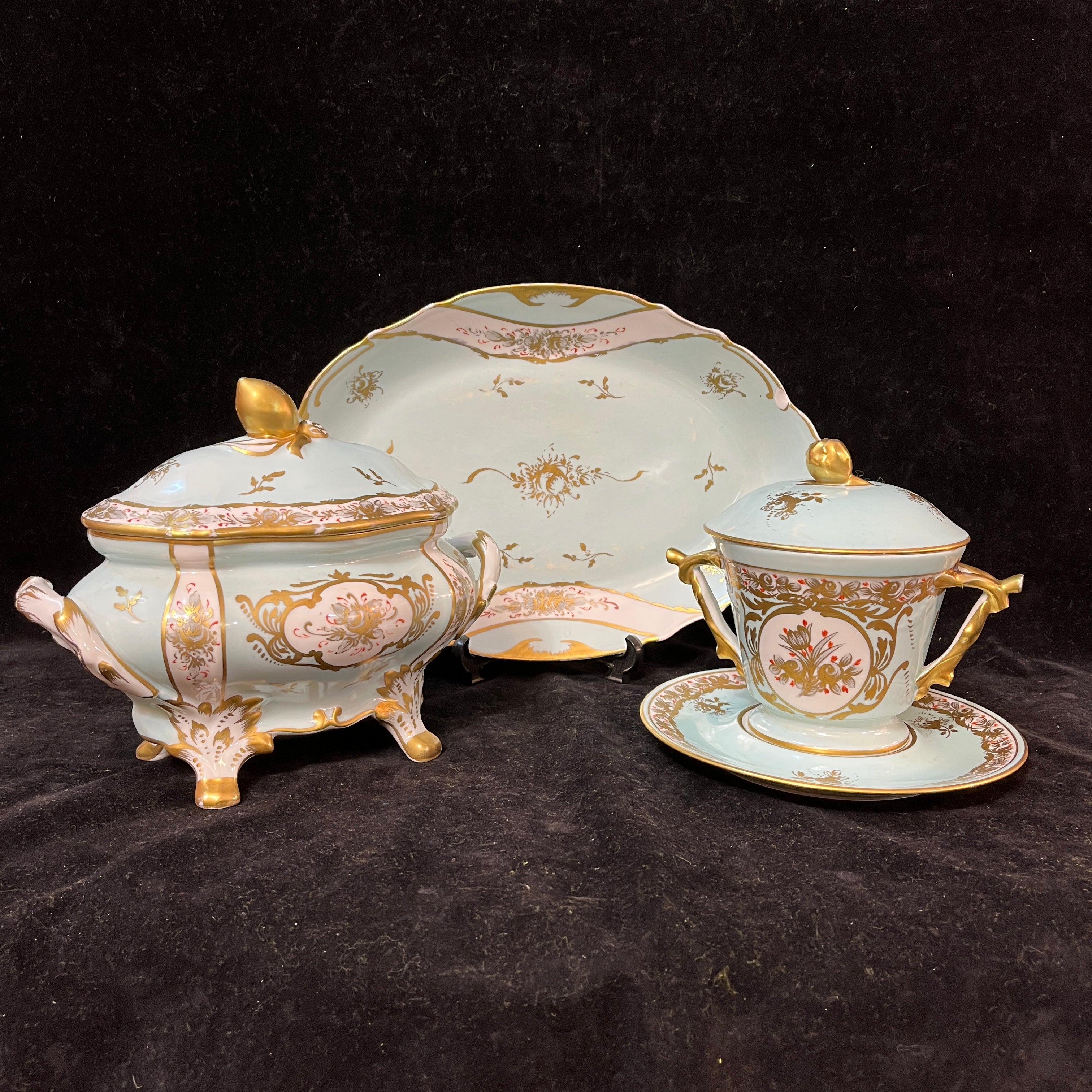 Magnifique service en porcelaine de Limoges émaillée bleu et or. Il contient les pièces suivantes :