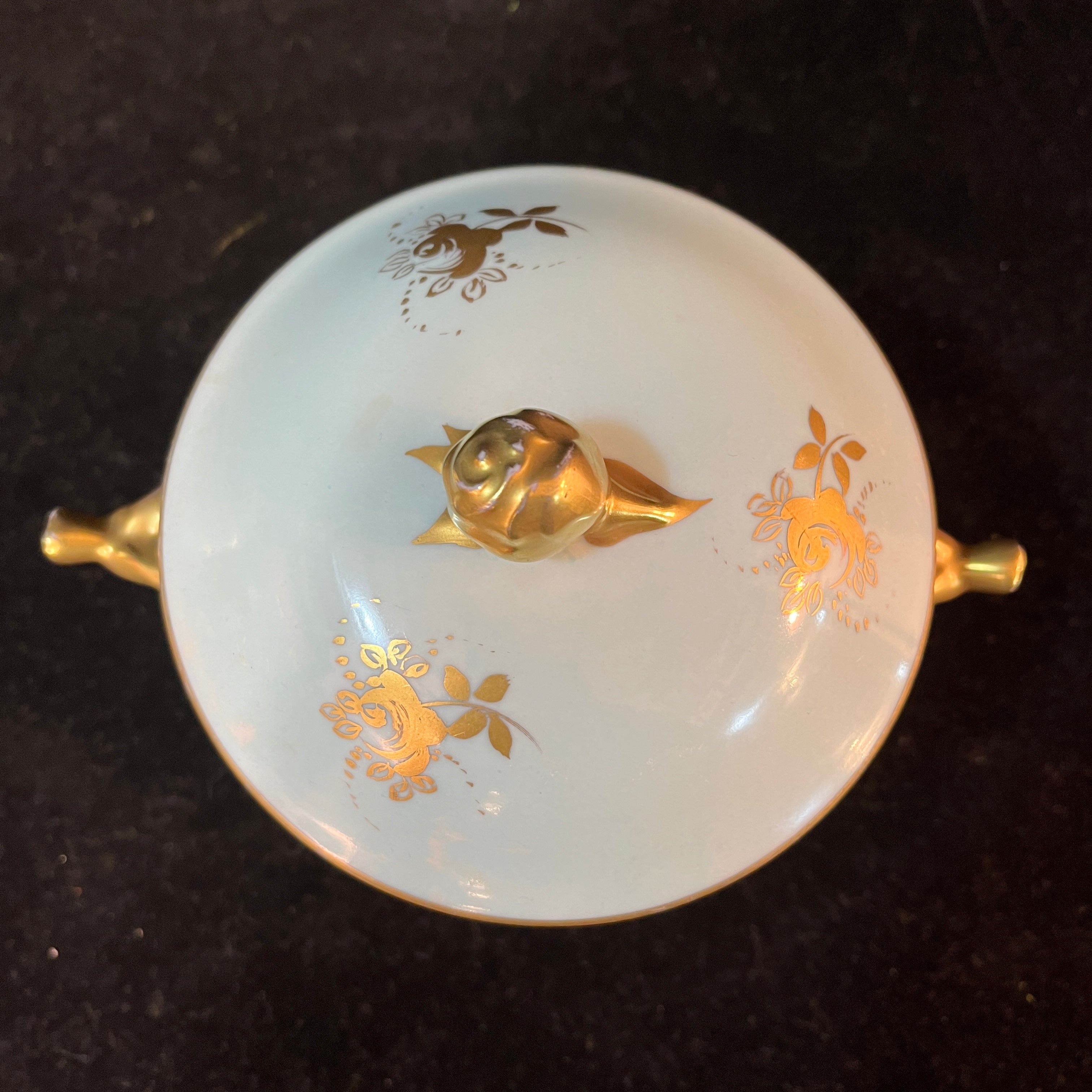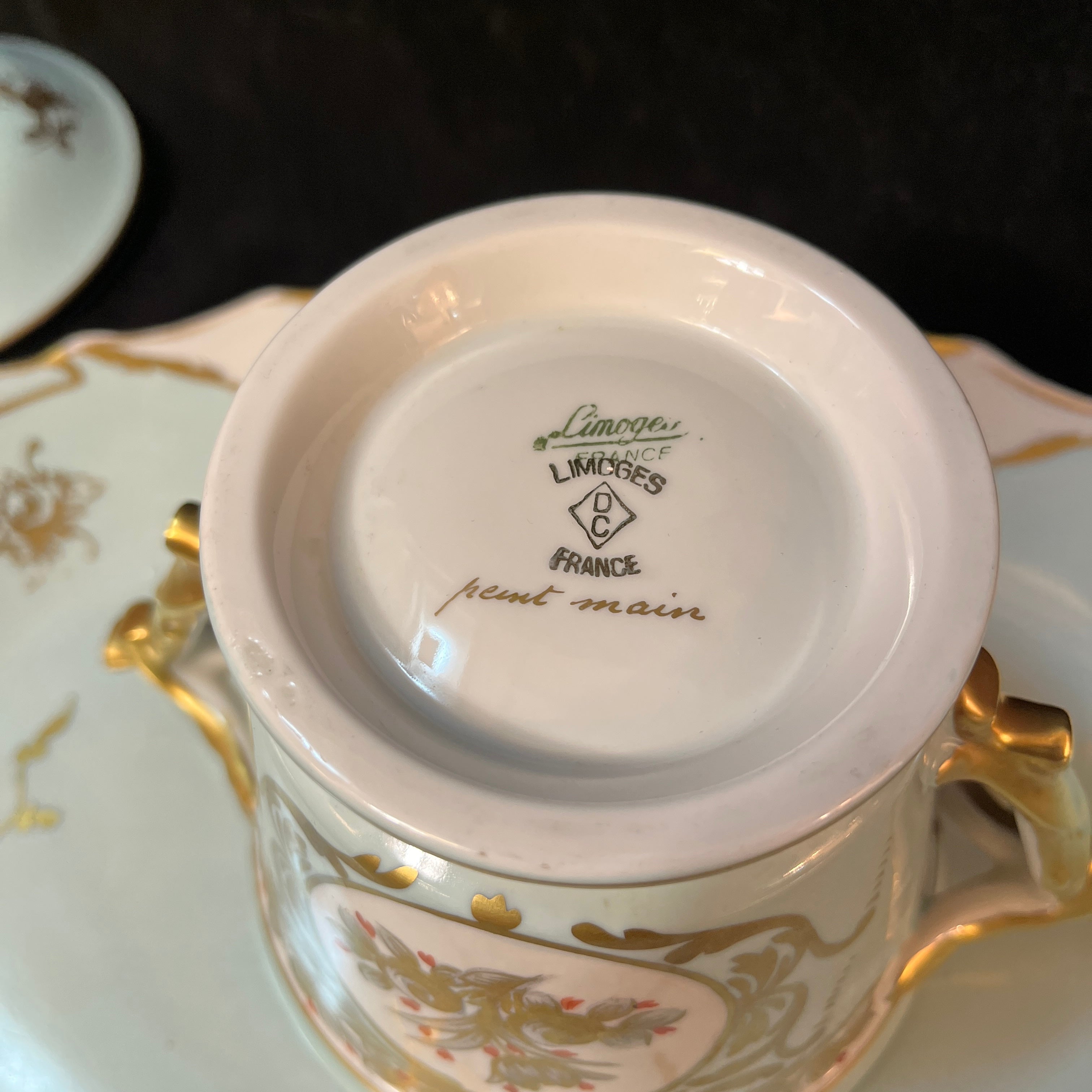 Service en porcelaine émaillée de Limoges : légumier et coupe trembleuse