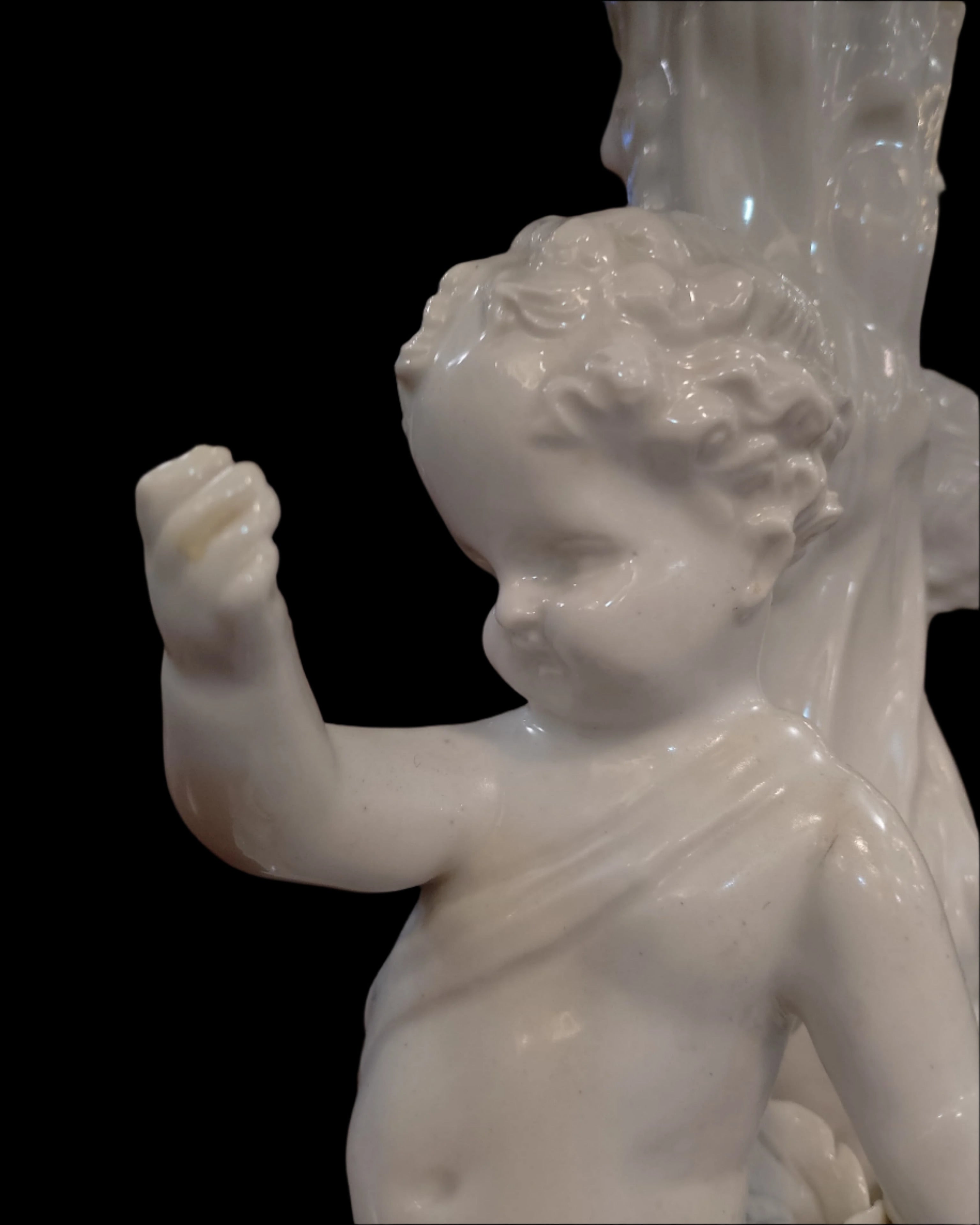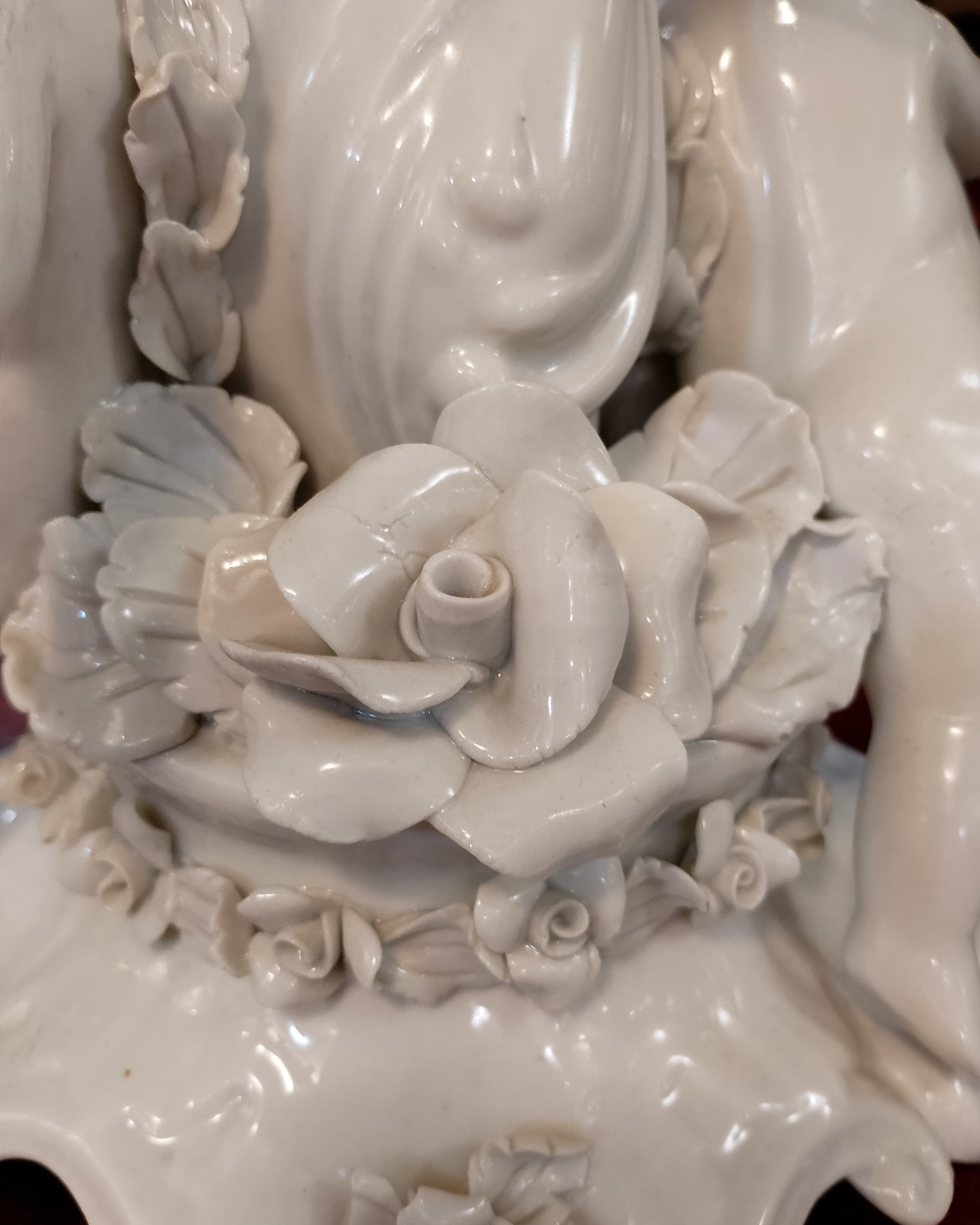 Lampe de table en porcelaine biscuit « chérubins dans le jardin »