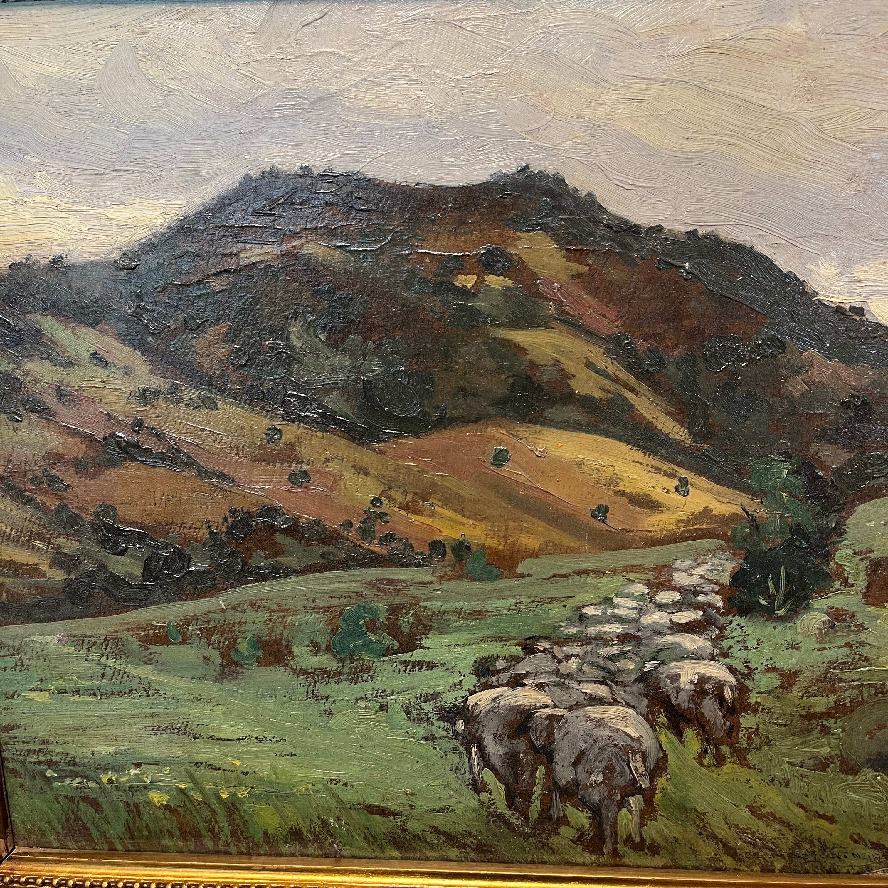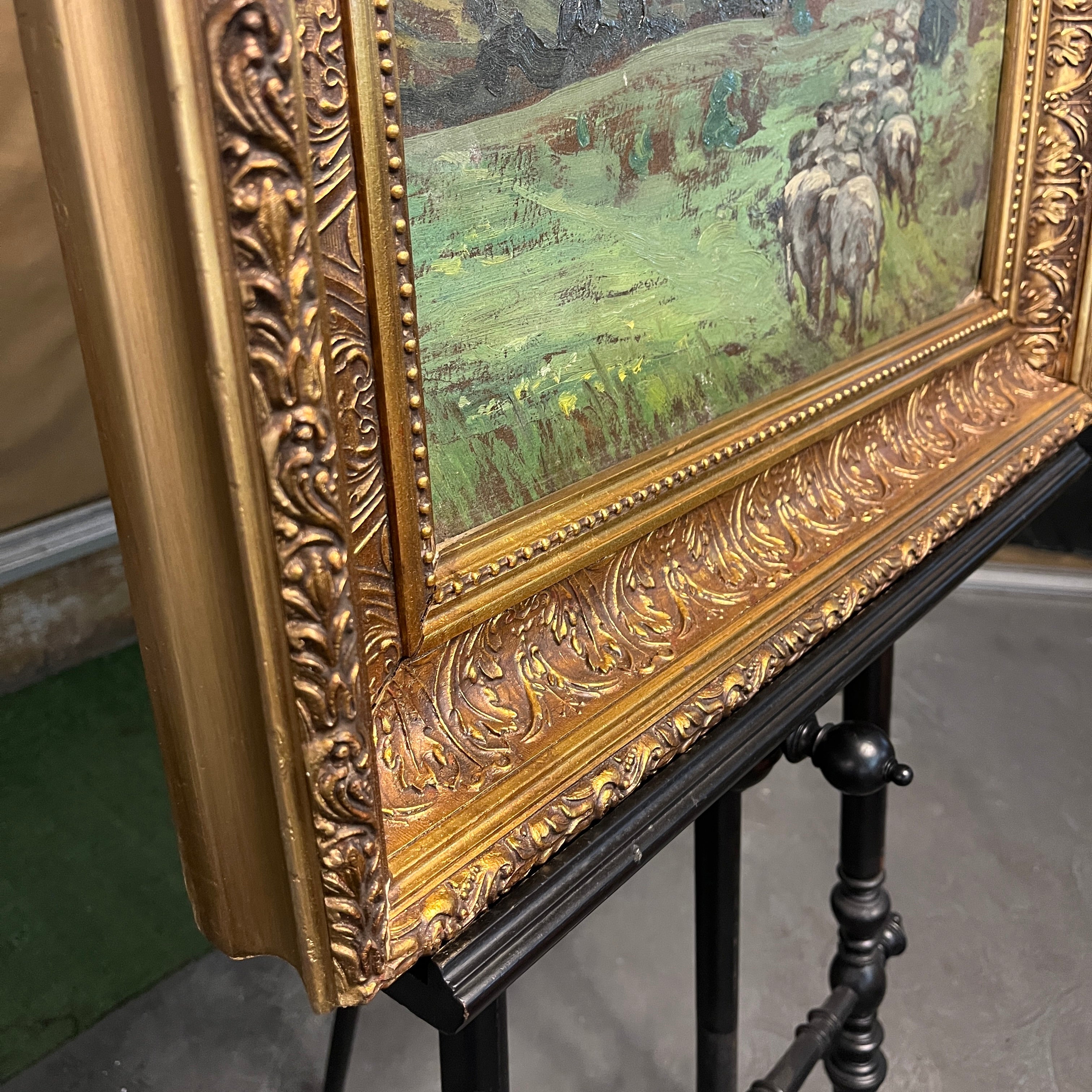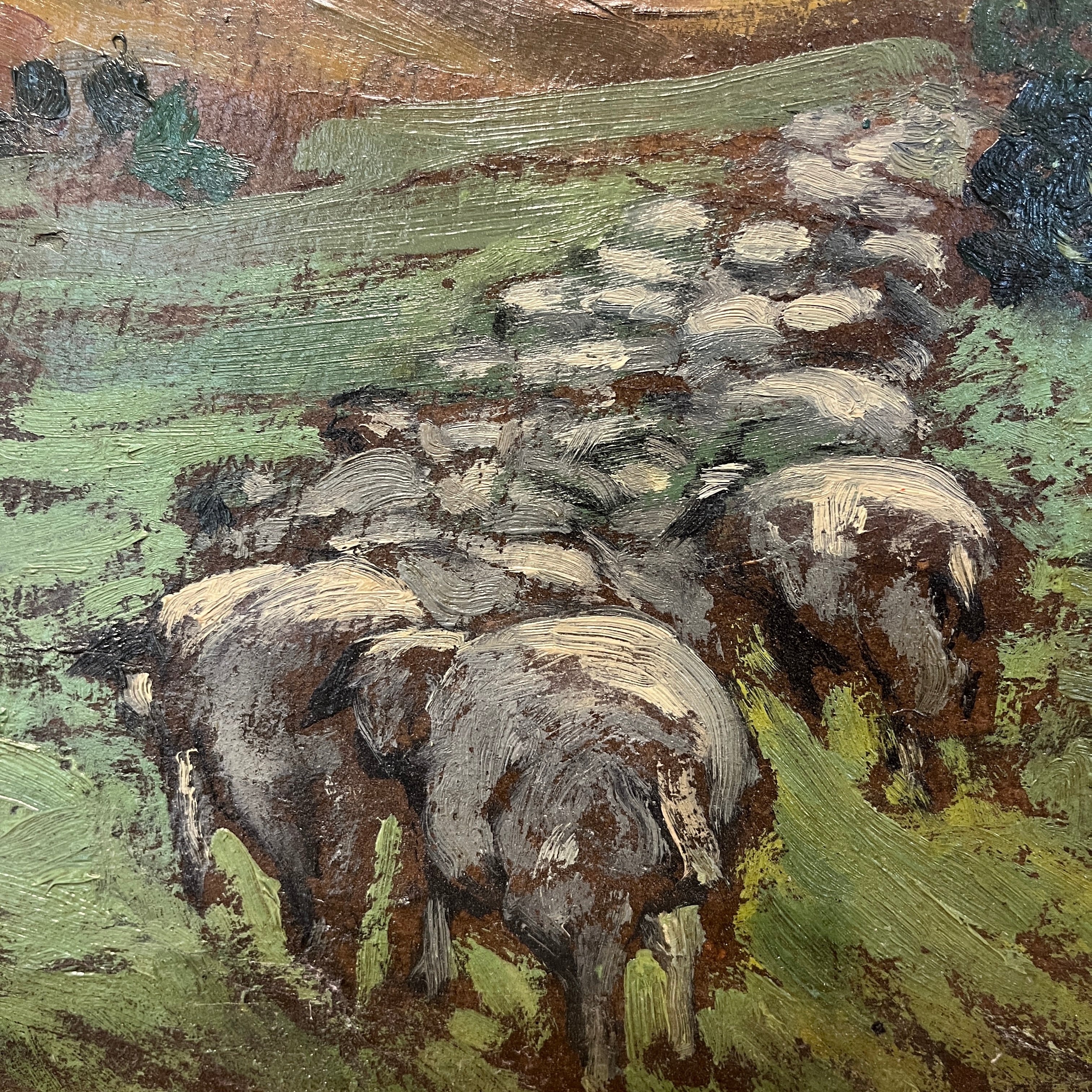 Anónimo - Óleo sobre madera paisaje ‘Rebaño’