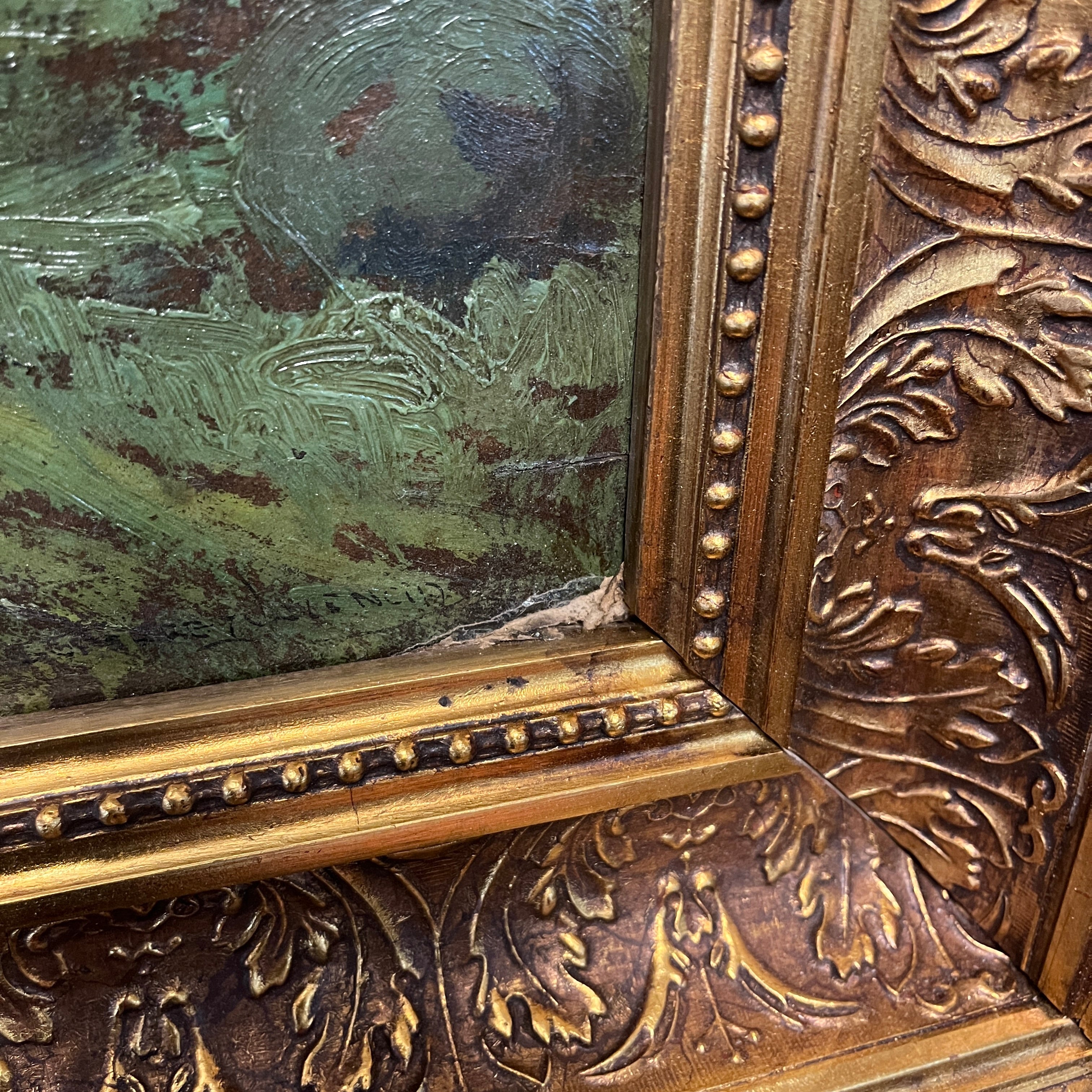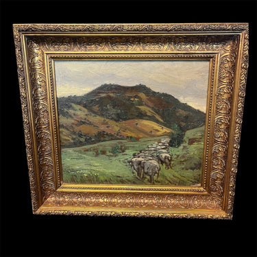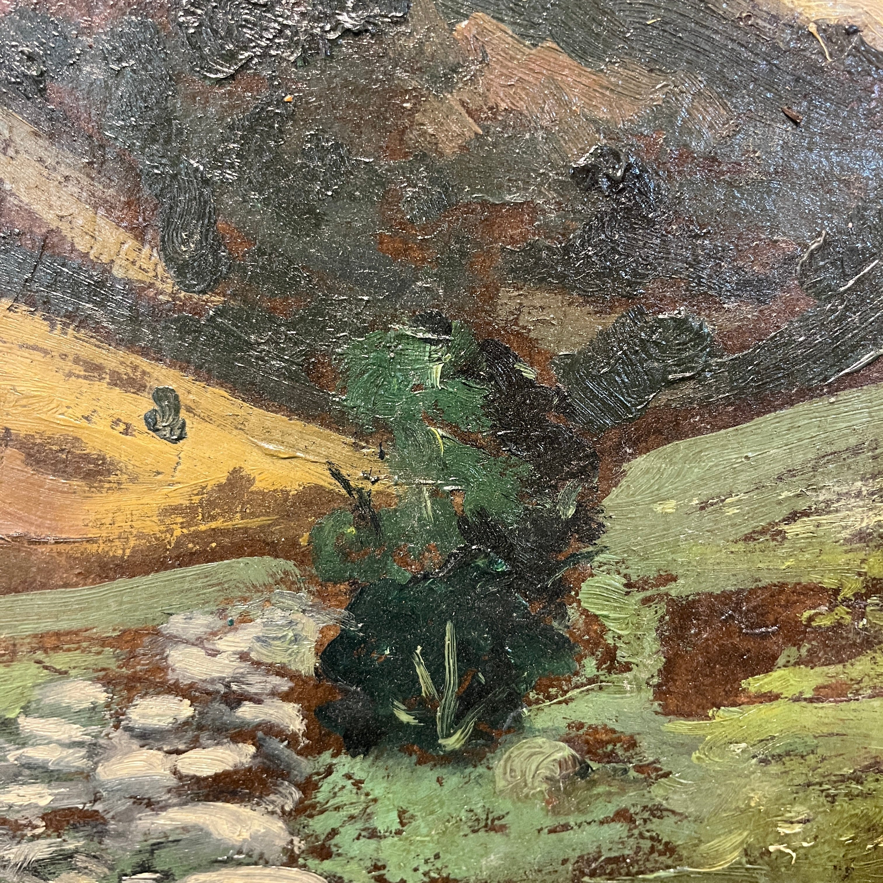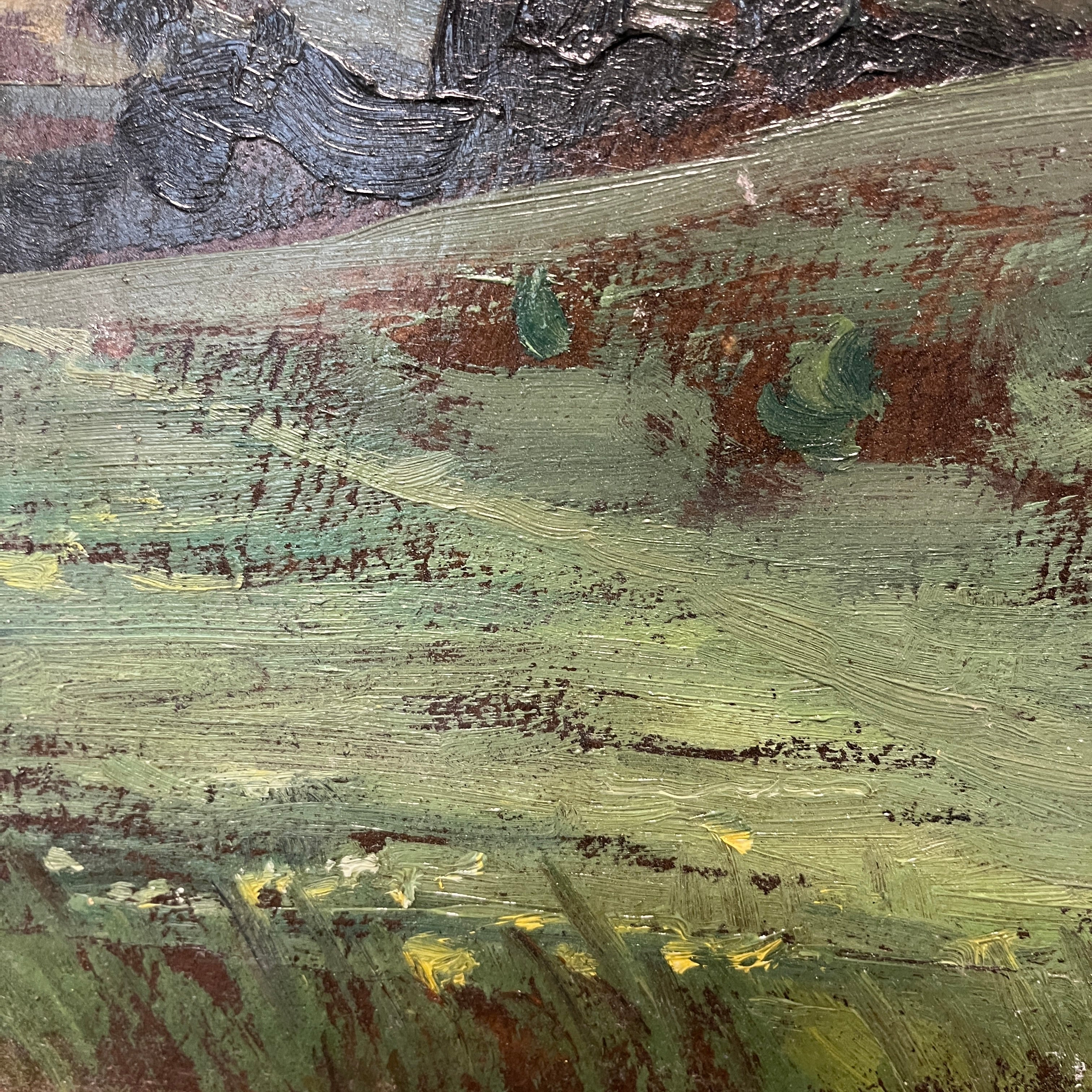 Anónimo - Óleo sobre madera paisaje ‘Rebaño’