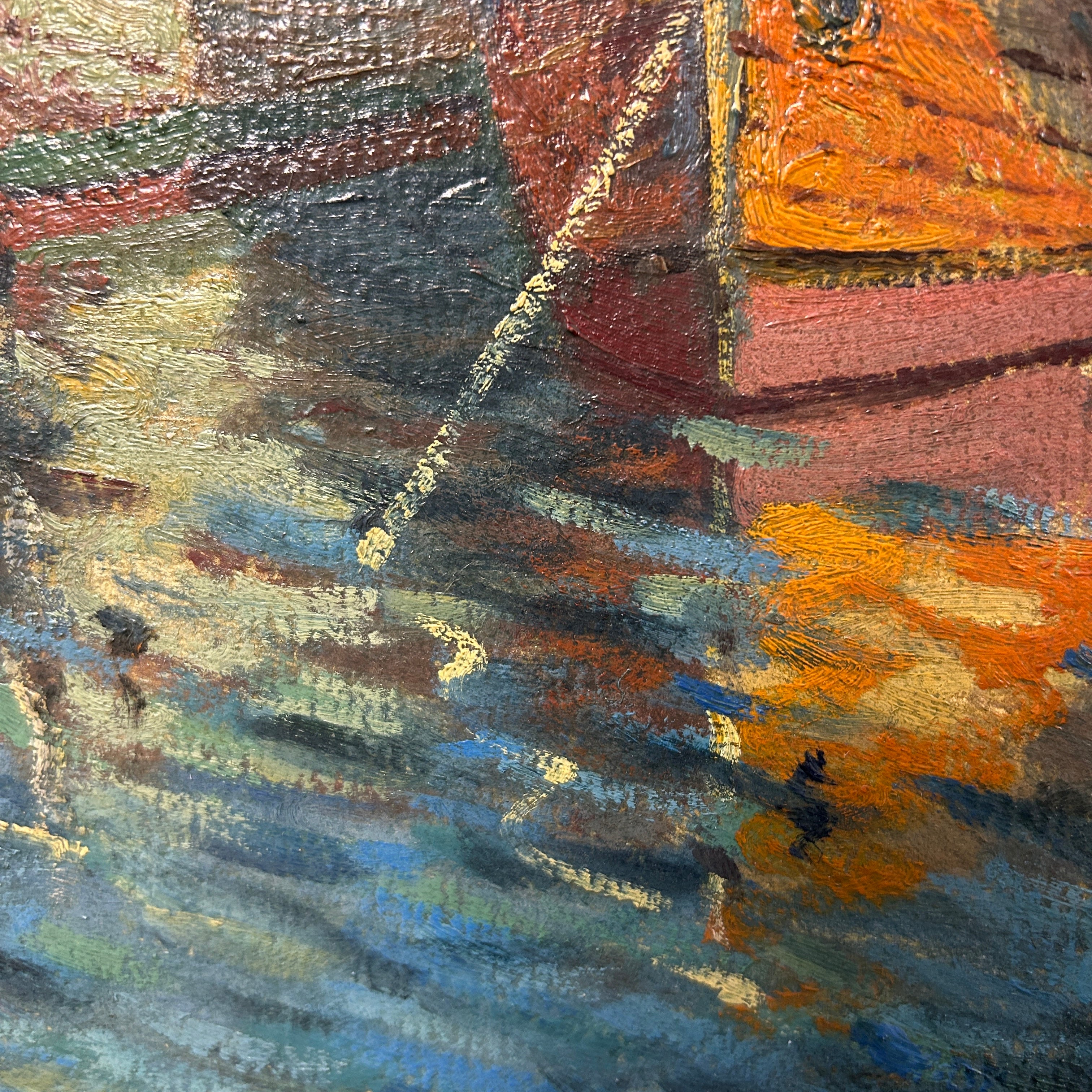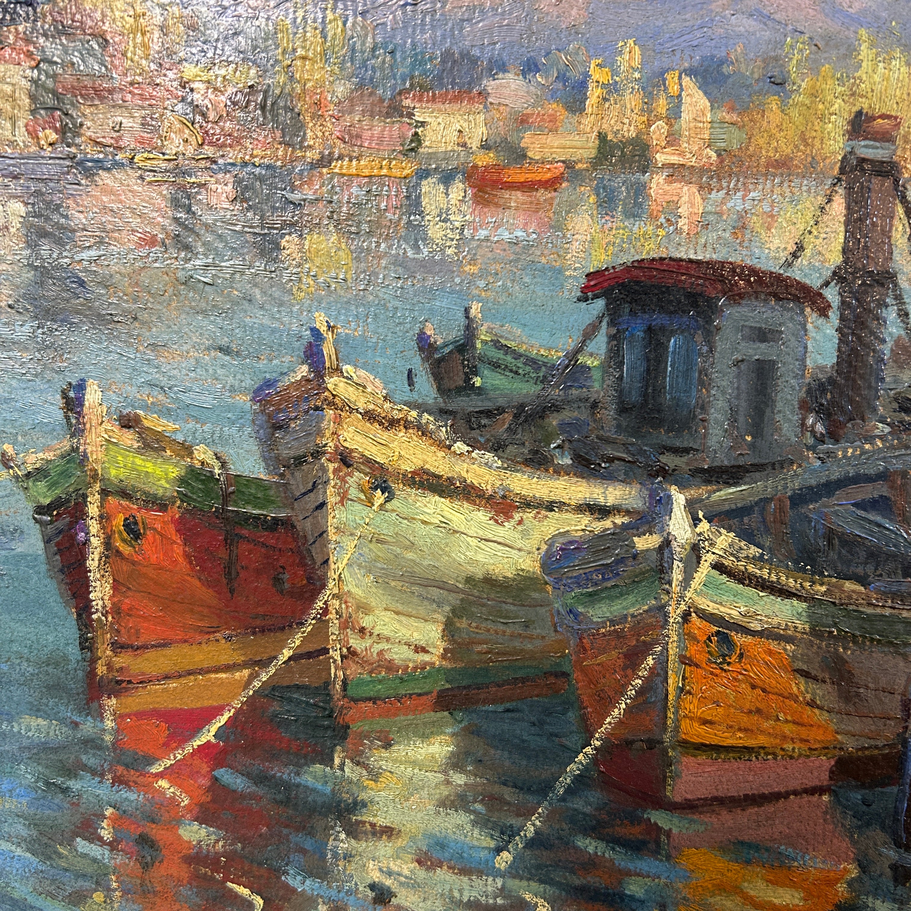 Arturo Pacheco Altamirano - Óleo sobre madera ‘Botes y reflejos’