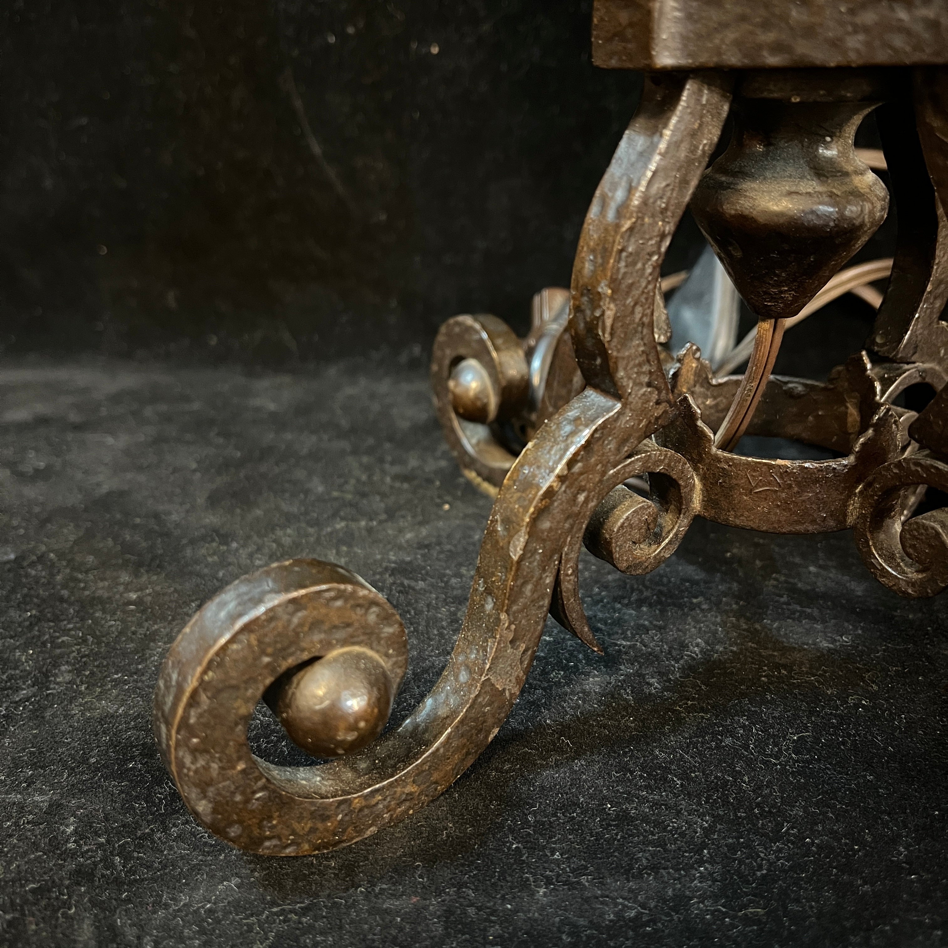 Par de lámparas Alemanas fierro forjado y pantalla estilo Ópalo