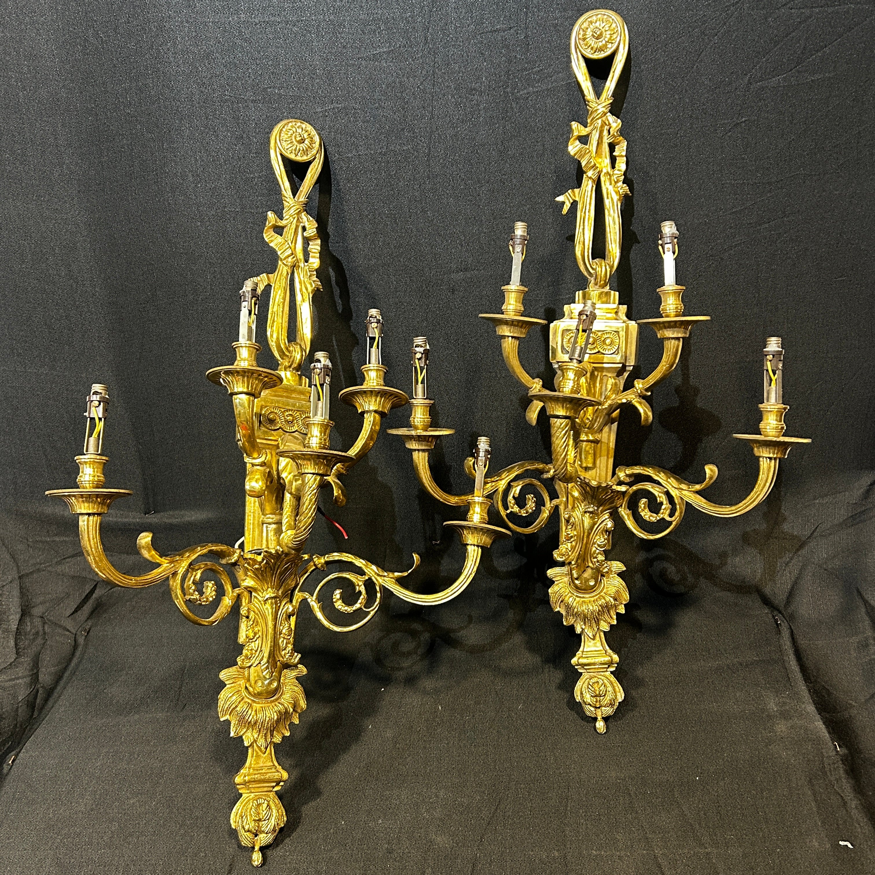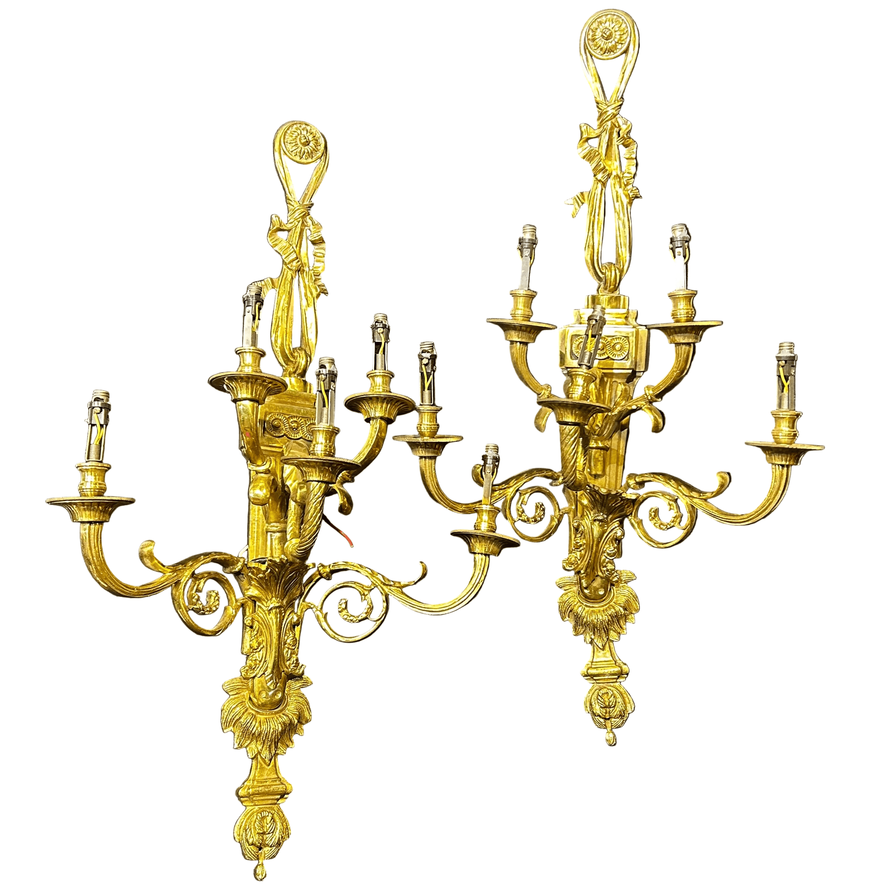 Pareja de apliqués Luis XVI bronce dorado 5 luces