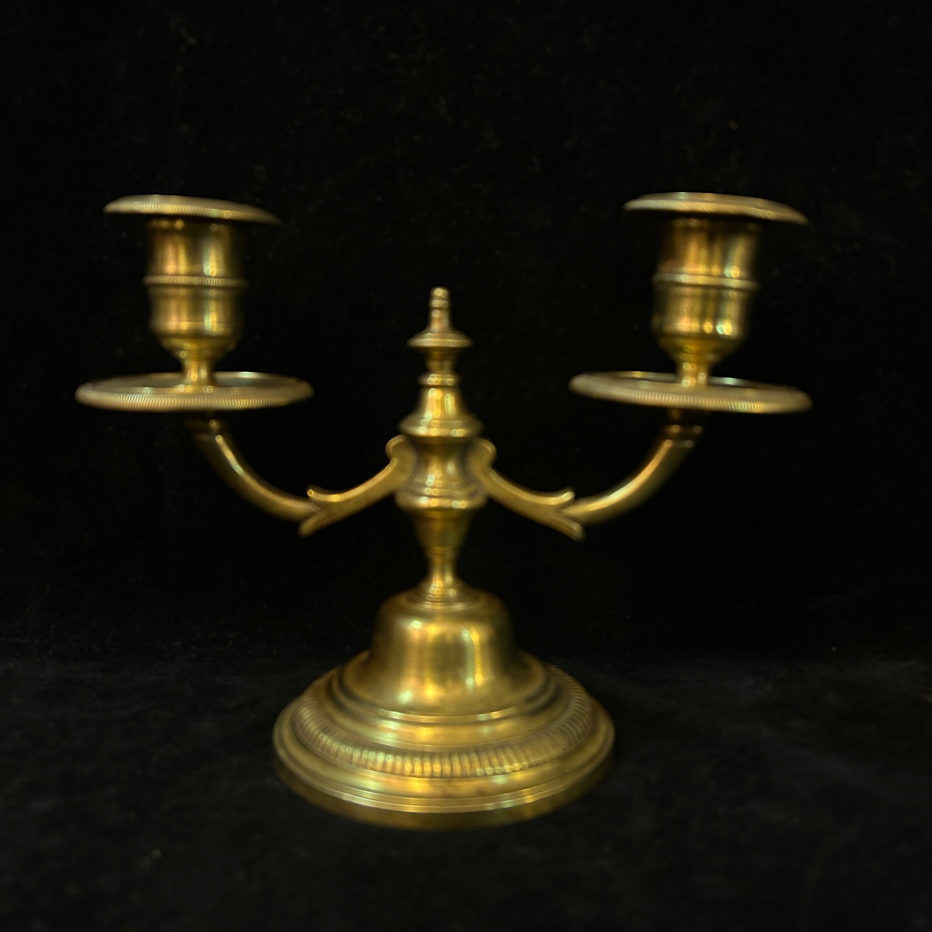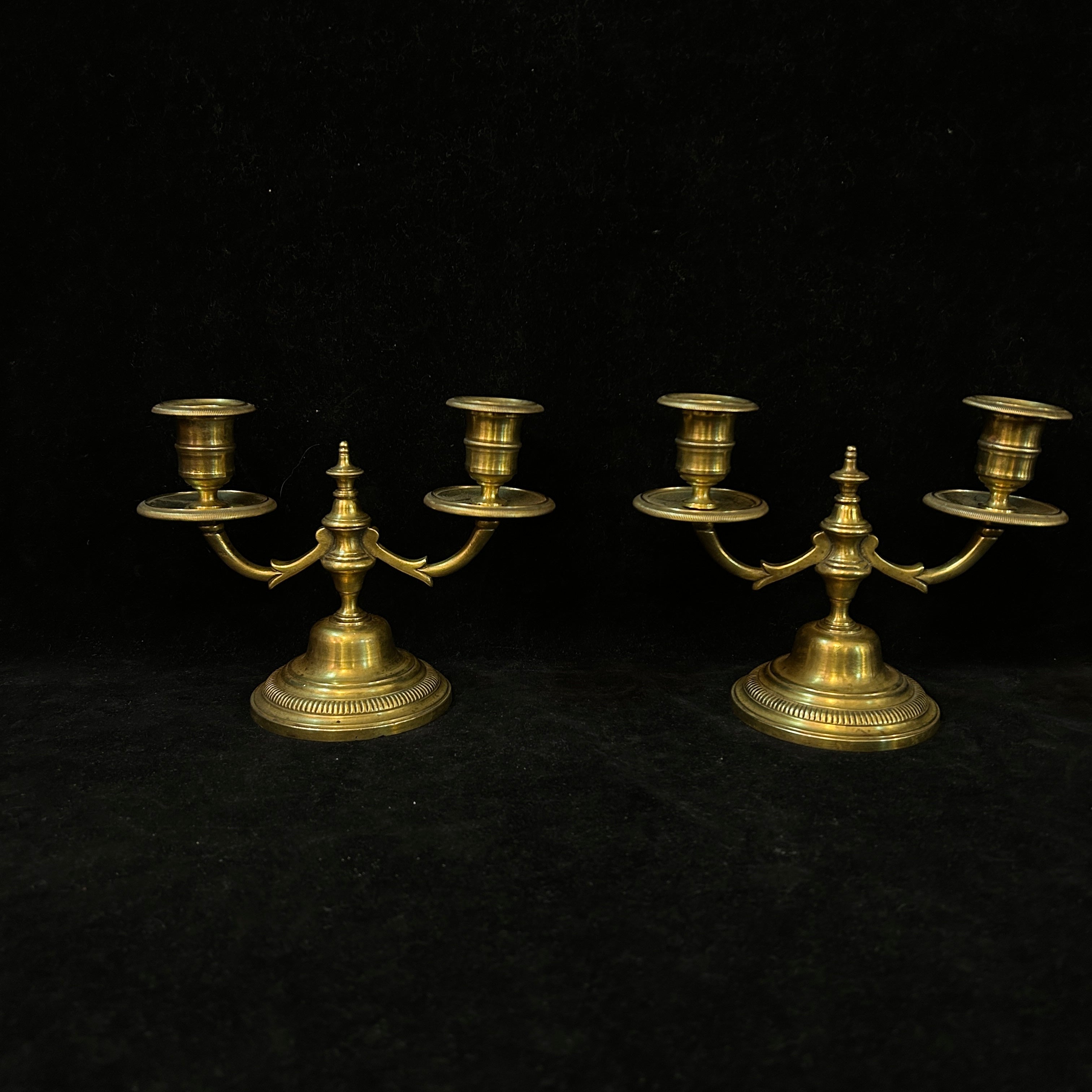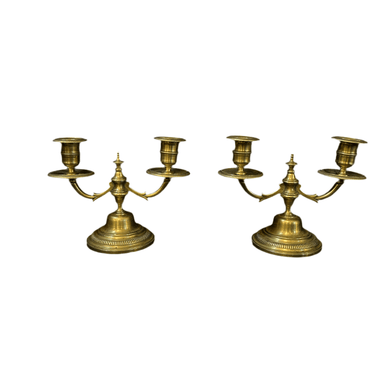 Par de elegantes candelabros gemelos franceses de bronce con base maciza.