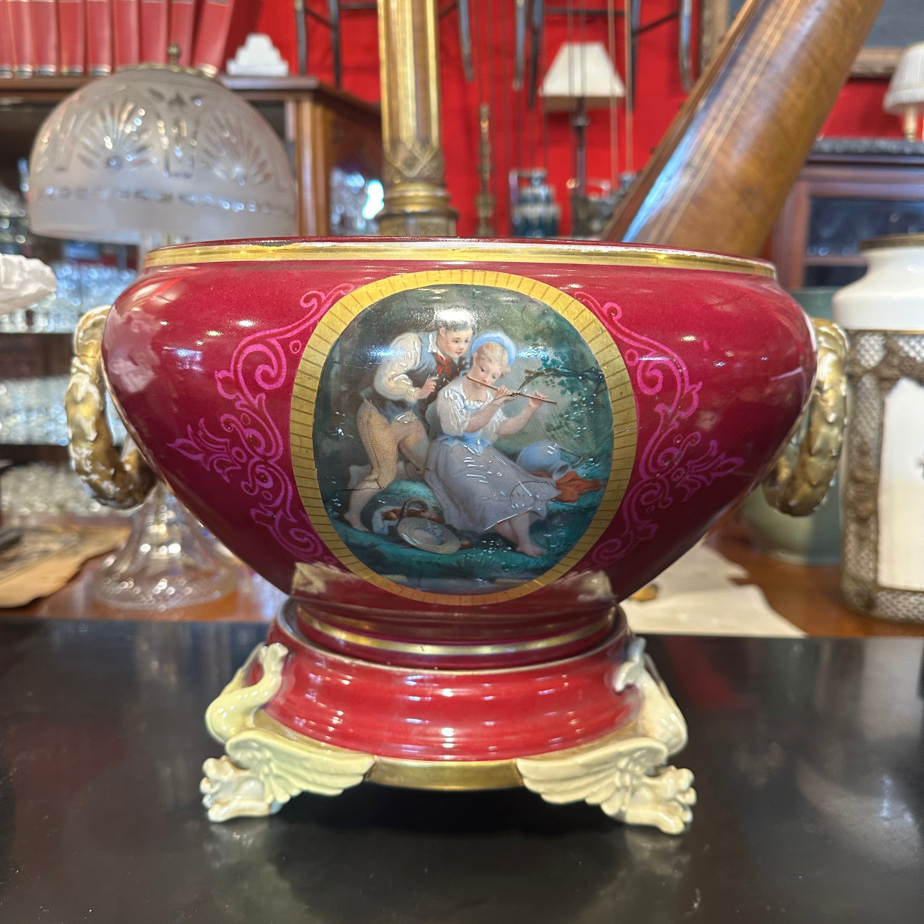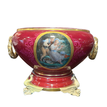 Grande coupe et son support en porcelaine du Vieux Paris, scène galante
