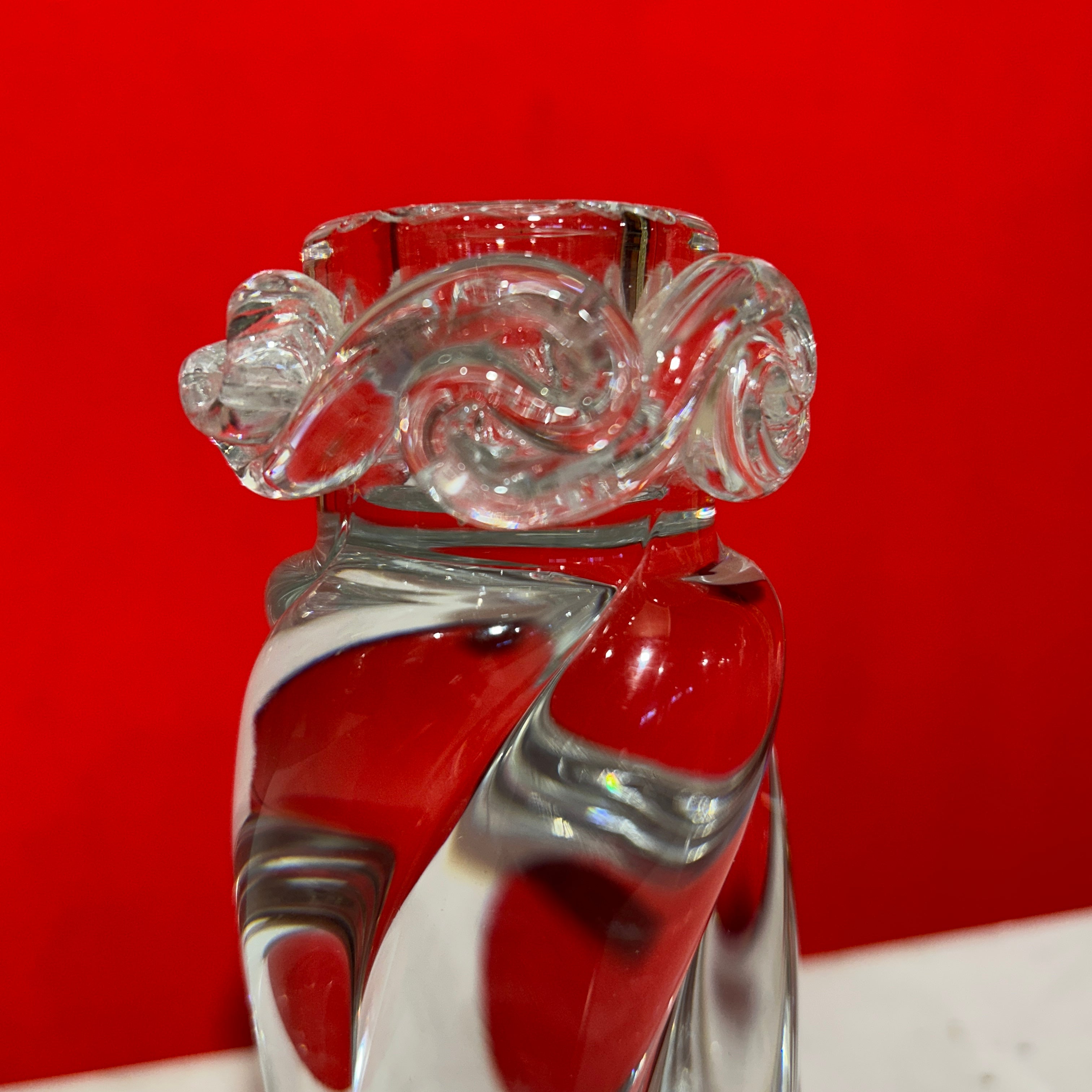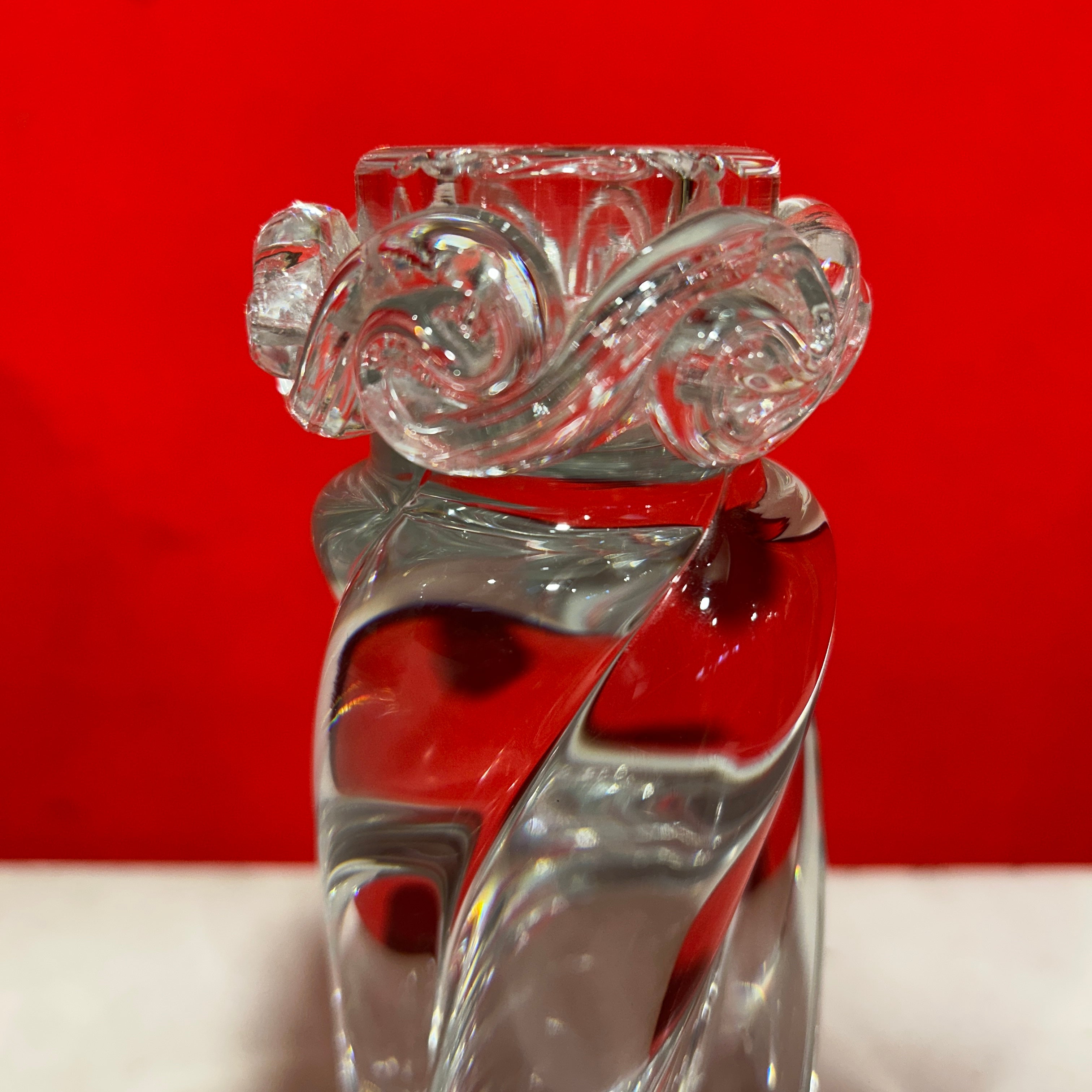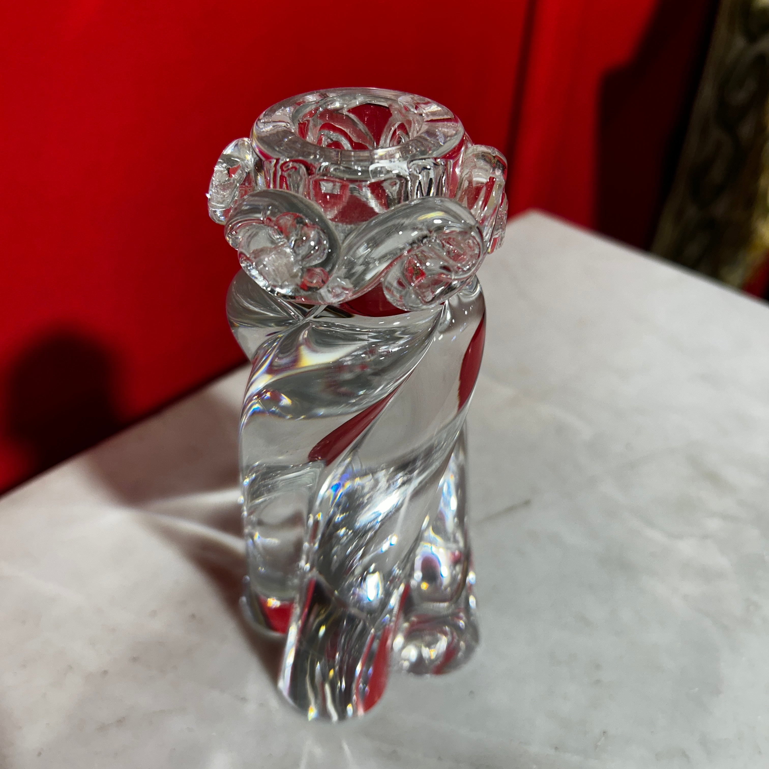 Bellísimo portavela de cristal Baccarat para una vela, estilo "aladin". Presenta una silueta sinuosa y retorcida, destacando sus hermosos movimientos, conocida como el modelo "Twist".