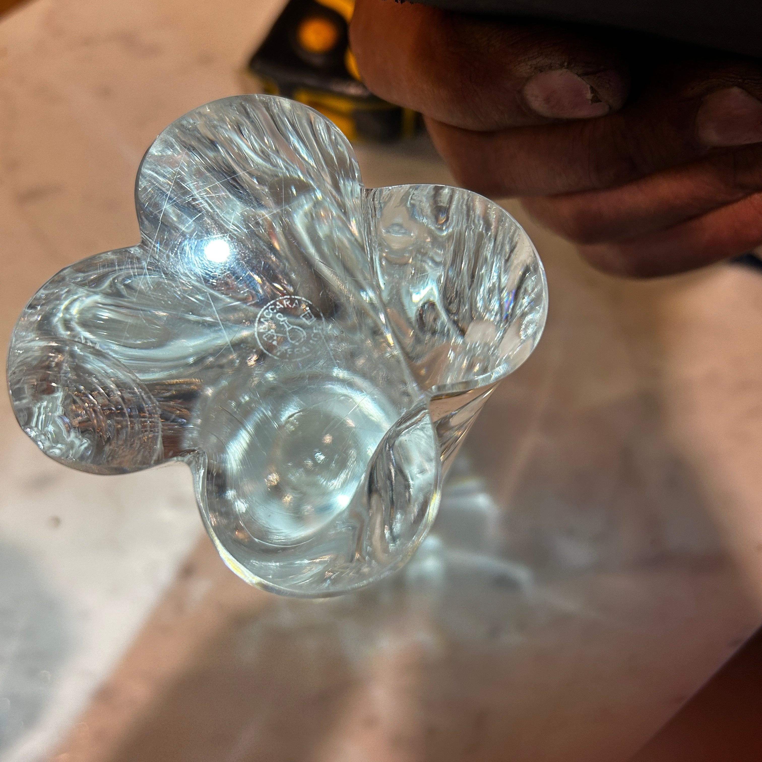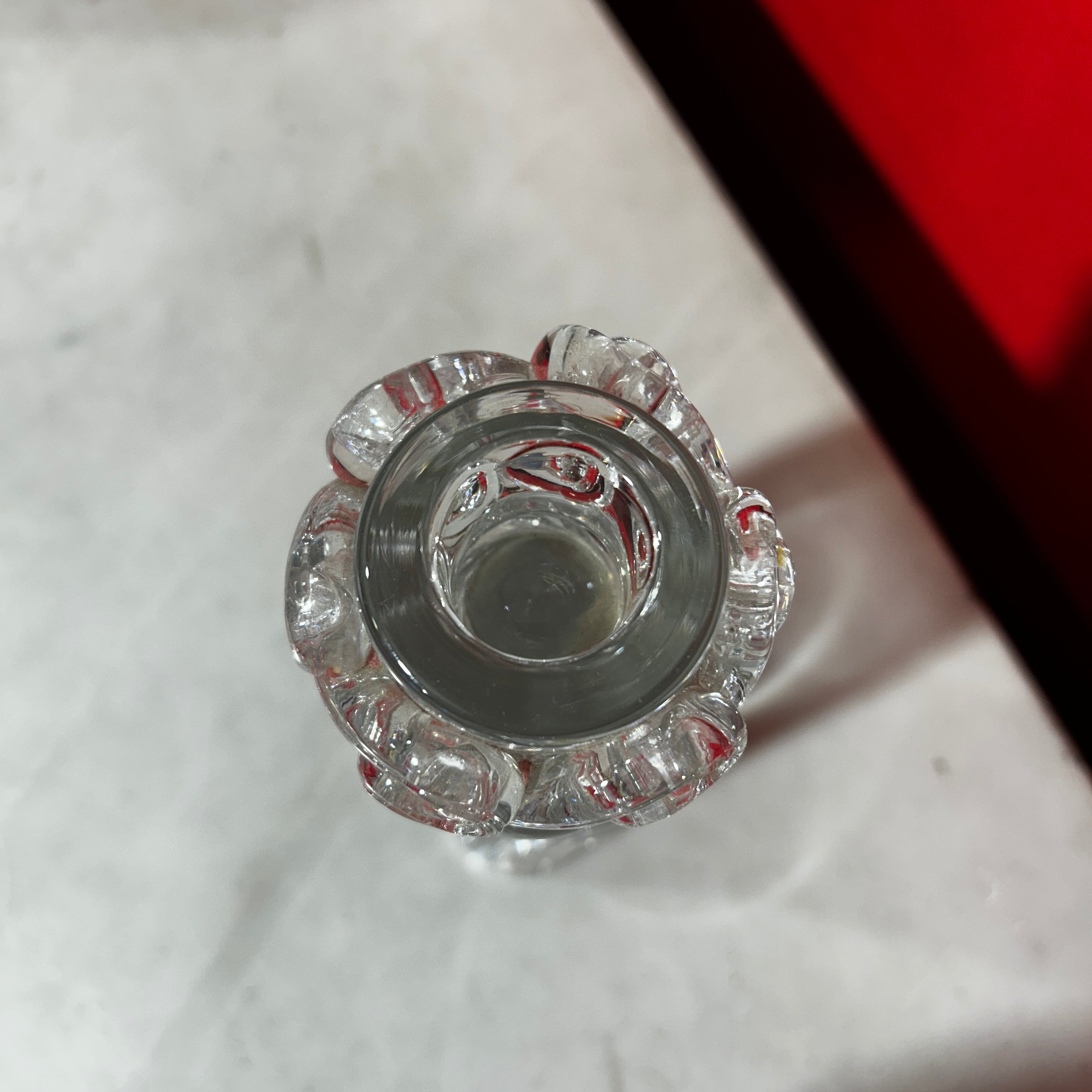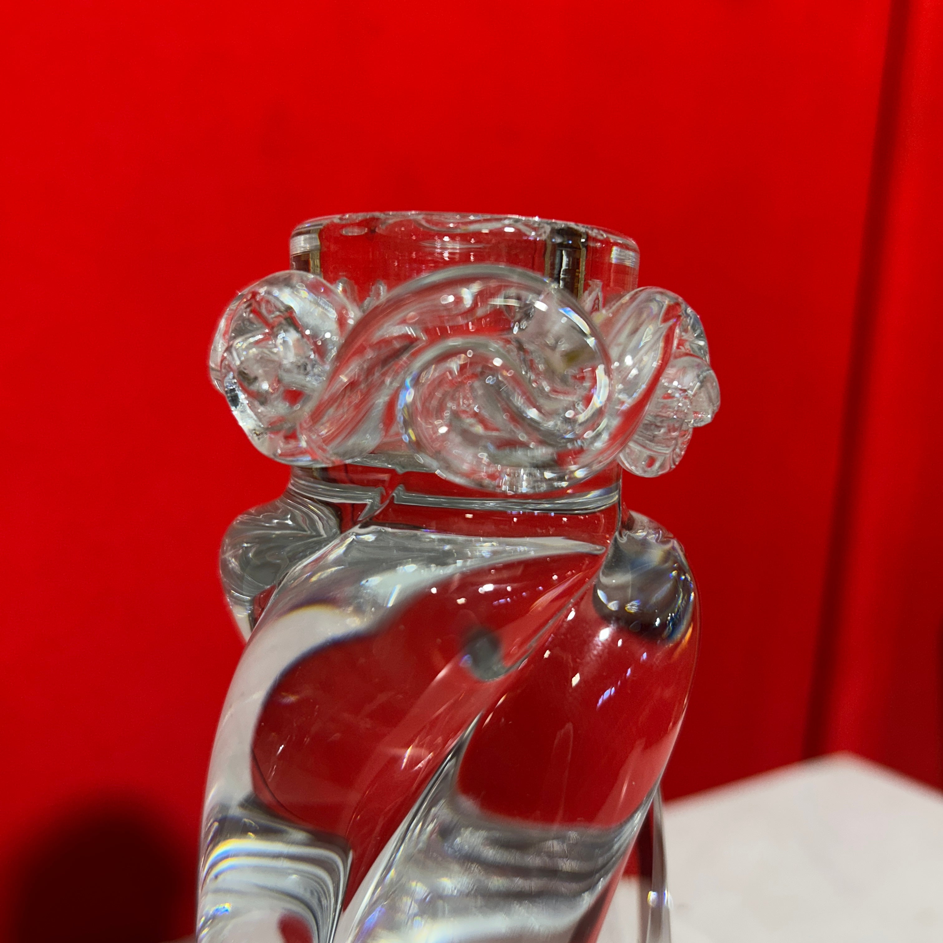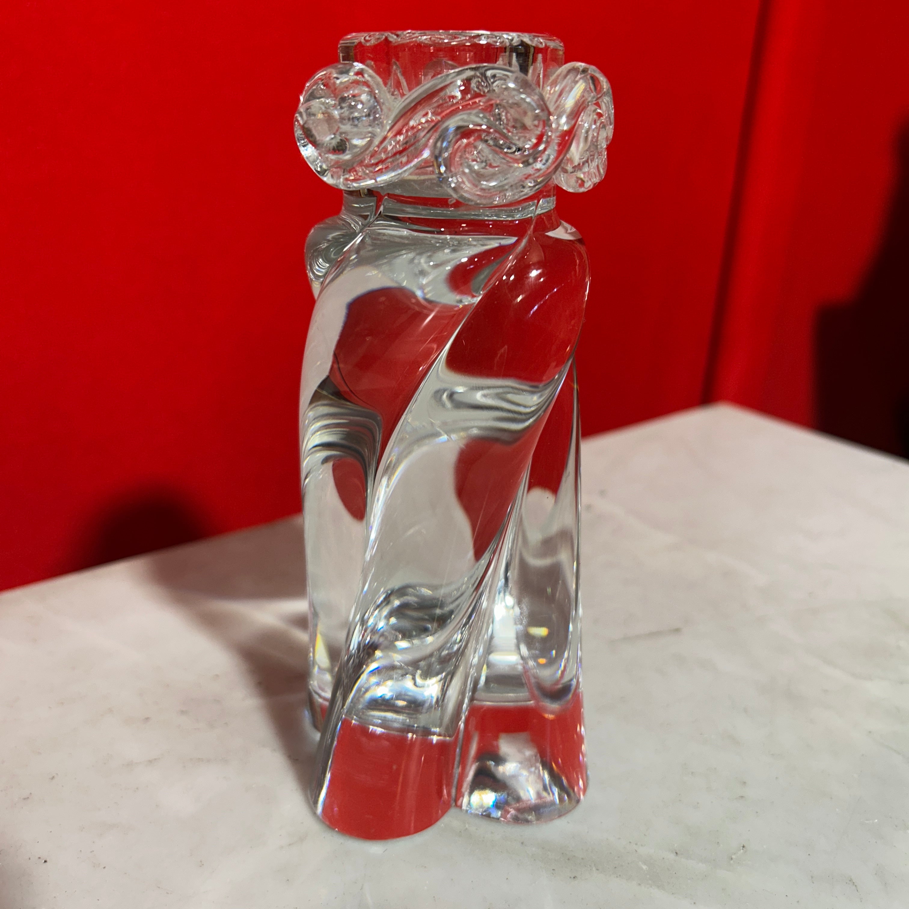 Bellísimo portavela de cristal Baccarat para una vela, estilo "aladin". Presenta una silueta sinuosa y retorcida, destacando sus hermosos movimientos, conocida como el modelo "Twist".