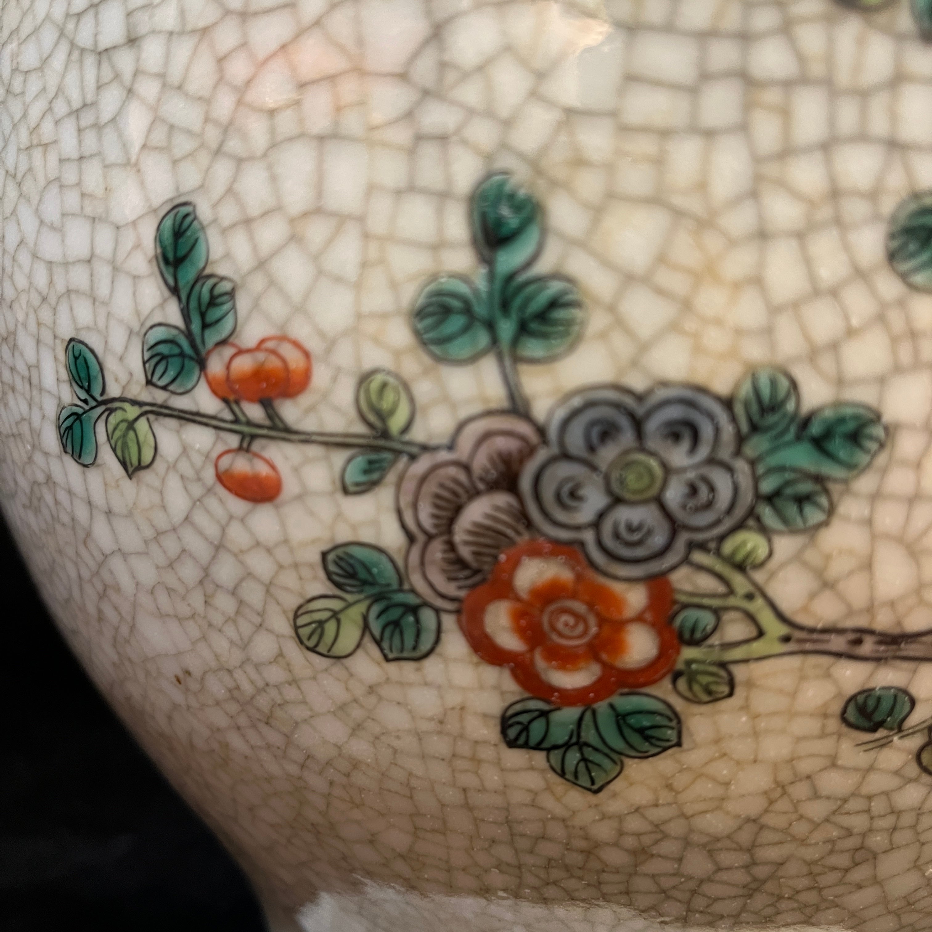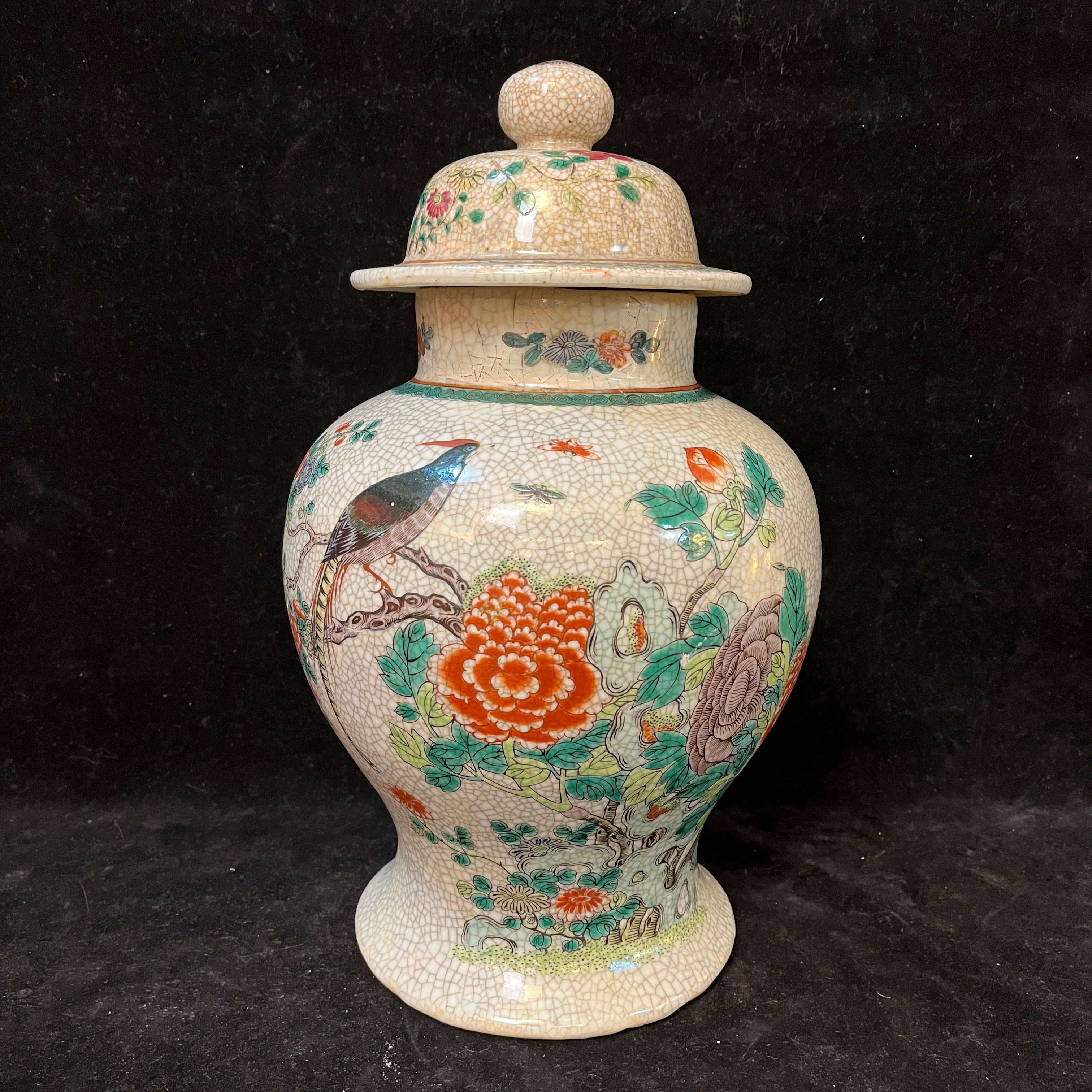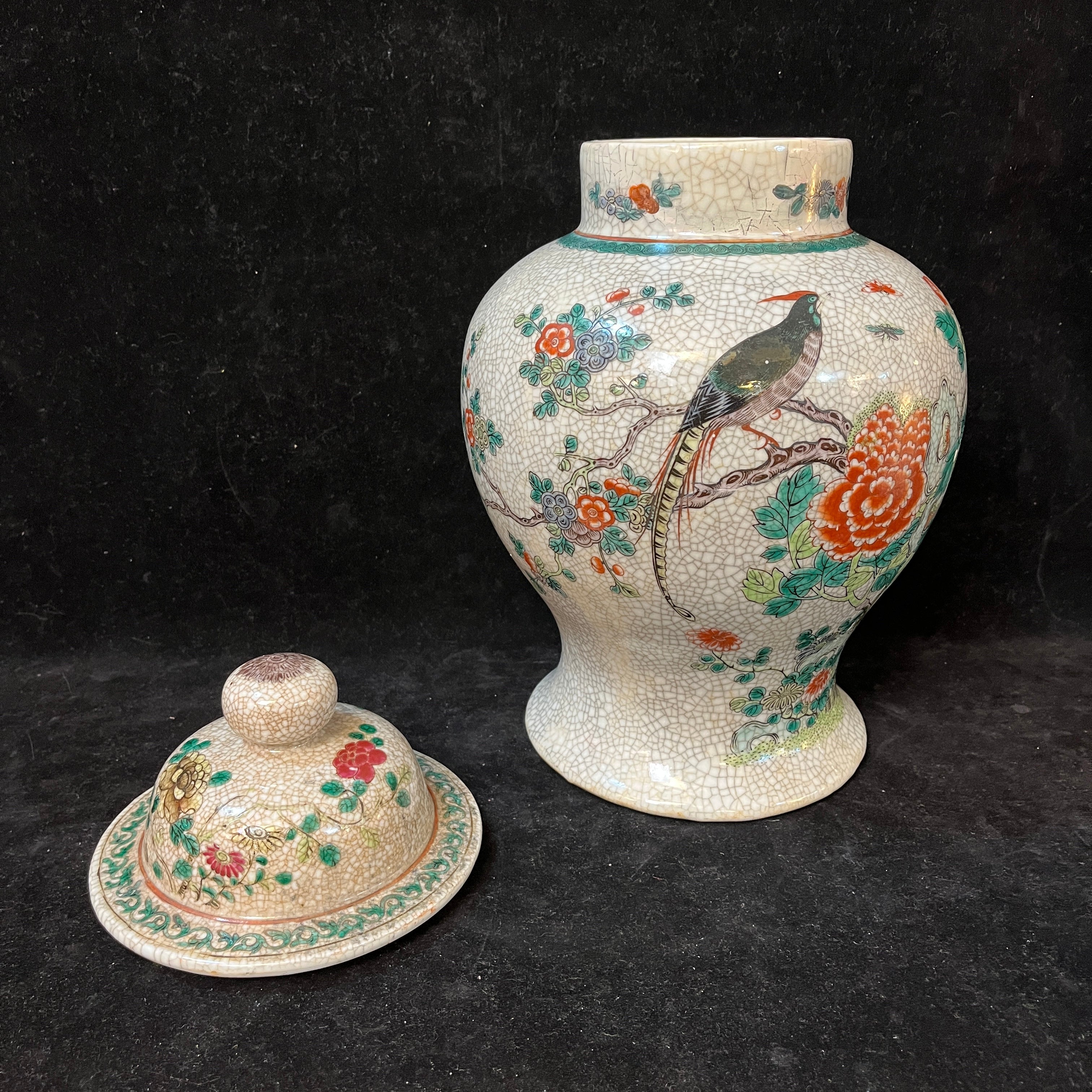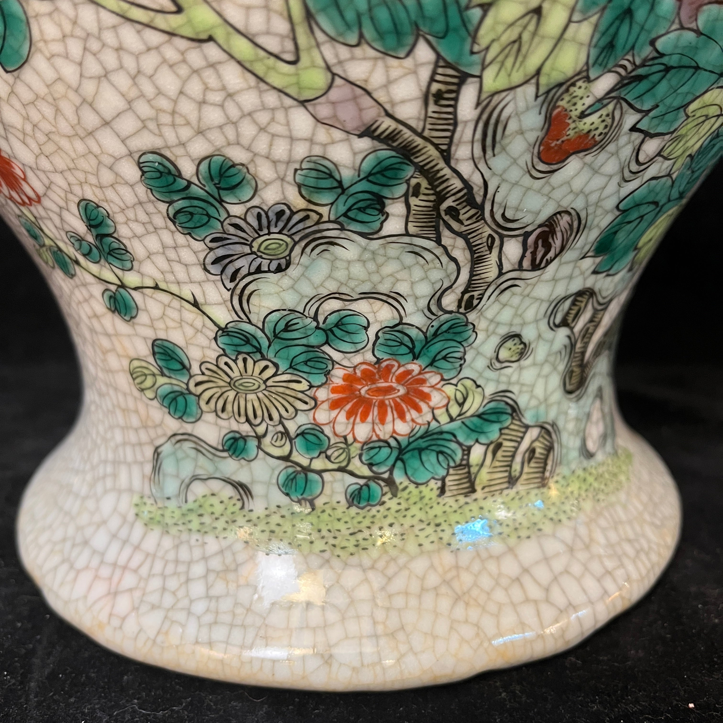 Potiche en porcelaine chinoise famille verte craquelée 'Faisan sur cerisier'