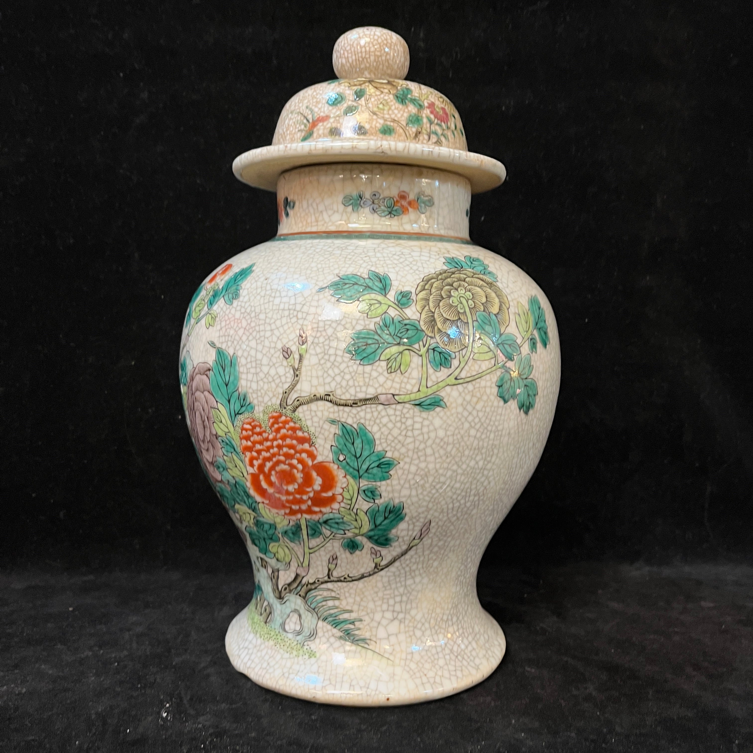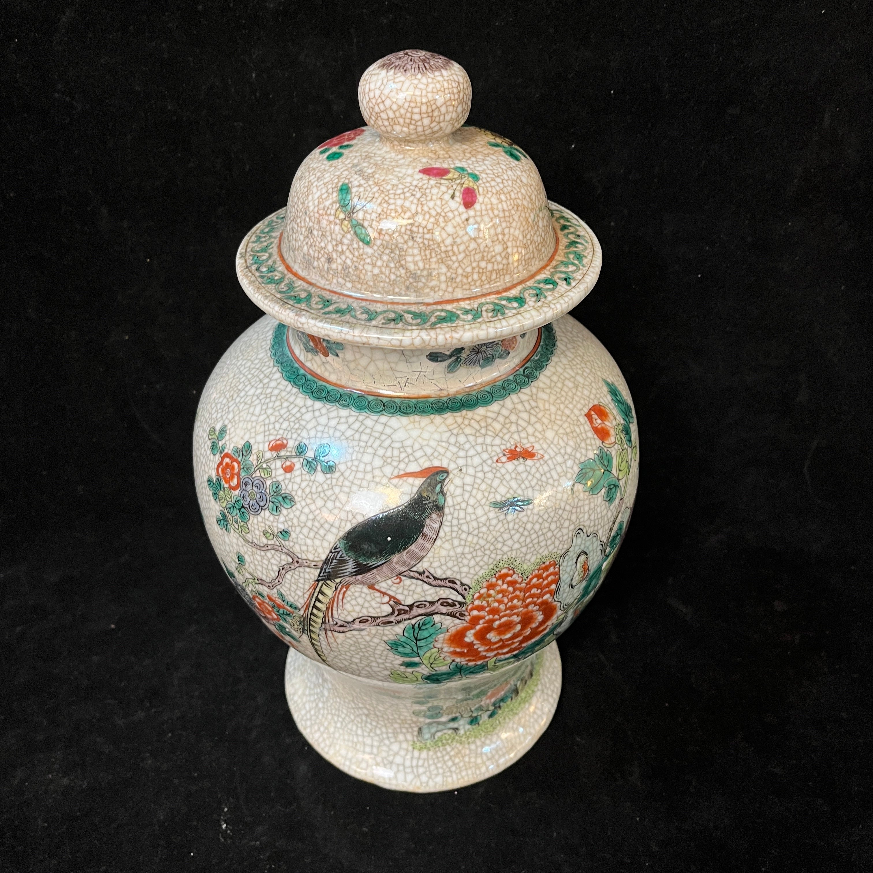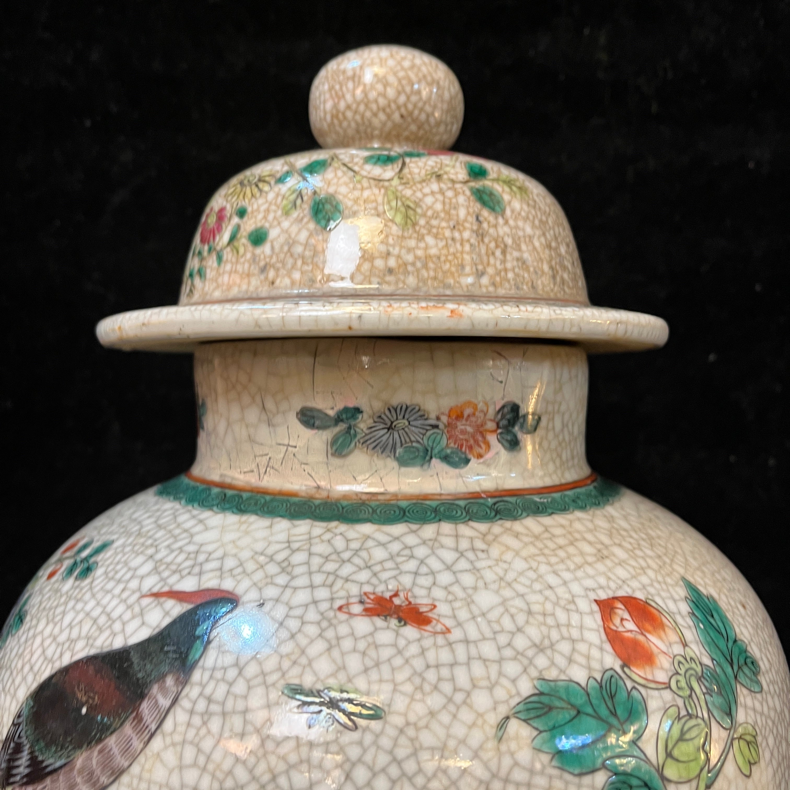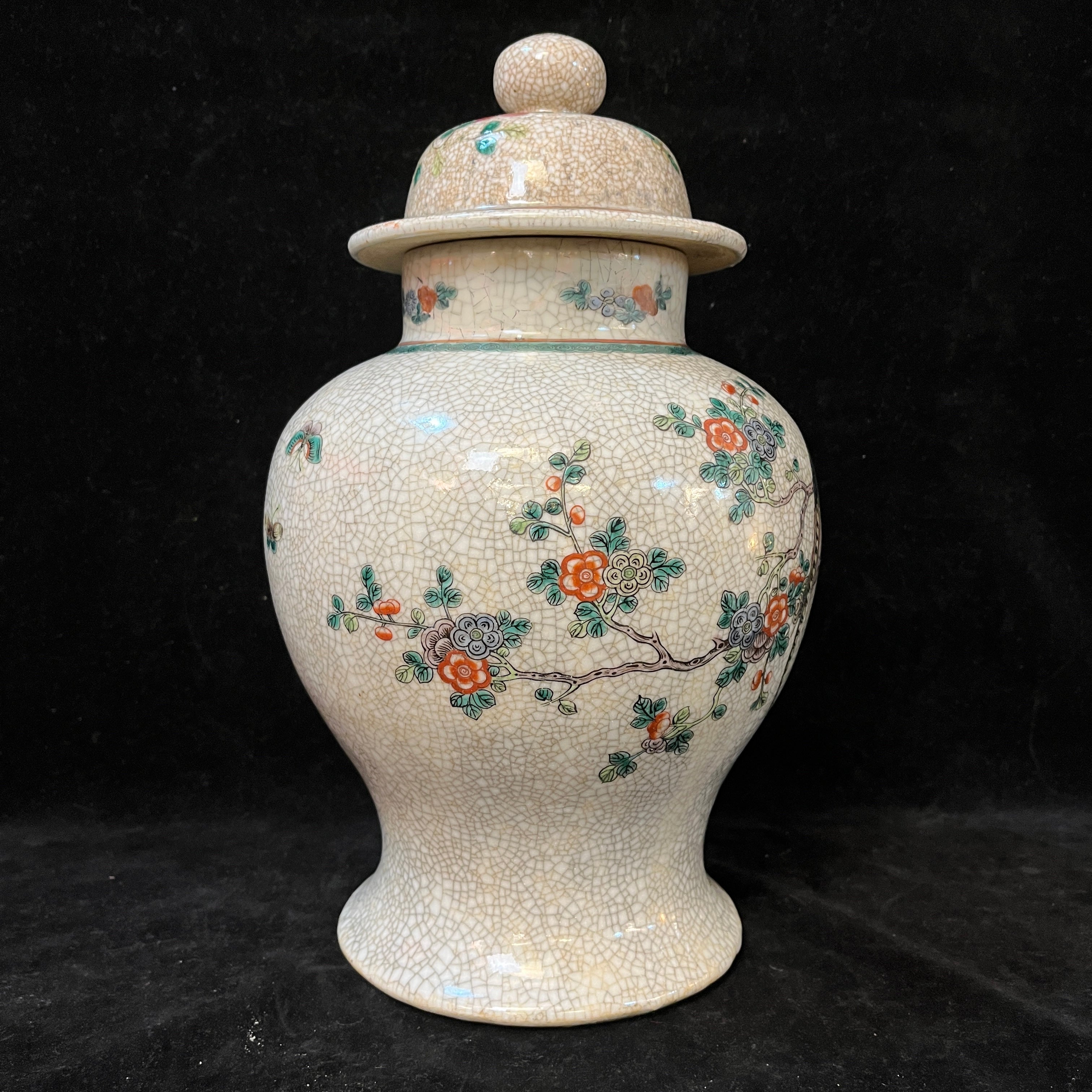 Potiche en porcelaine chinoise famille verte craquelée 'Faisan sur cerisier'