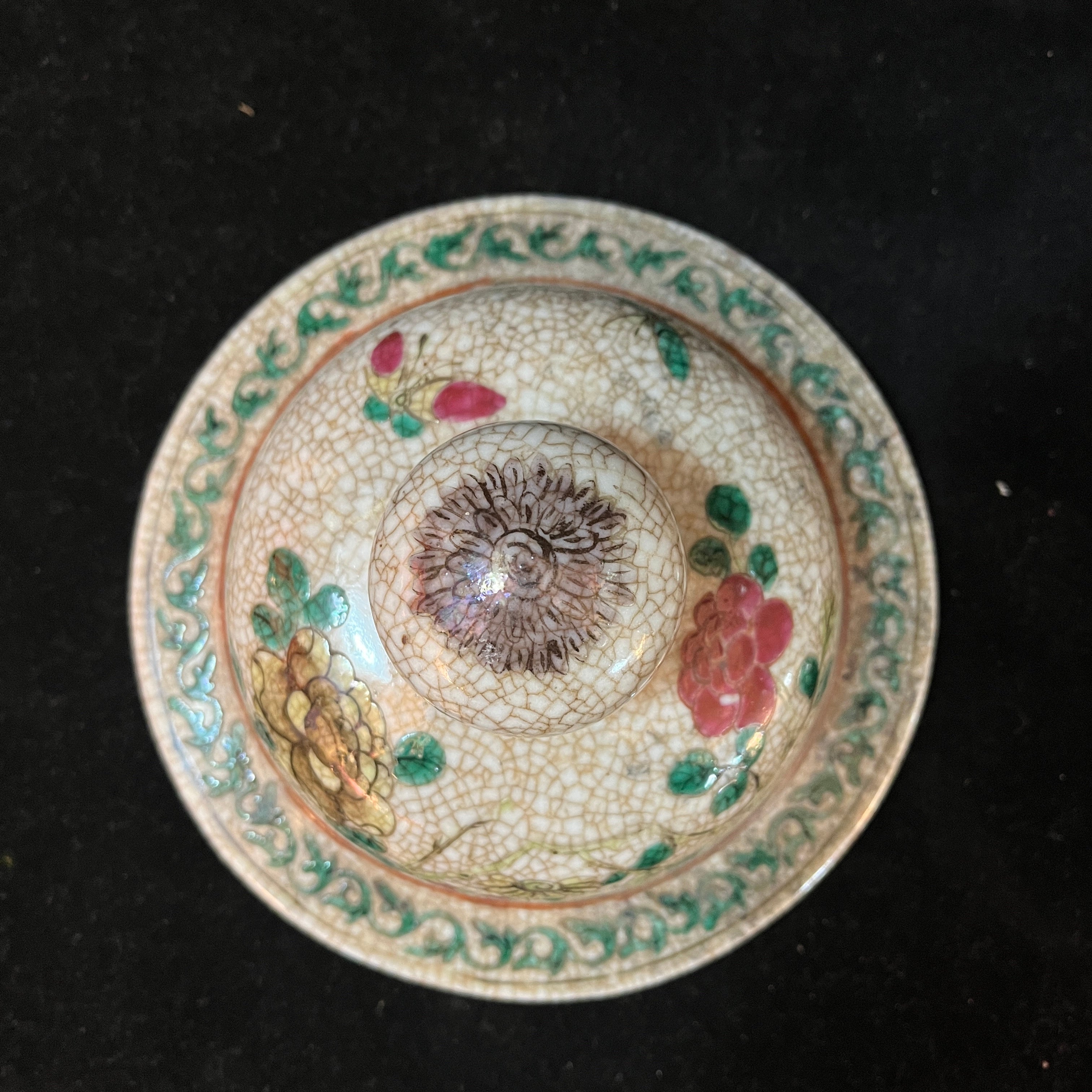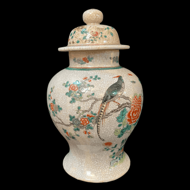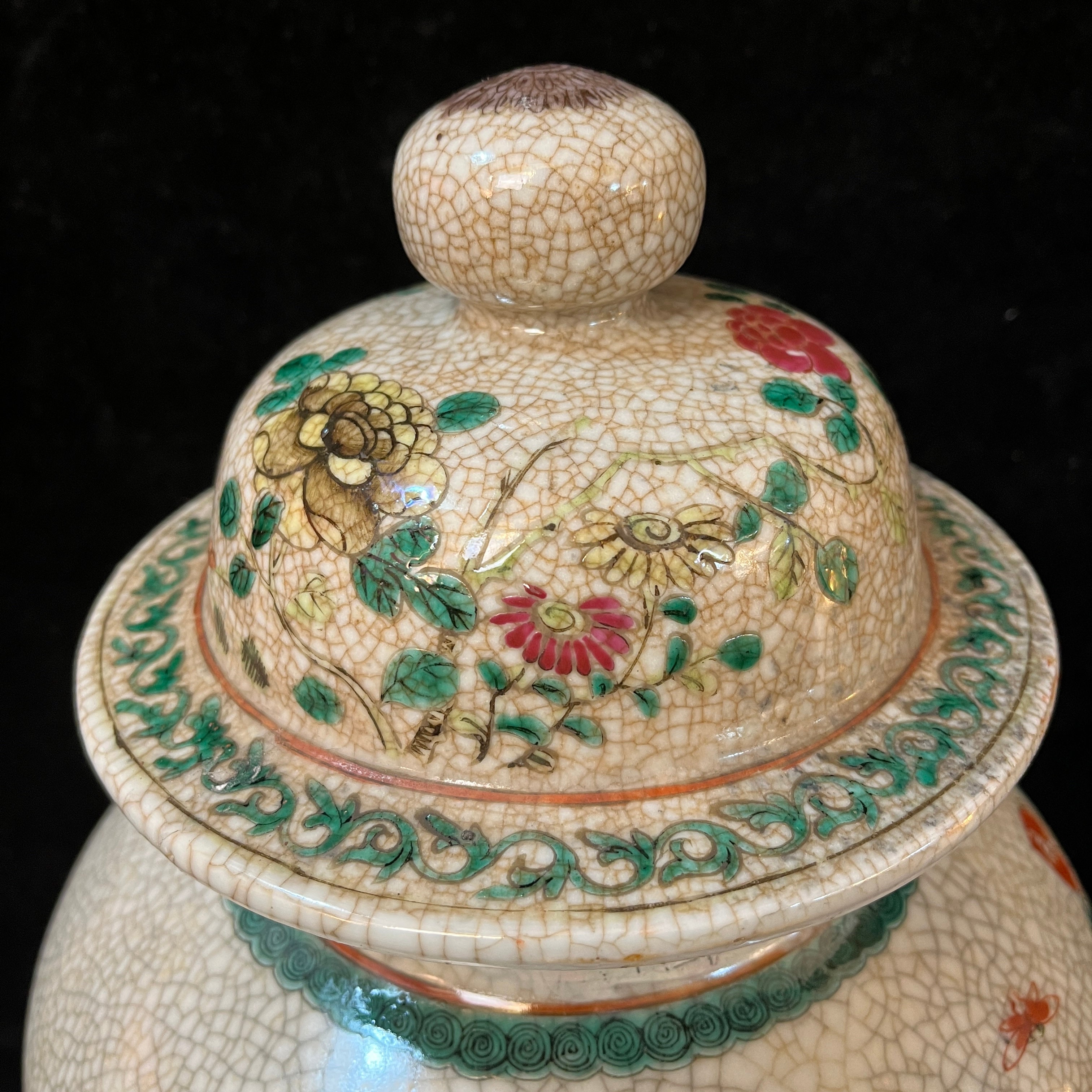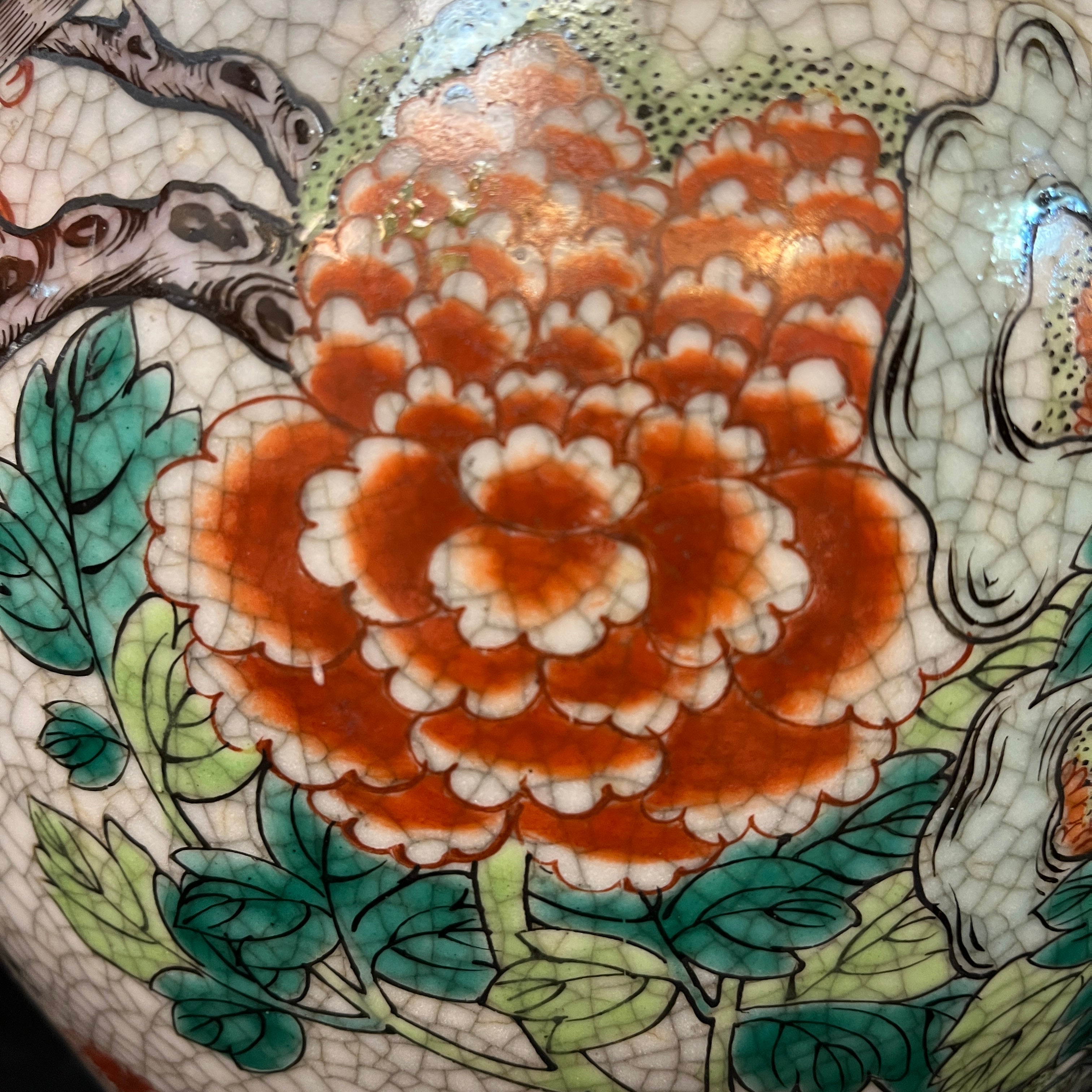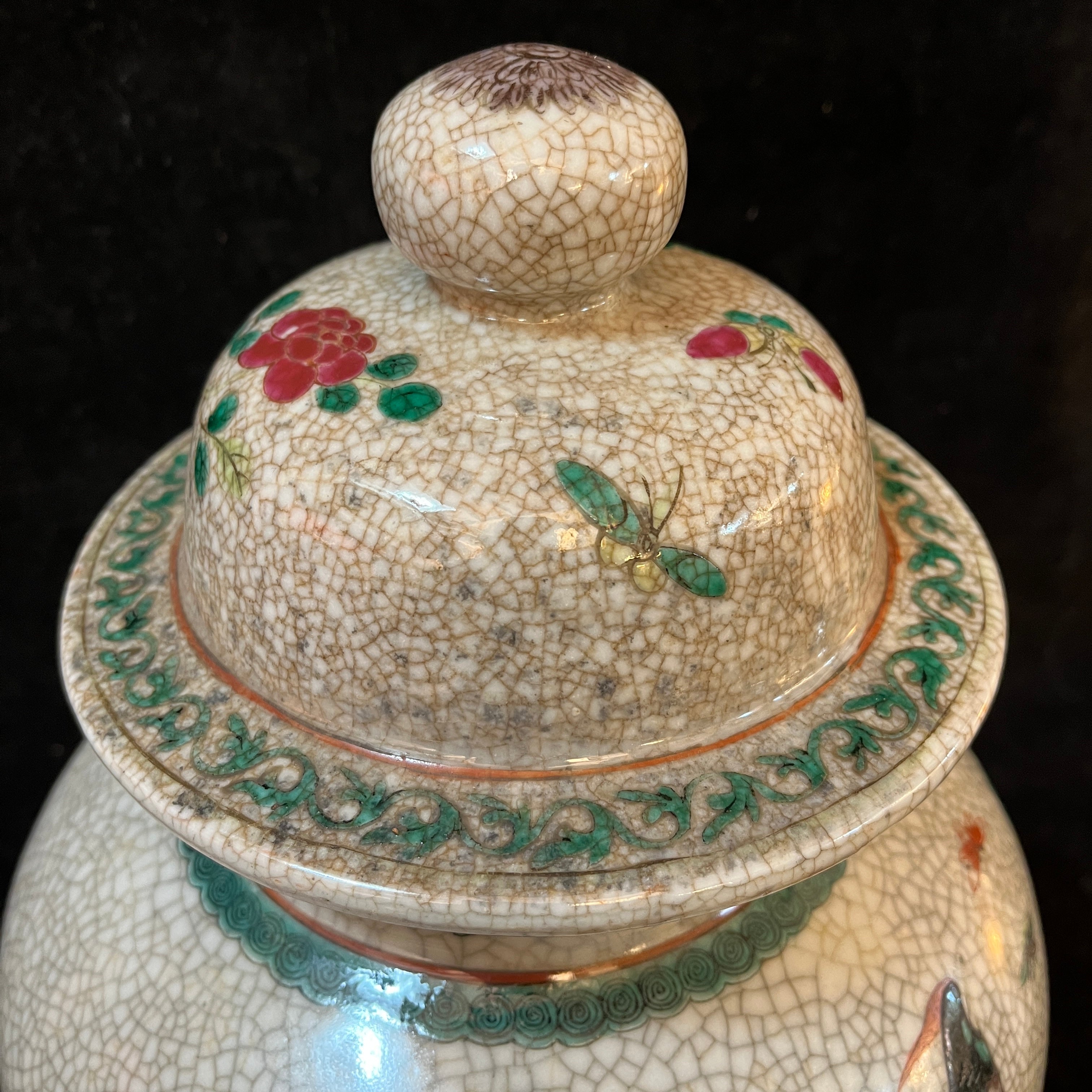 Potiche en porcelaine chinoise famille verte craquelée 'Faisan sur cerisier'