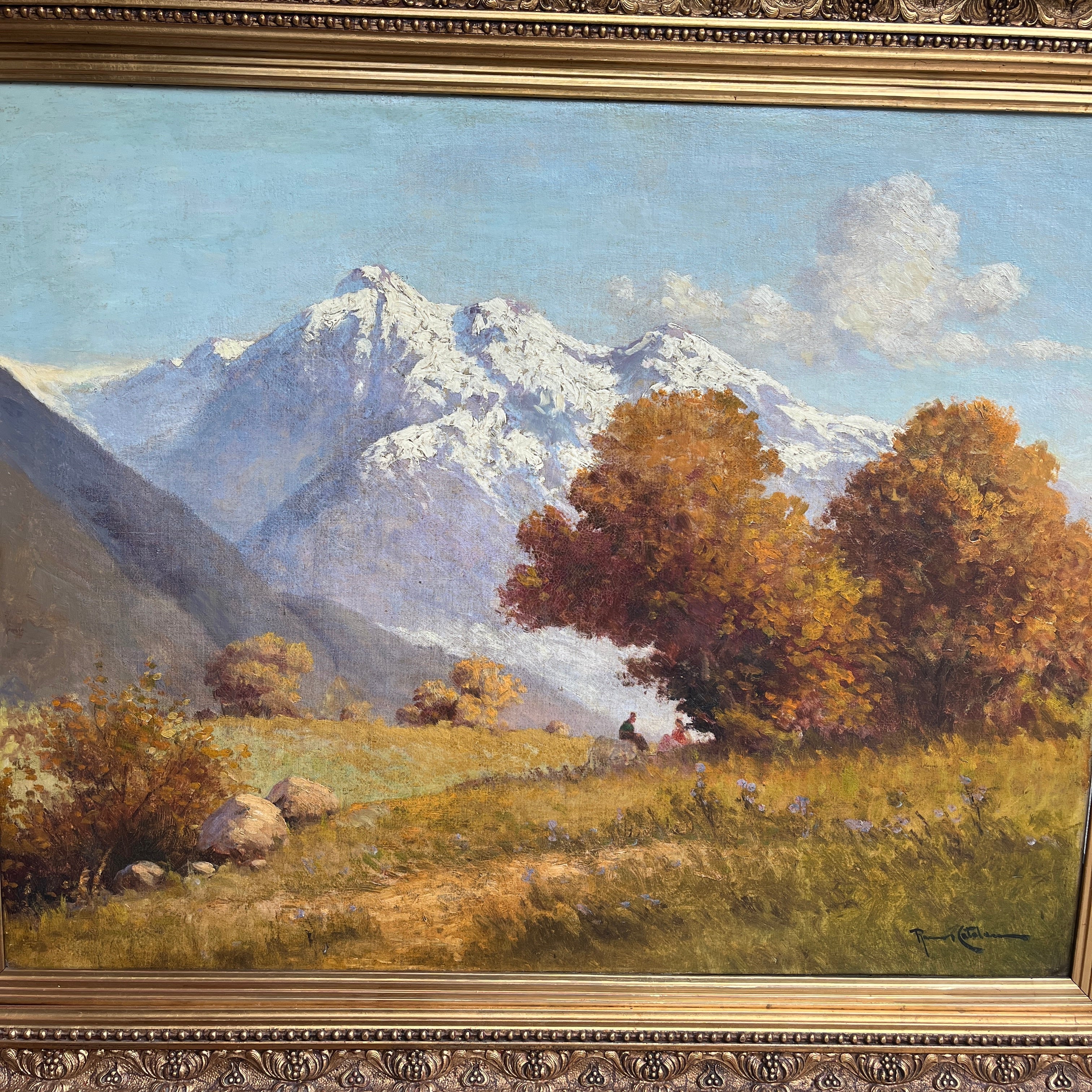 Ramos Catalán - Óleo sobre tela ‘Paisaje de cordillera y pareja’