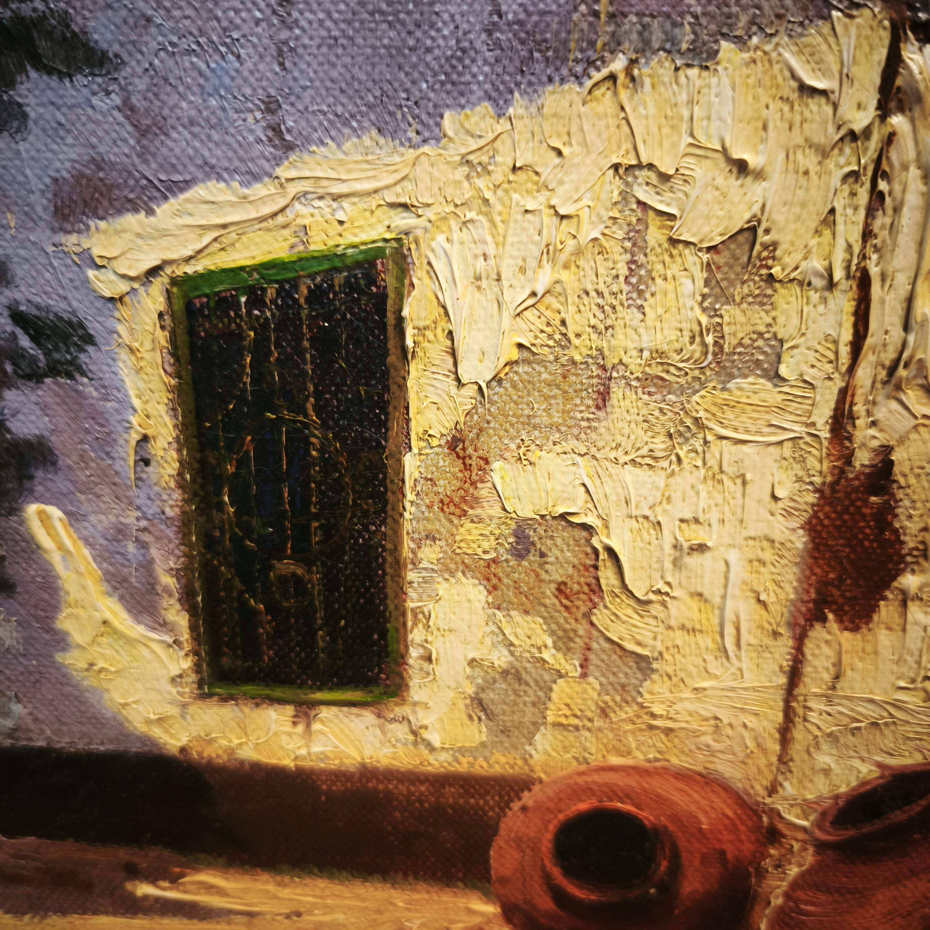 d'une maison de campagne Dimensions : Oeuvre 50 x 40 cm et Cadre 70 x 8 x 69 cm de hauteur.