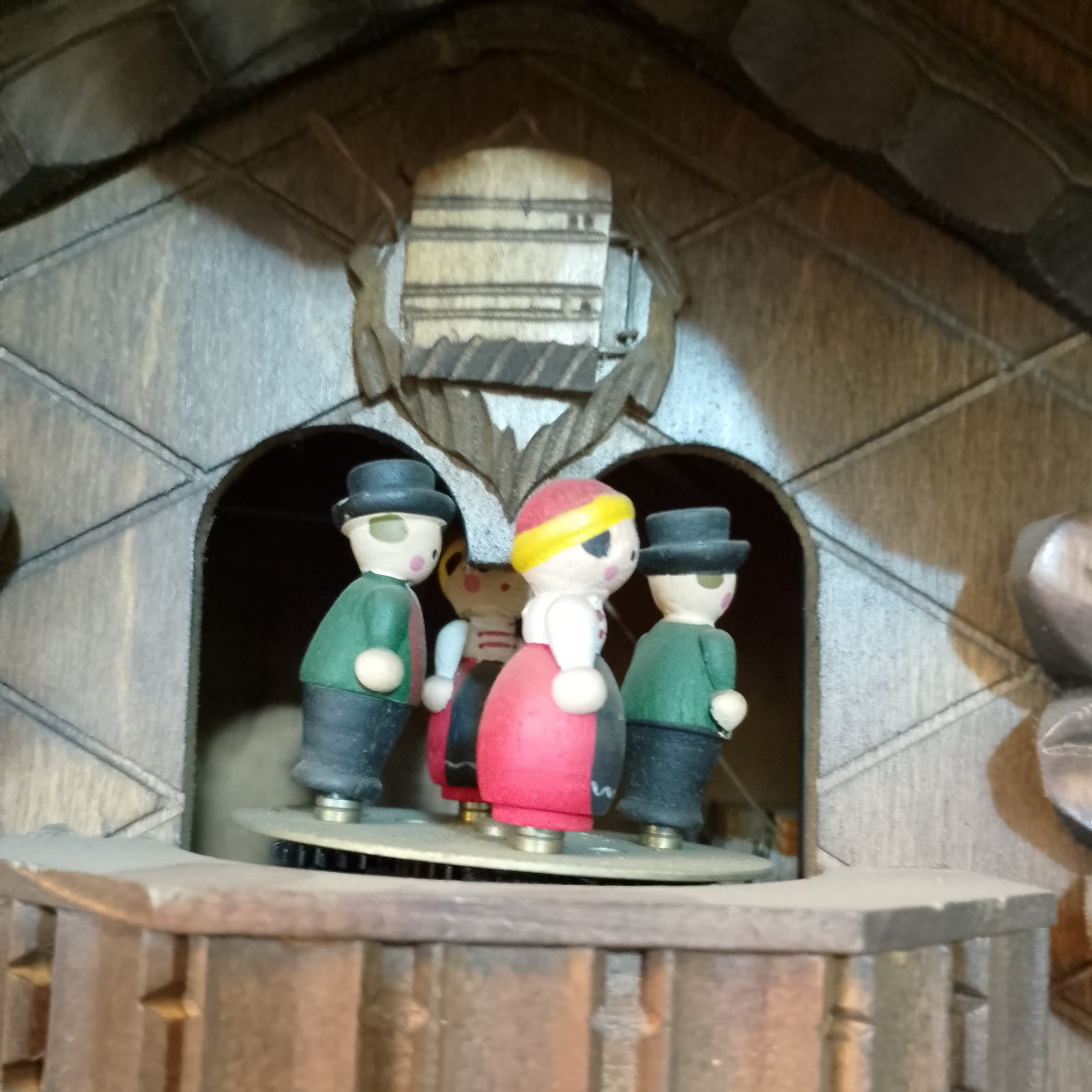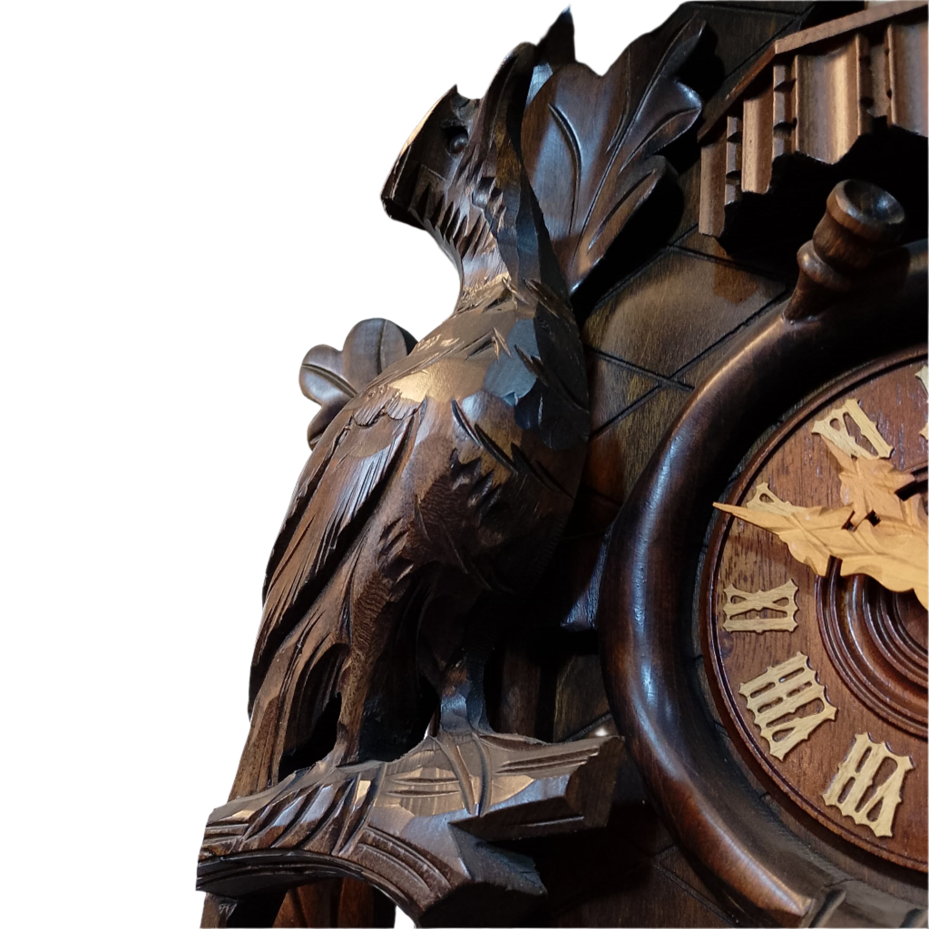Pendule à coucou allemande en bois sculpté de style Forêt-Noire