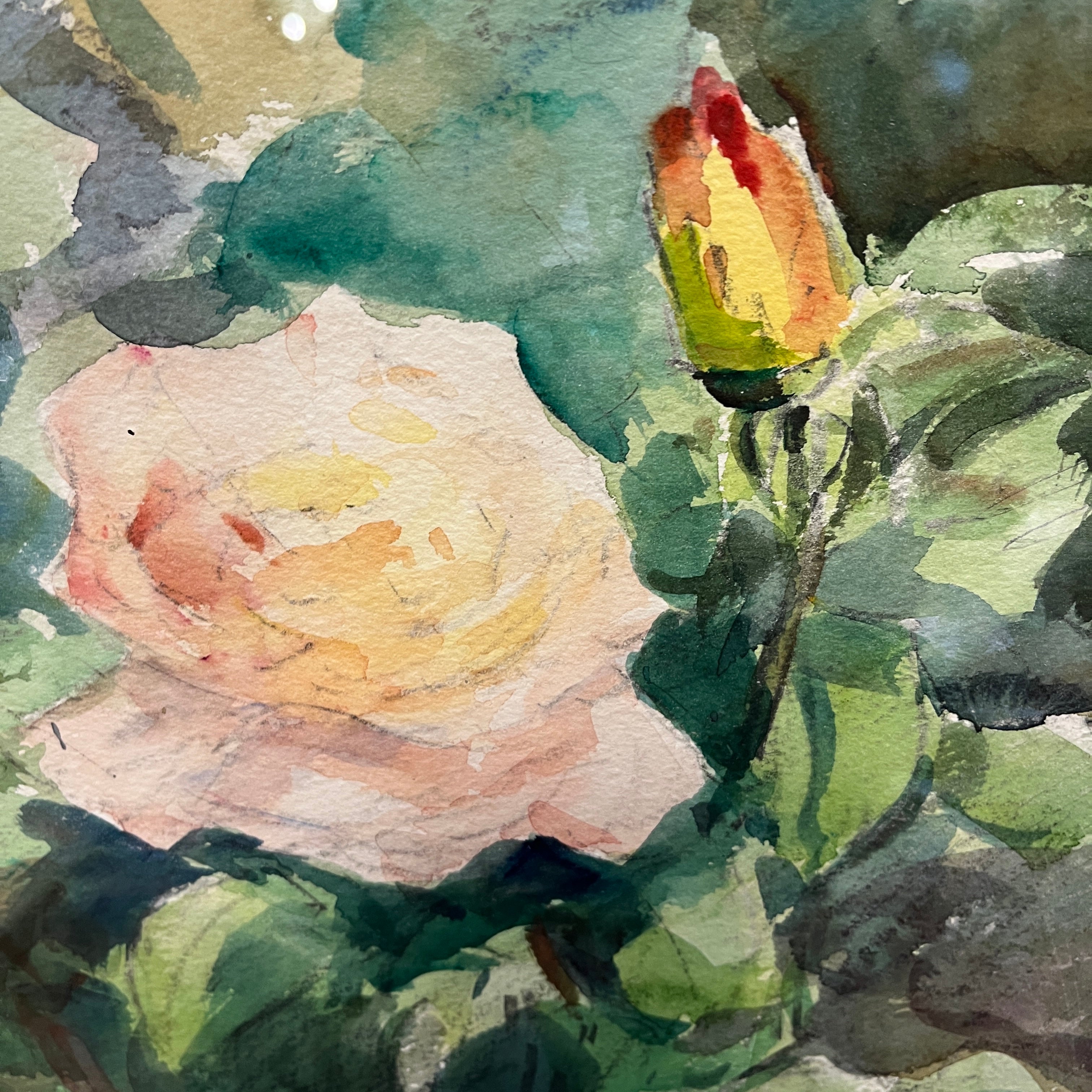 Ricardo Andwanter - Aquarelle sur papier 1990 'Roses et bourgeons'