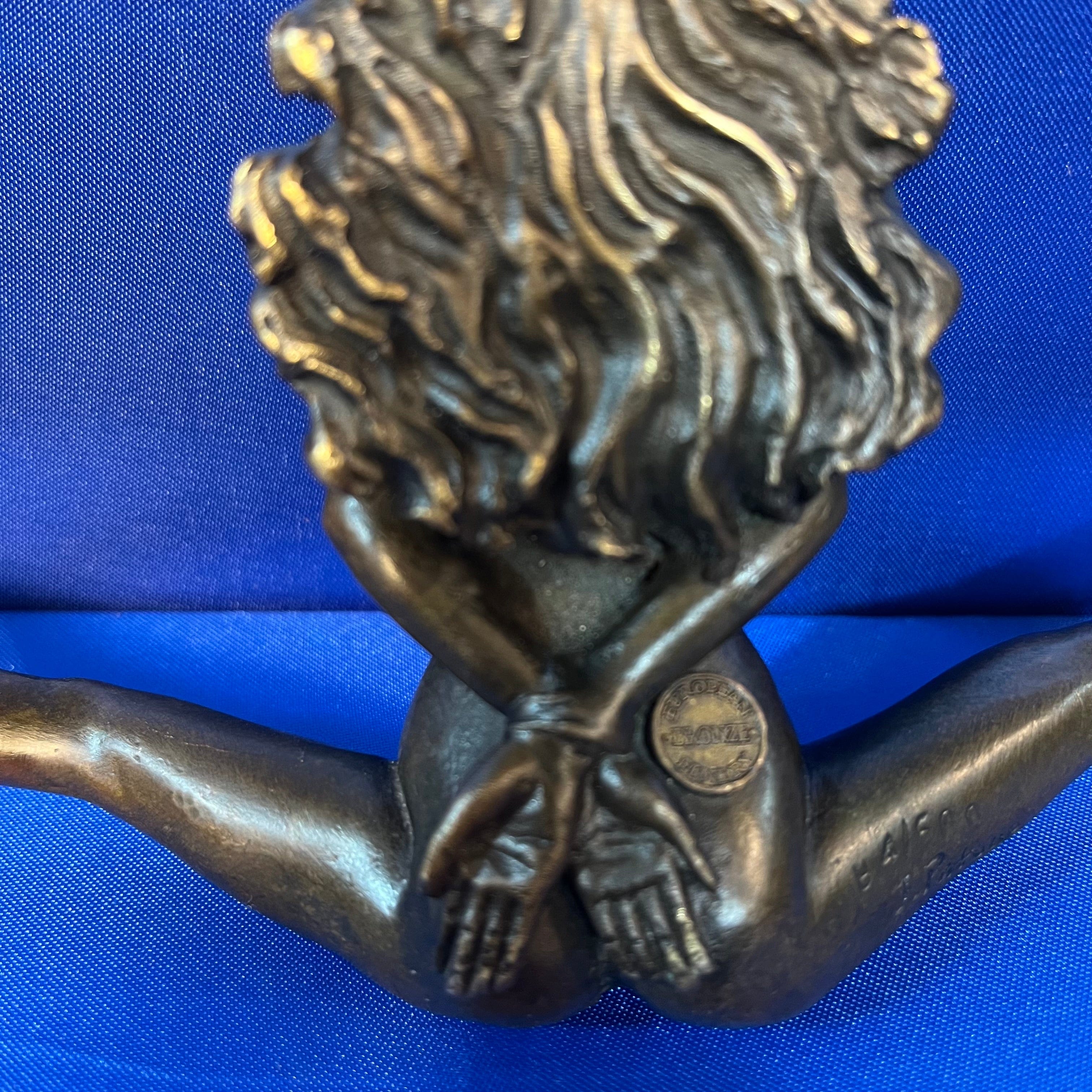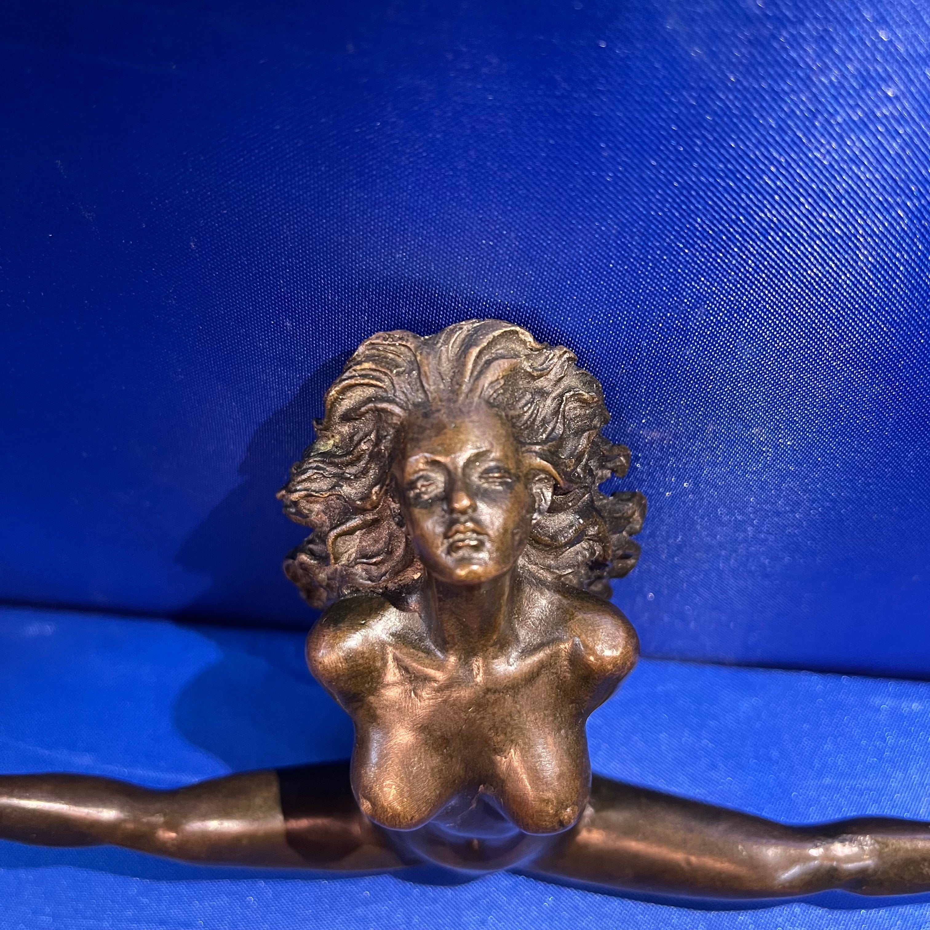 Presse-papier en bronze provocateur représentant une figure féminine érotique, de la seconde moitié du XXe siècle, France. Signé et numéroté.