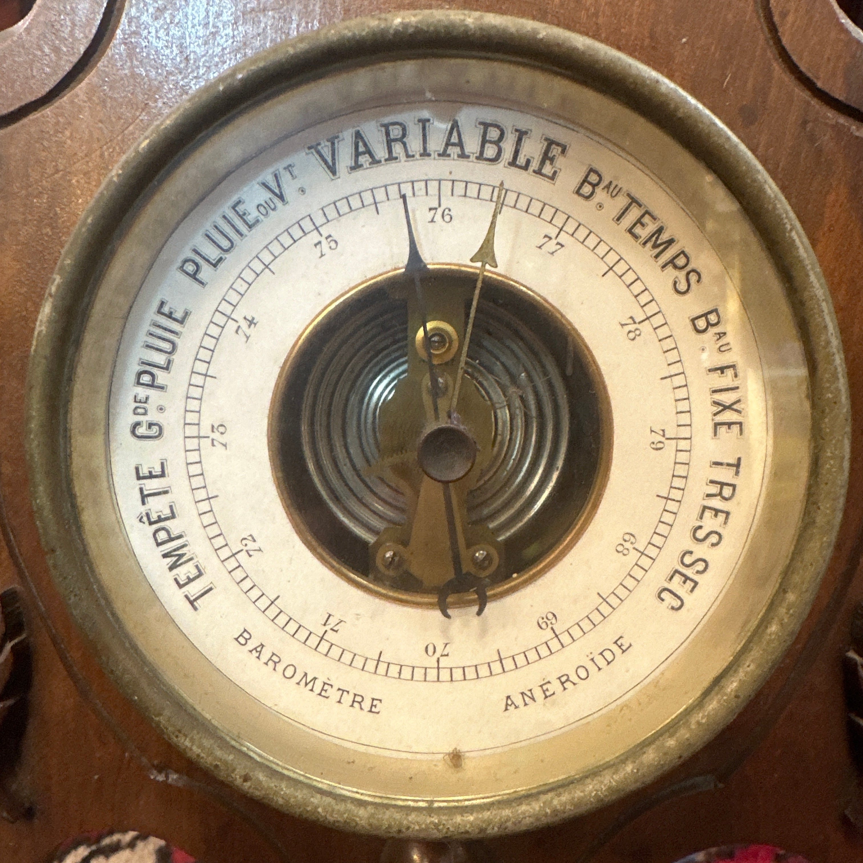 Baromètre-thermomètre mural en bois sculpté français
