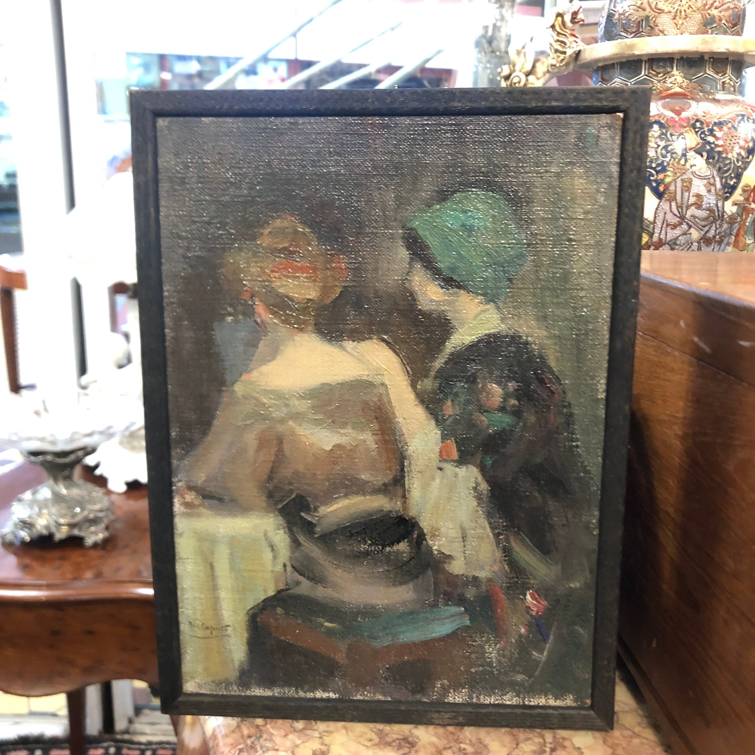 Ulises Caputo - Peinture à l'huile « Femmes assises à table »