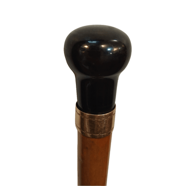 Canne de marche élégante au design simple en bois de malacca et manche en bakélite noire.