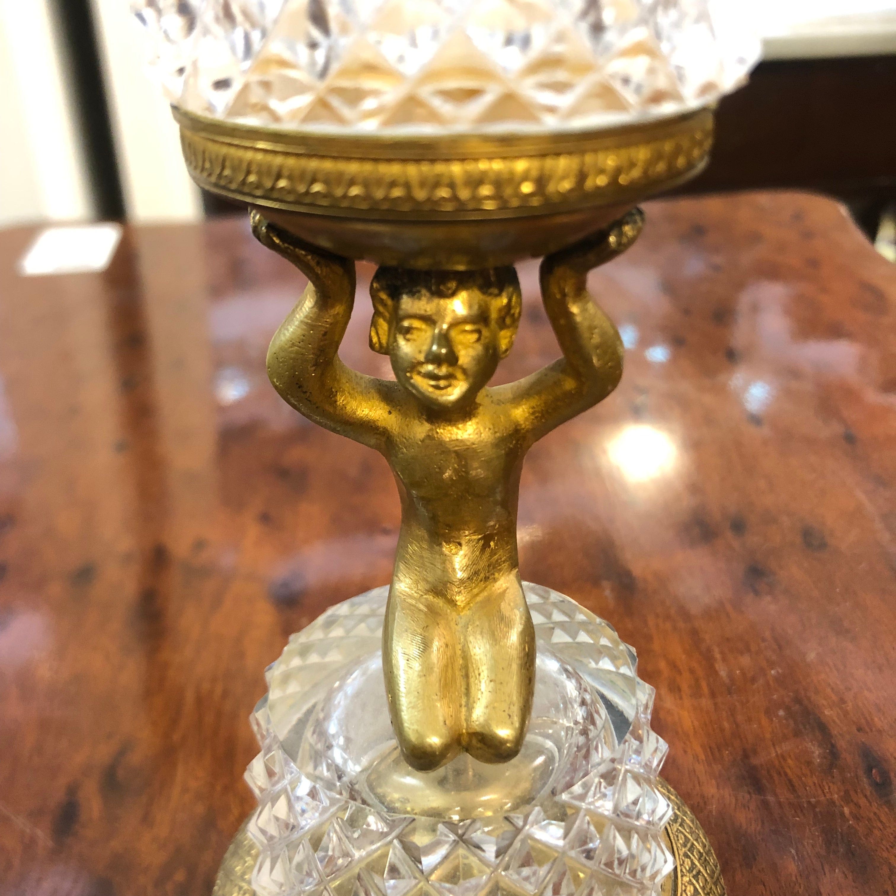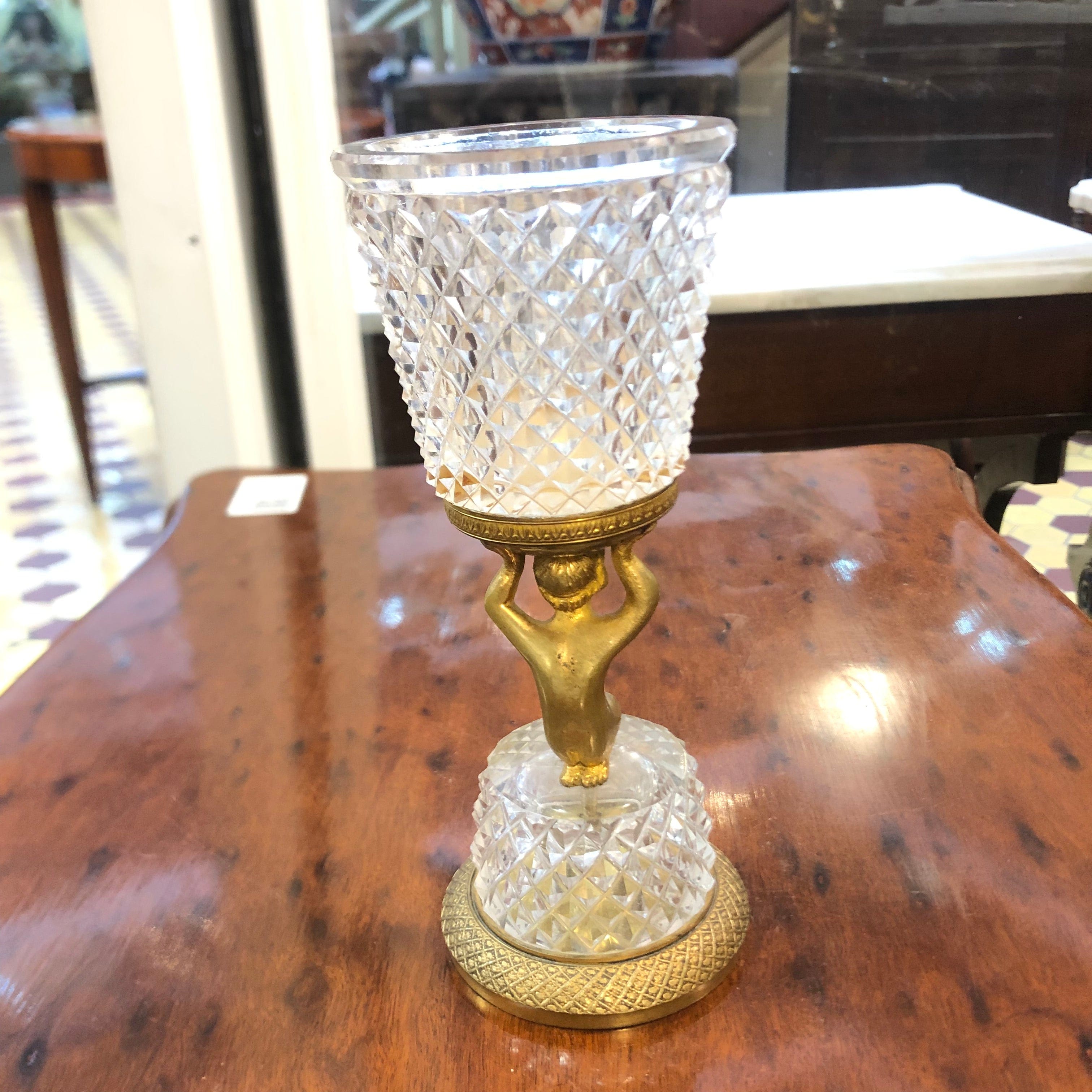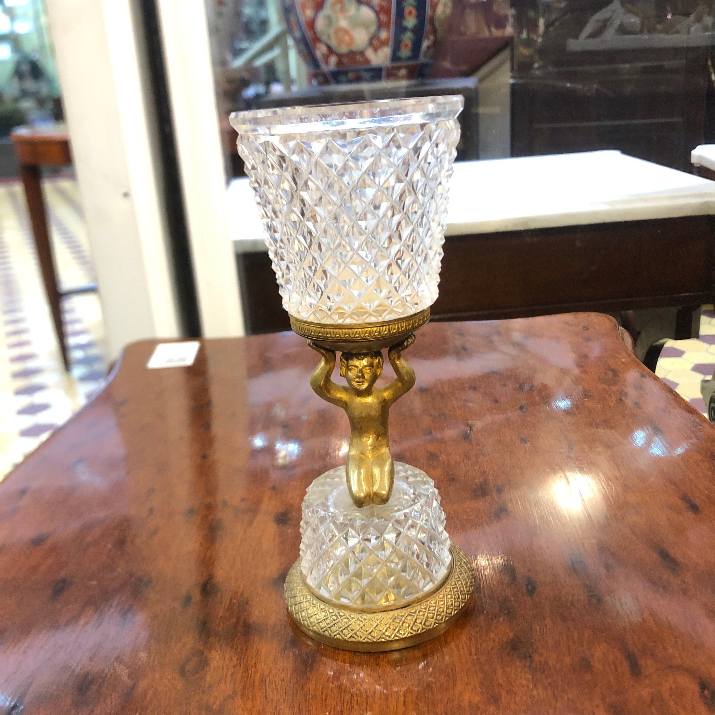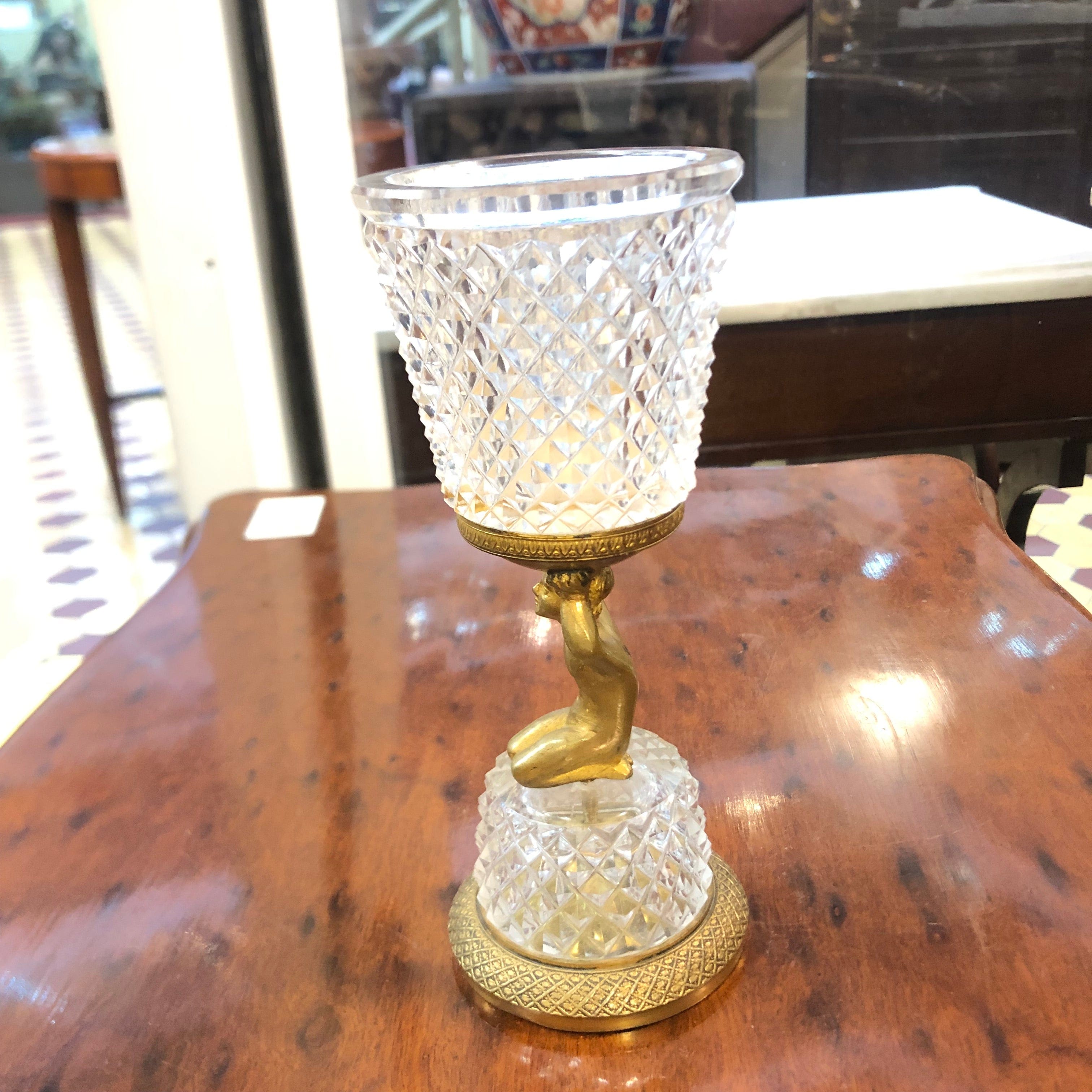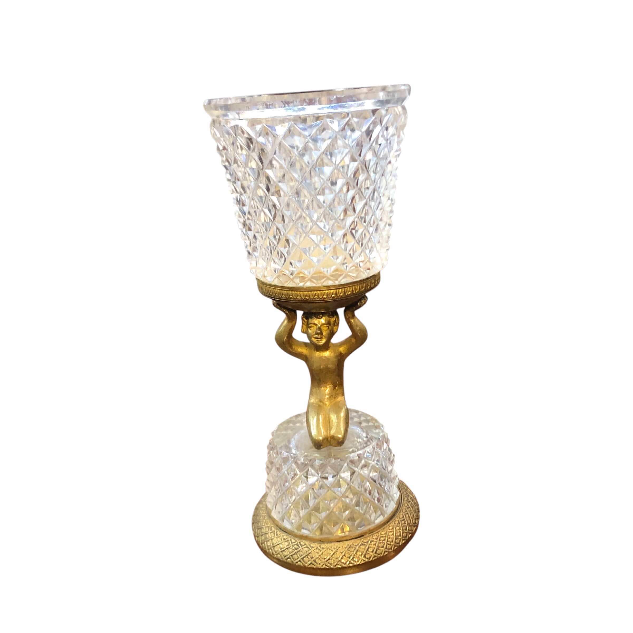 Magnifique gobelet en cristal taillé diamanté français avec bronze. Finement sculpté dans le bronze.
