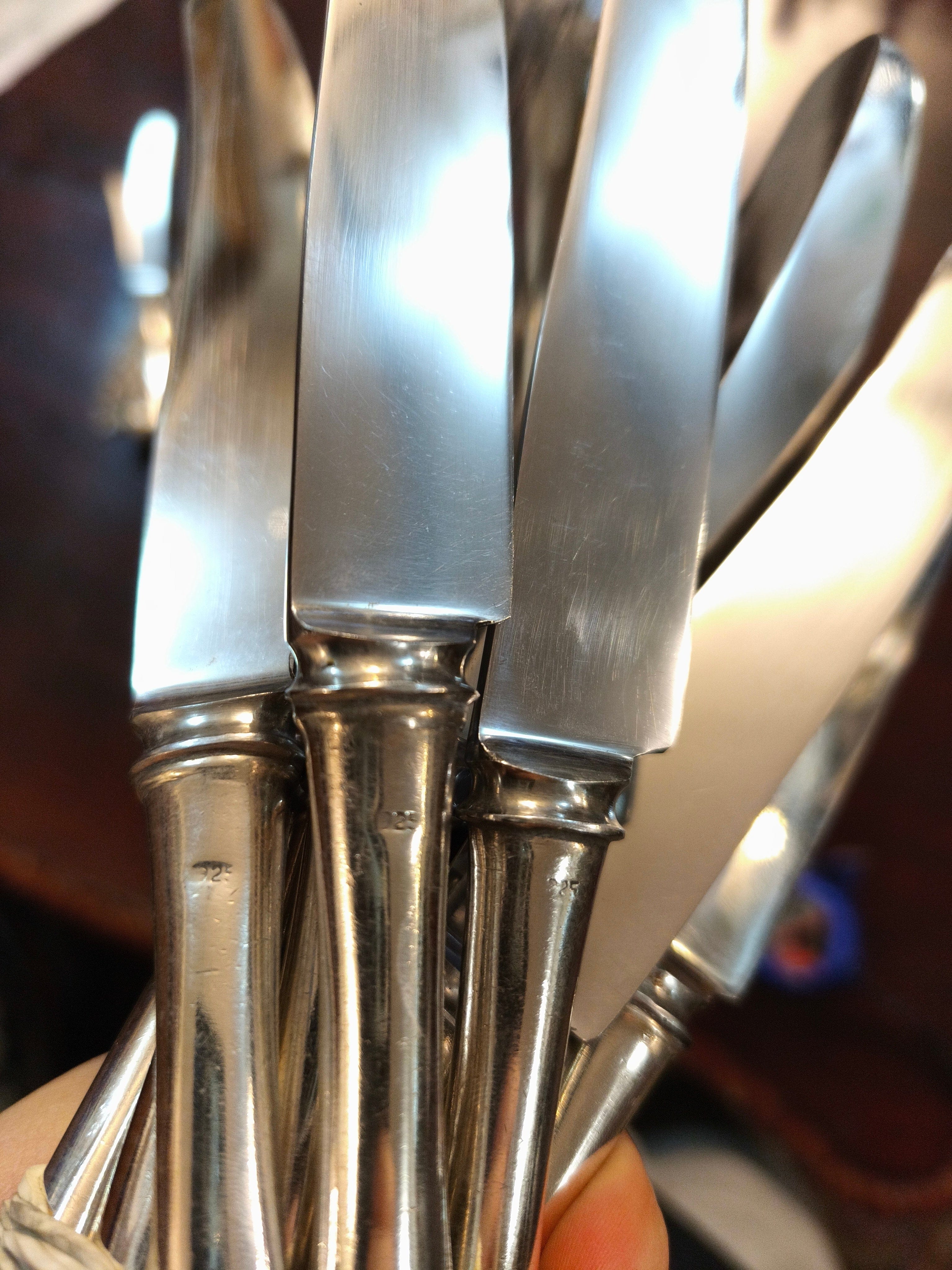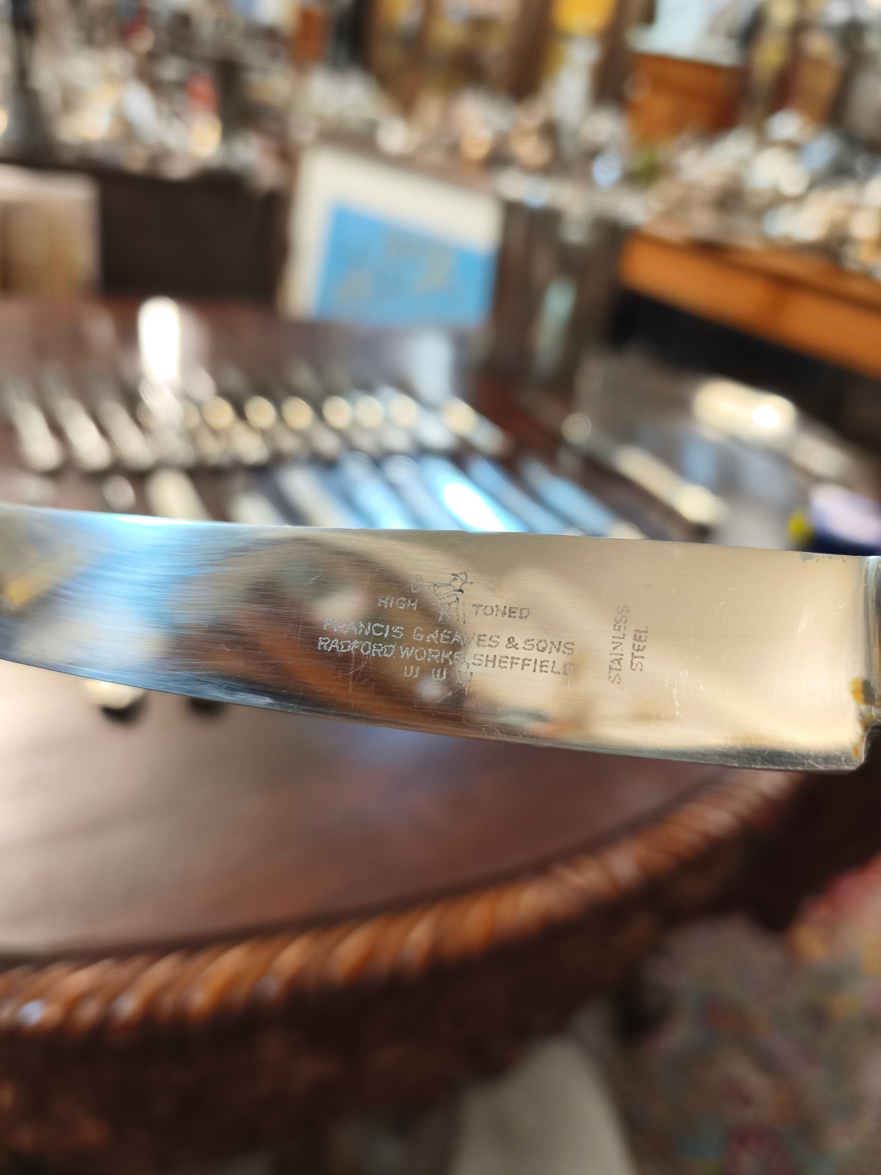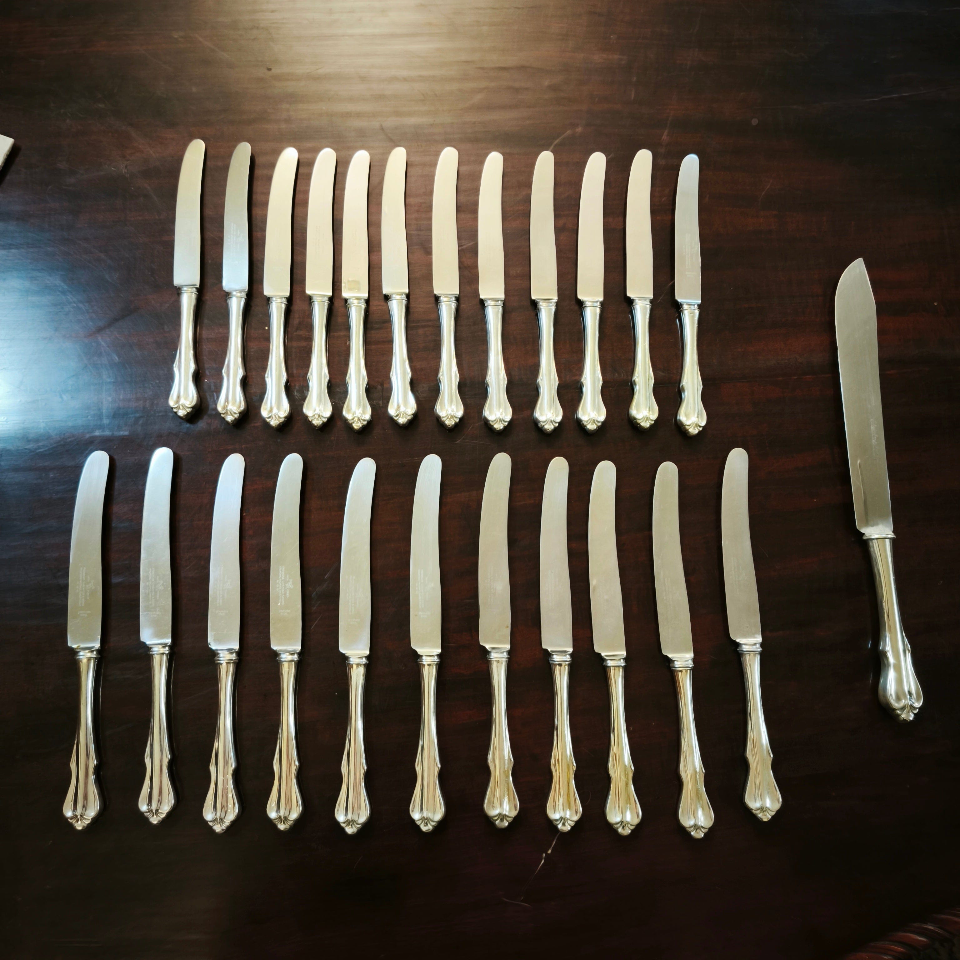 Ménagère anglaise 24 pièces Francis Greaves & Sons avec manche en argent et lame en acier