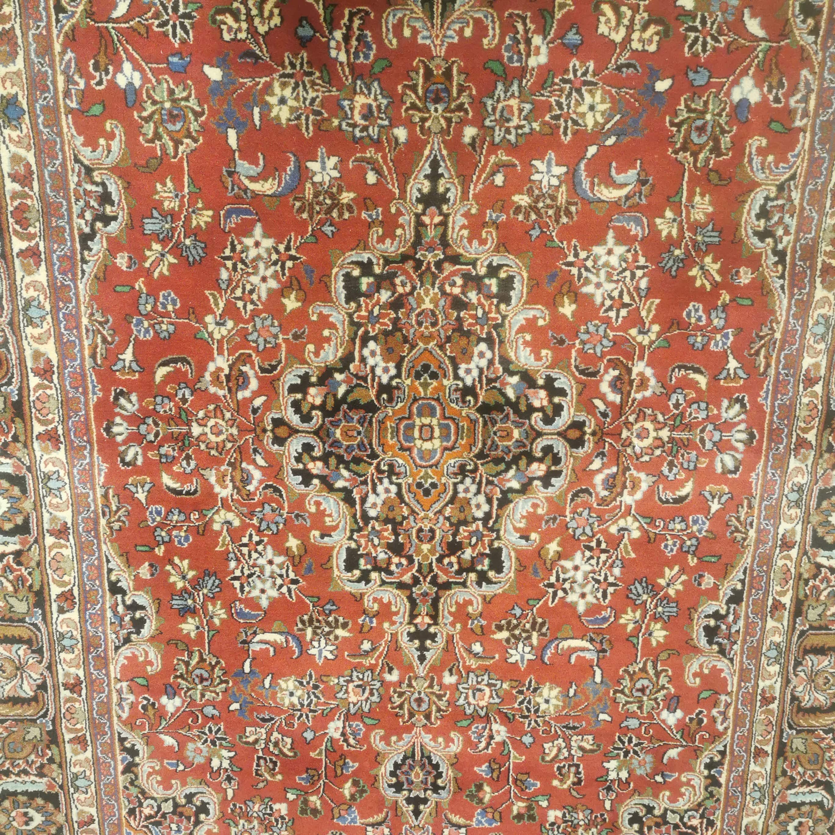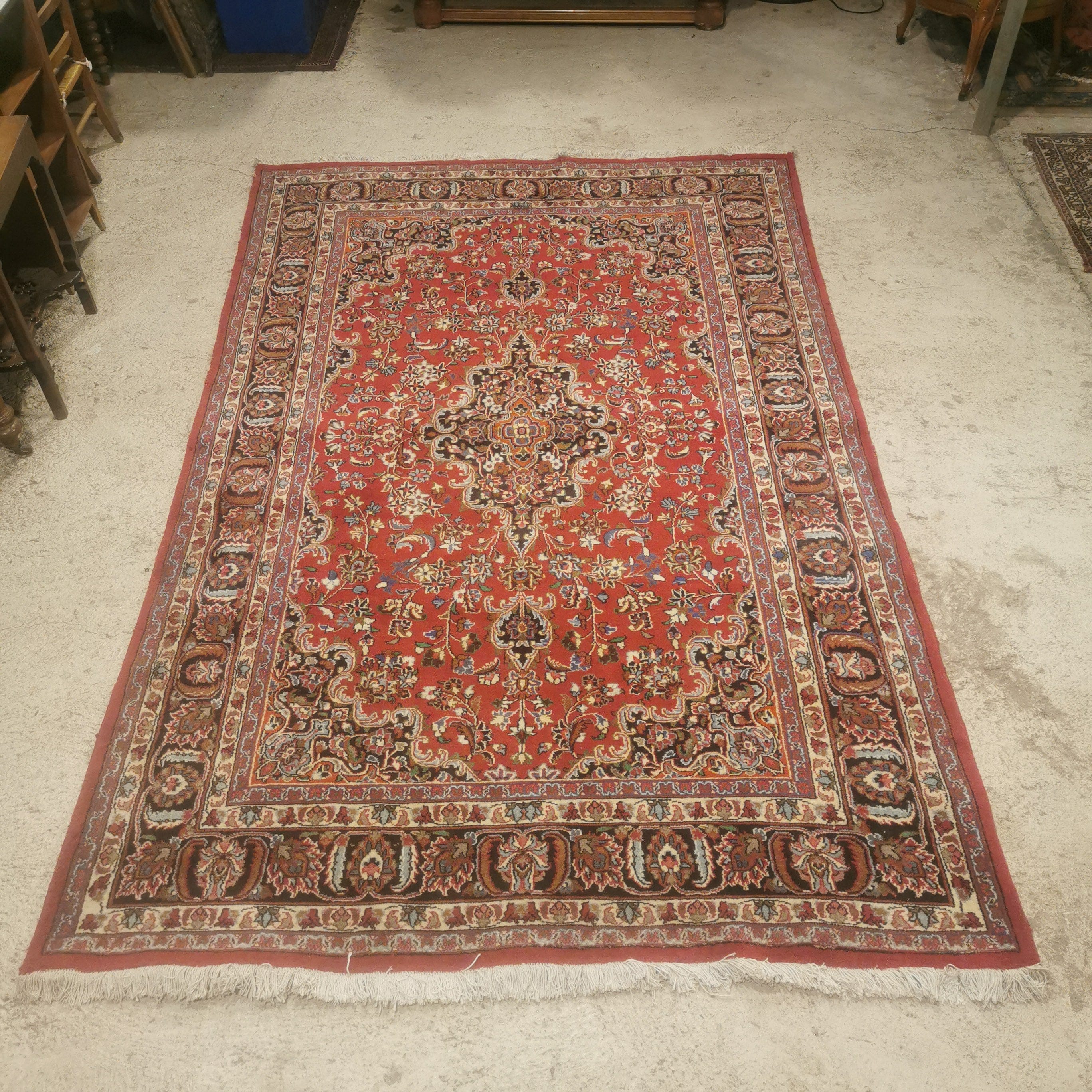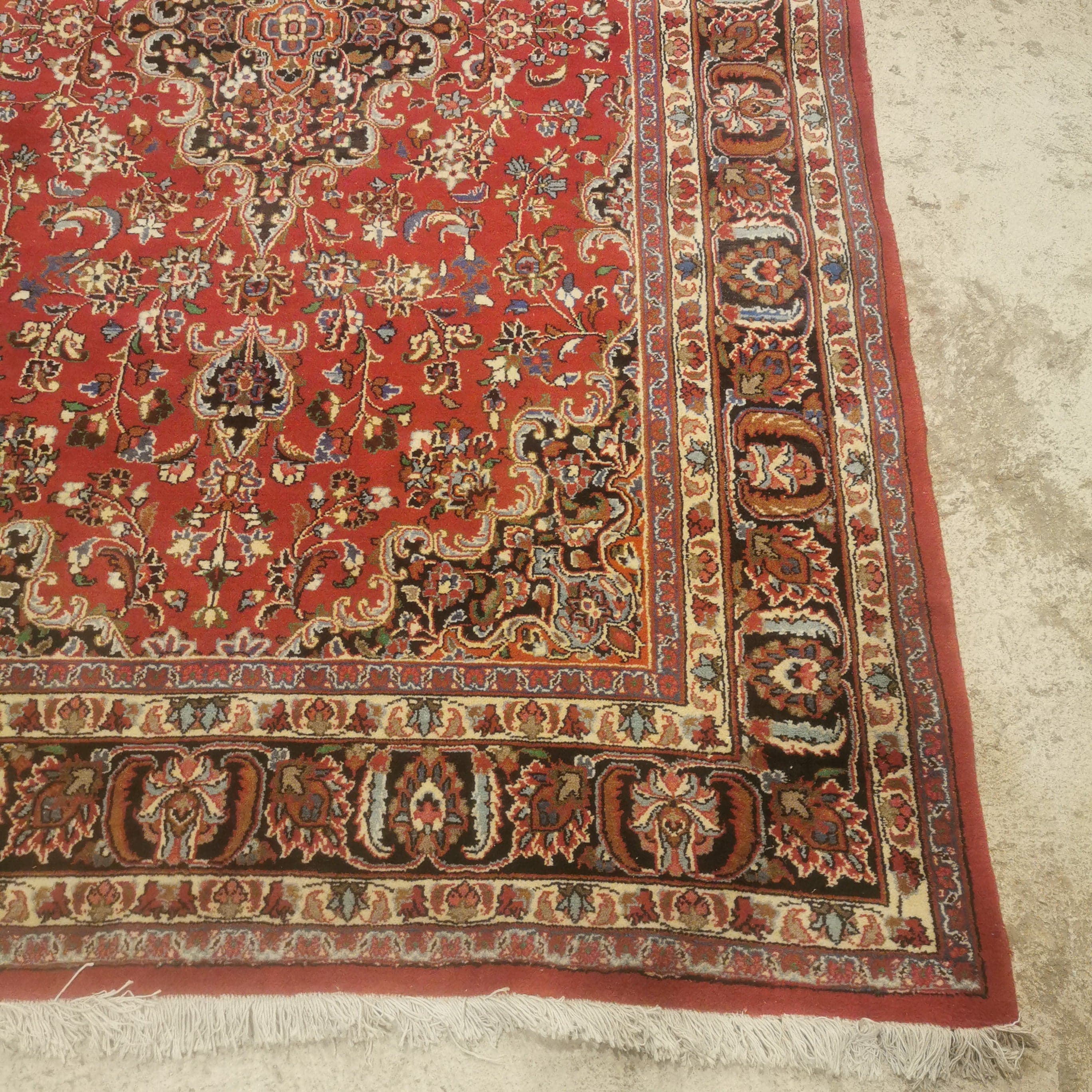 Magnifique tapis persan Kirman en laine, vieux d'environ 70 ans. Les tapis Kirman sont réputés pour leurs détails floraux et leurs motifs géométriques dans de magnifiques nuances de rouge, turquoise et bleu marine.