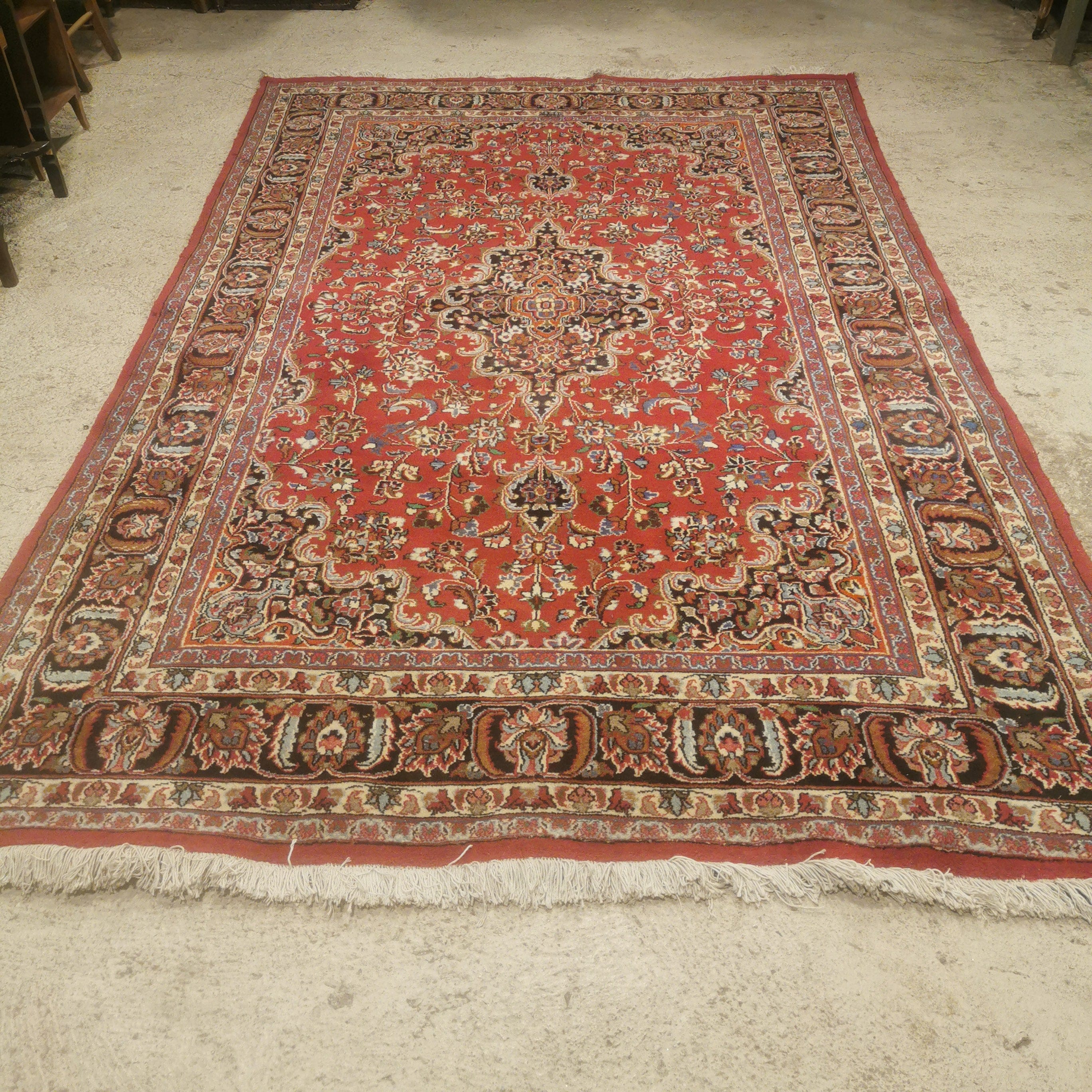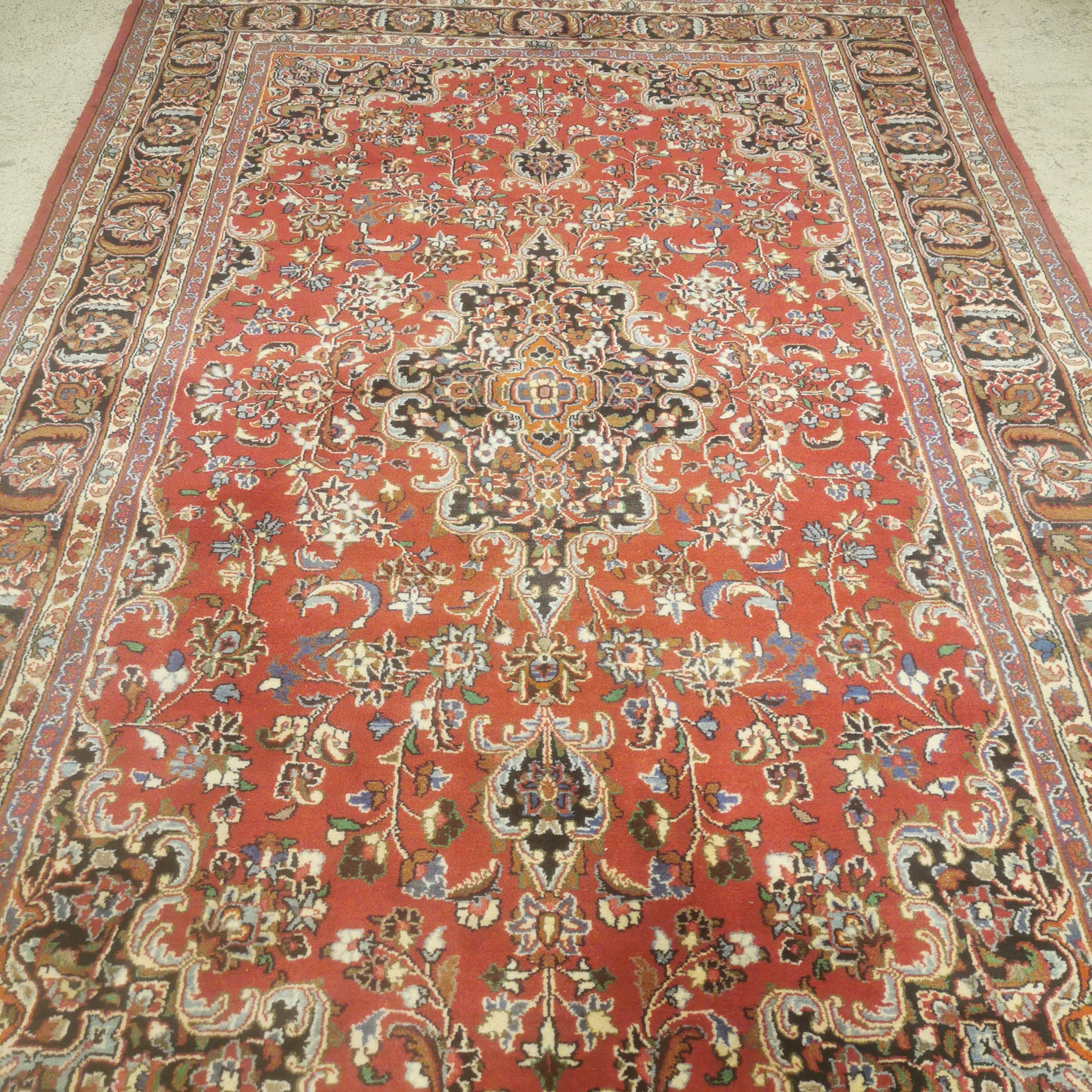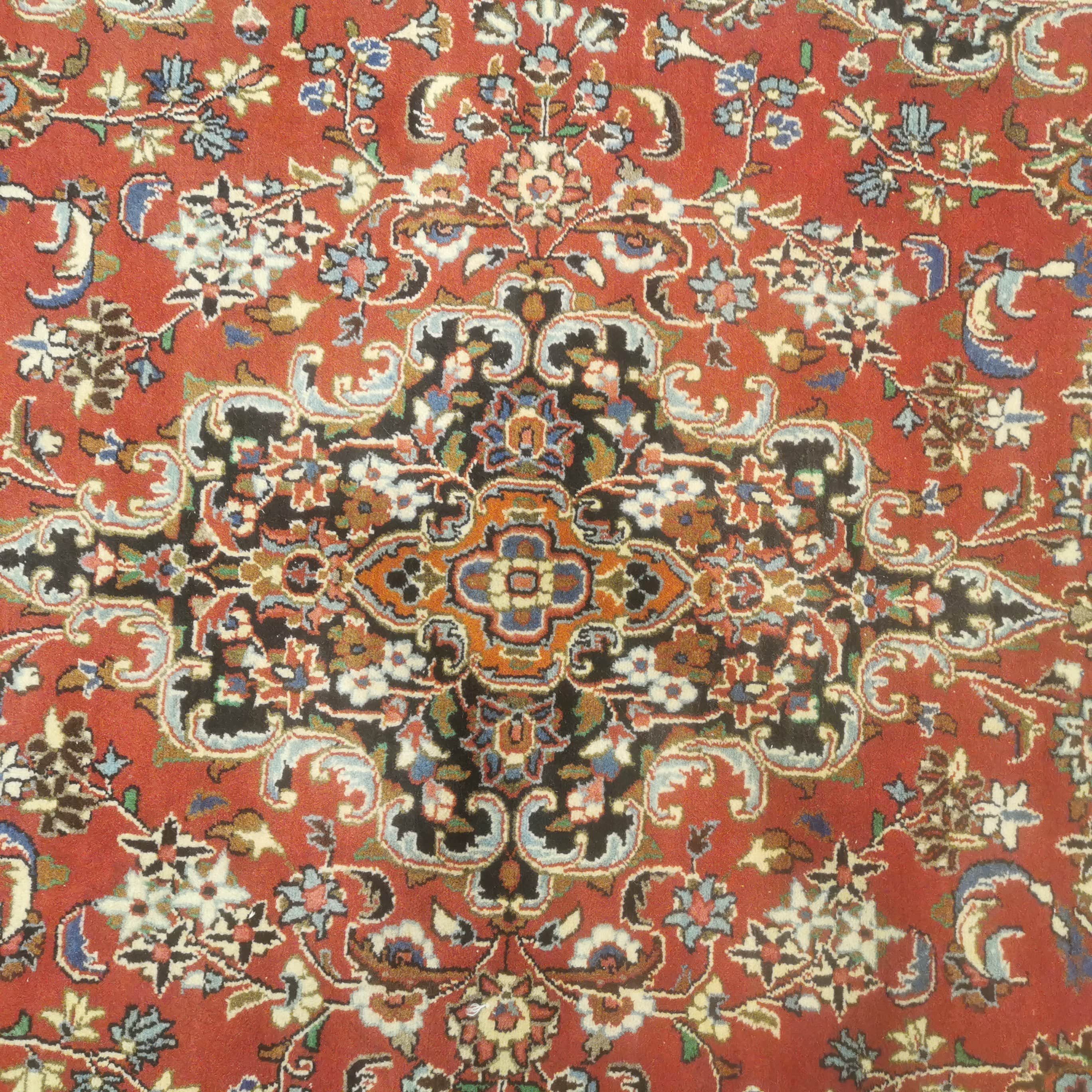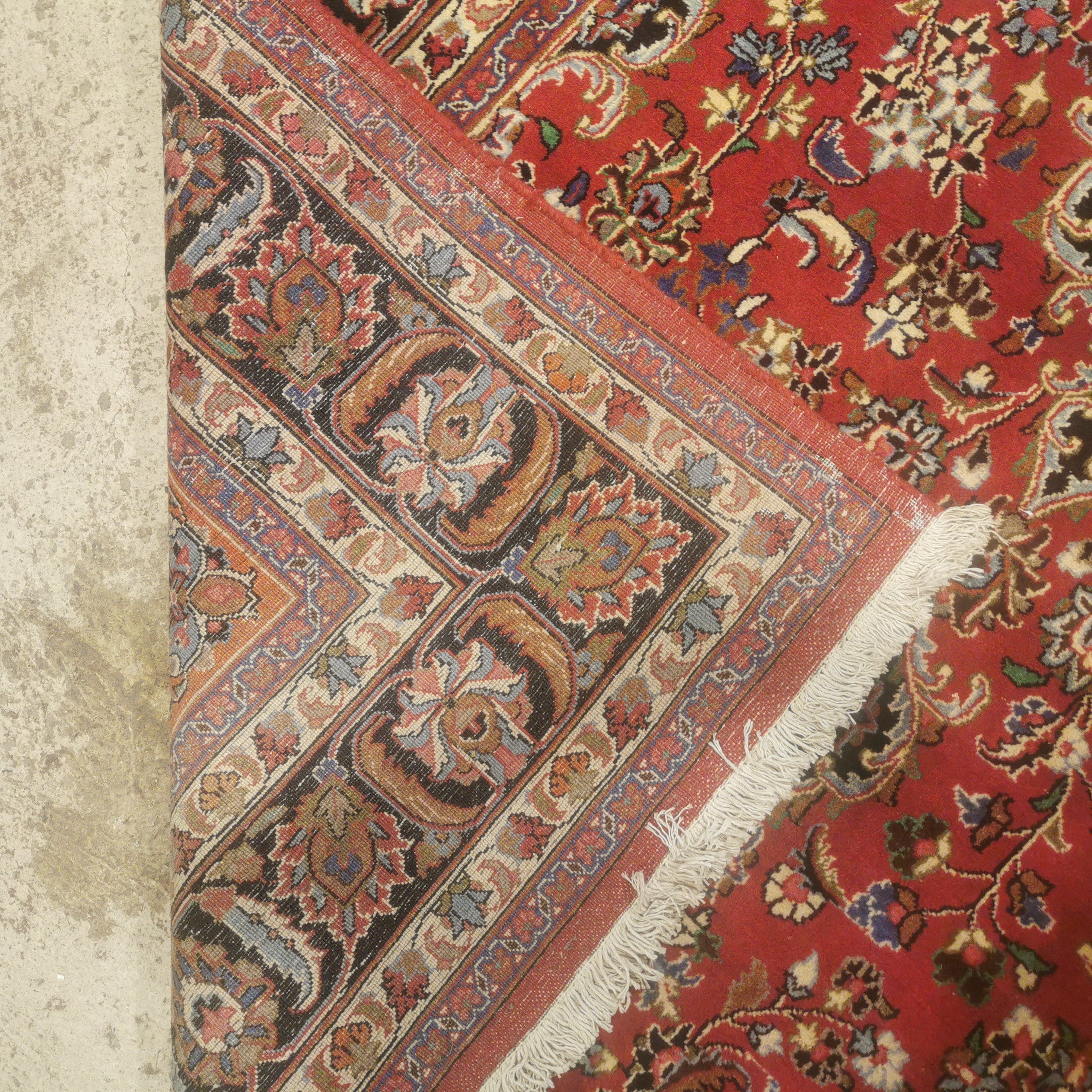 Magnifique tapis persan Kirman en laine, vieux d'environ 70 ans. Les tapis Kirman sont réputés pour leurs détails floraux et leurs motifs géométriques dans de magnifiques nuances de rouge, turquoise et bleu marine.