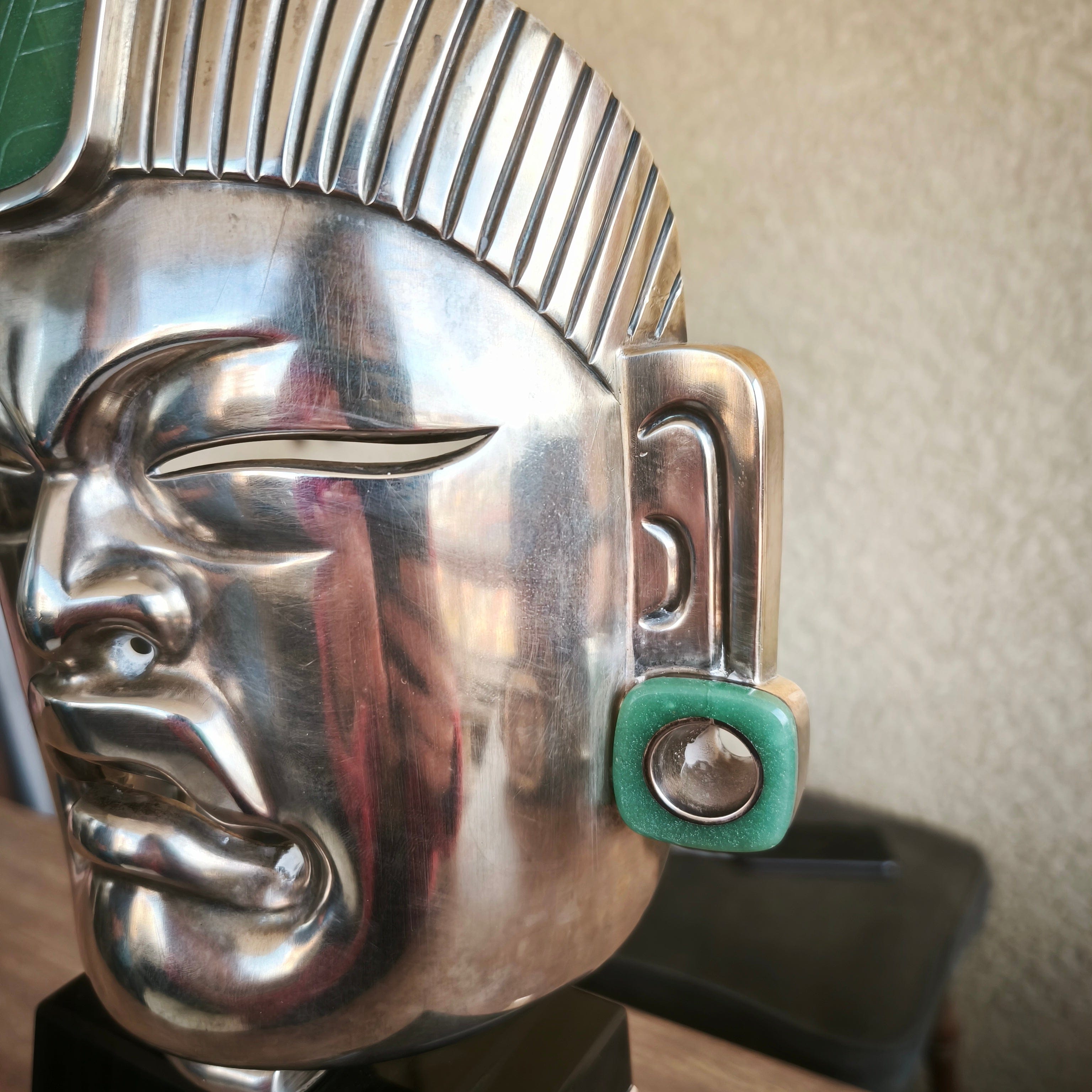 Masque olmèque mexicain de Palenque, ornements en obsidienne et argent, Ezequiel Tapia