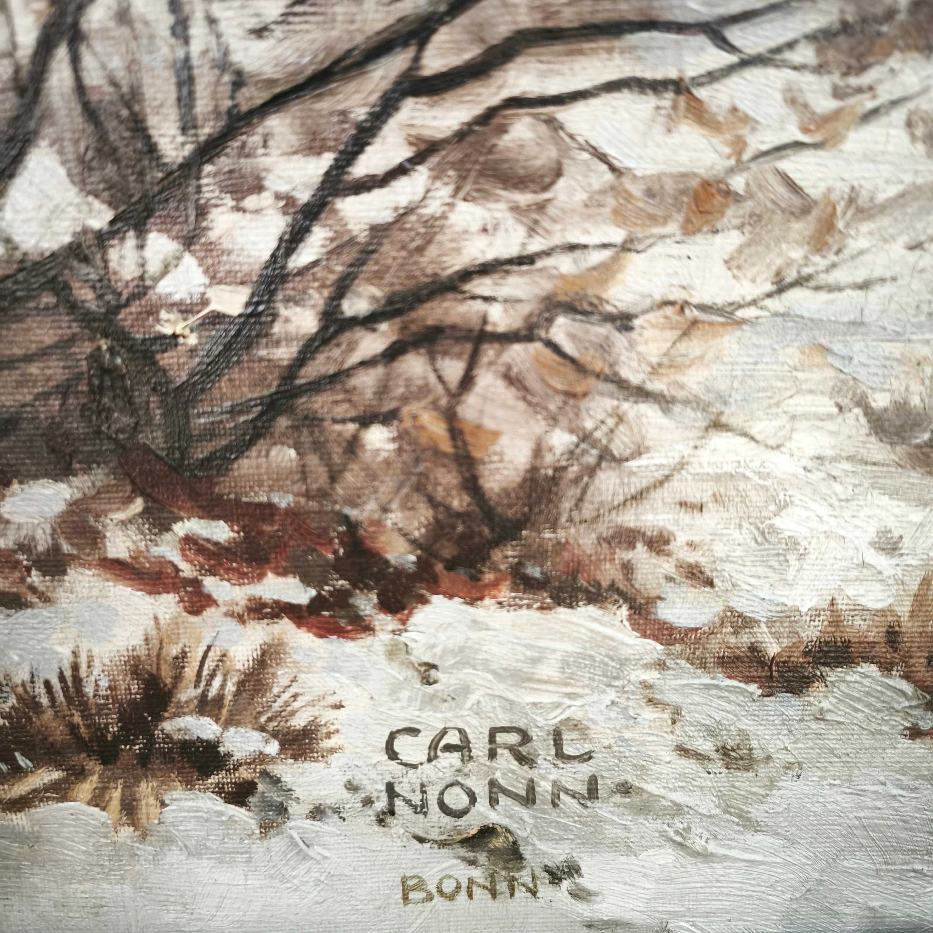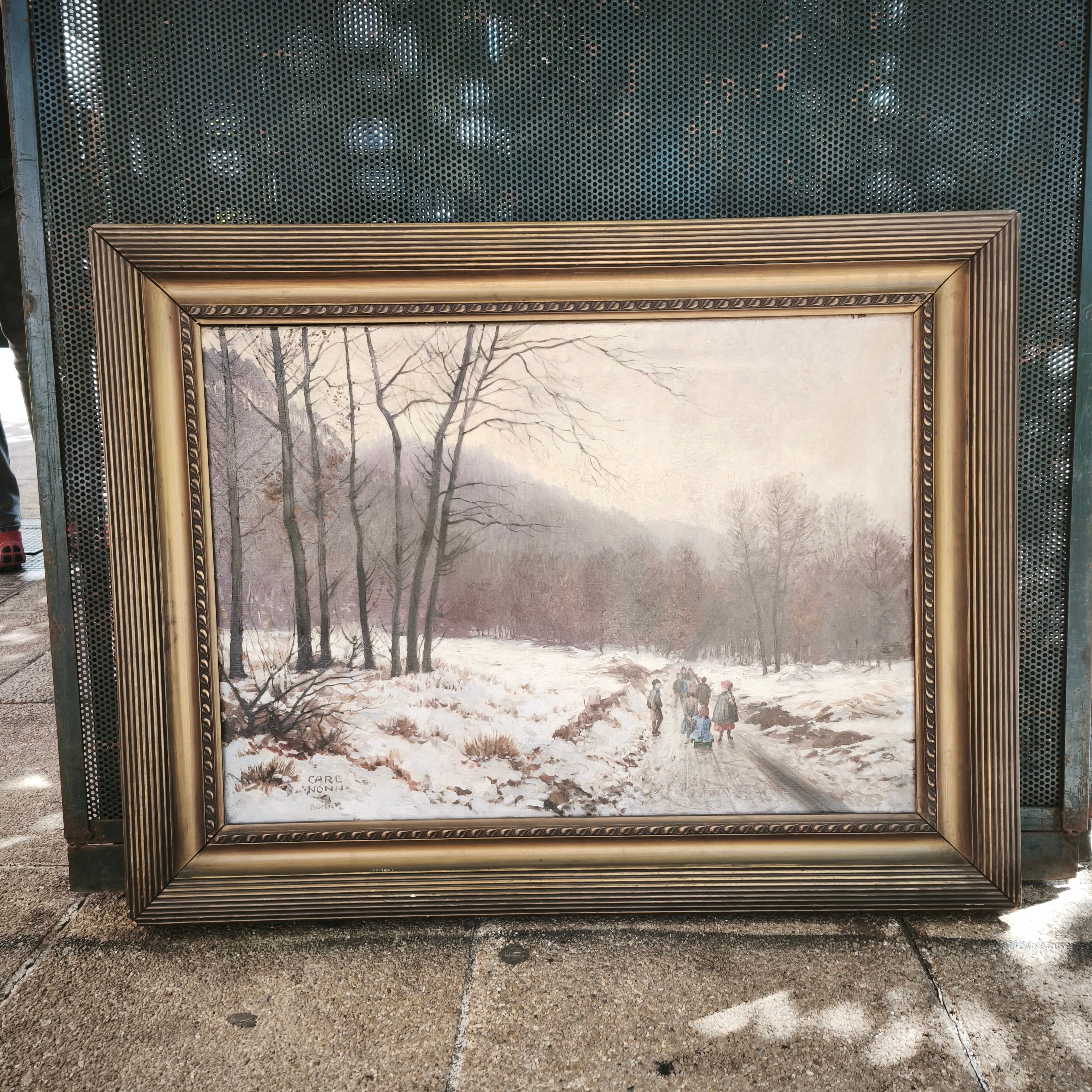 Carl Nonn Bonn - Huile sur toile 'Enfants sur un traîneau'