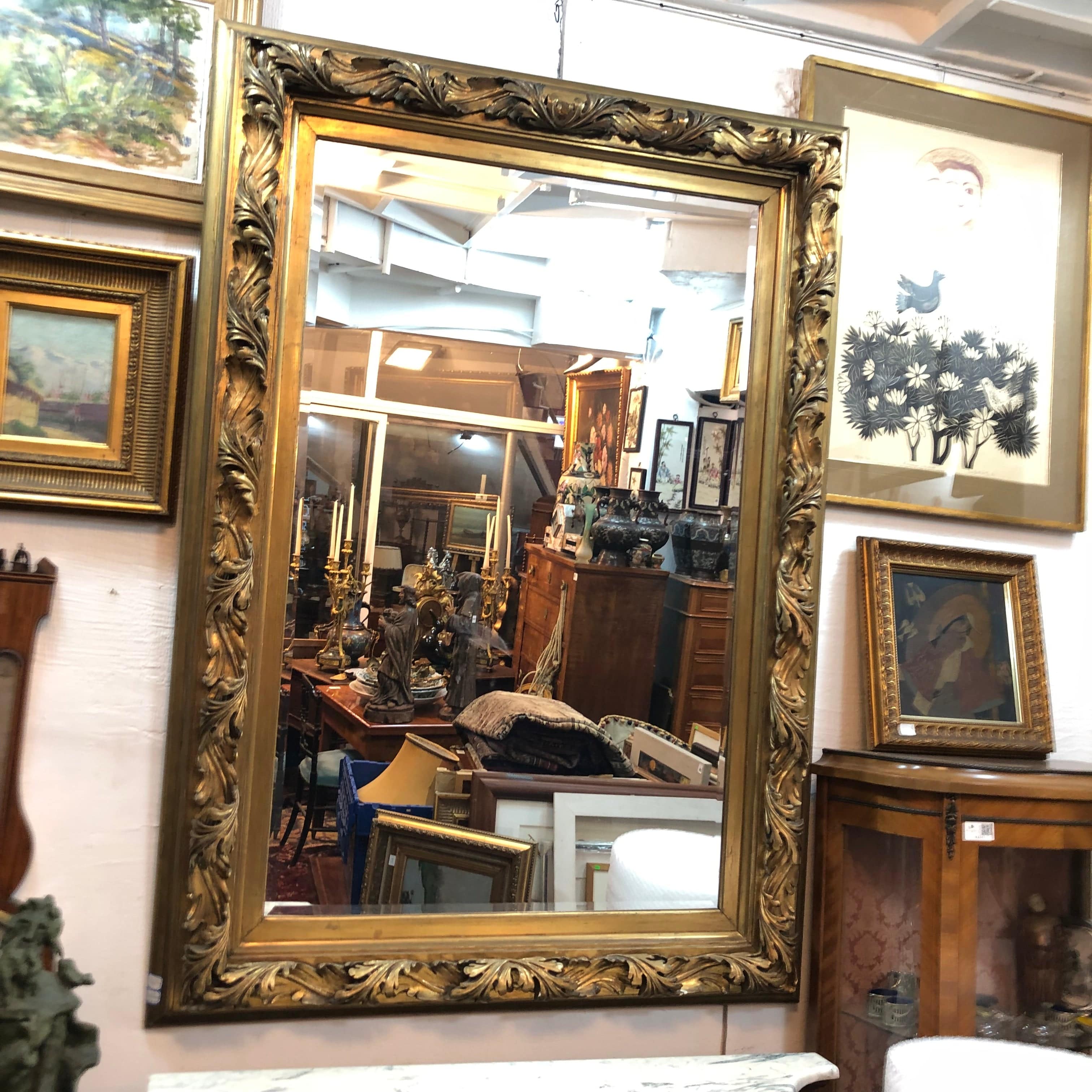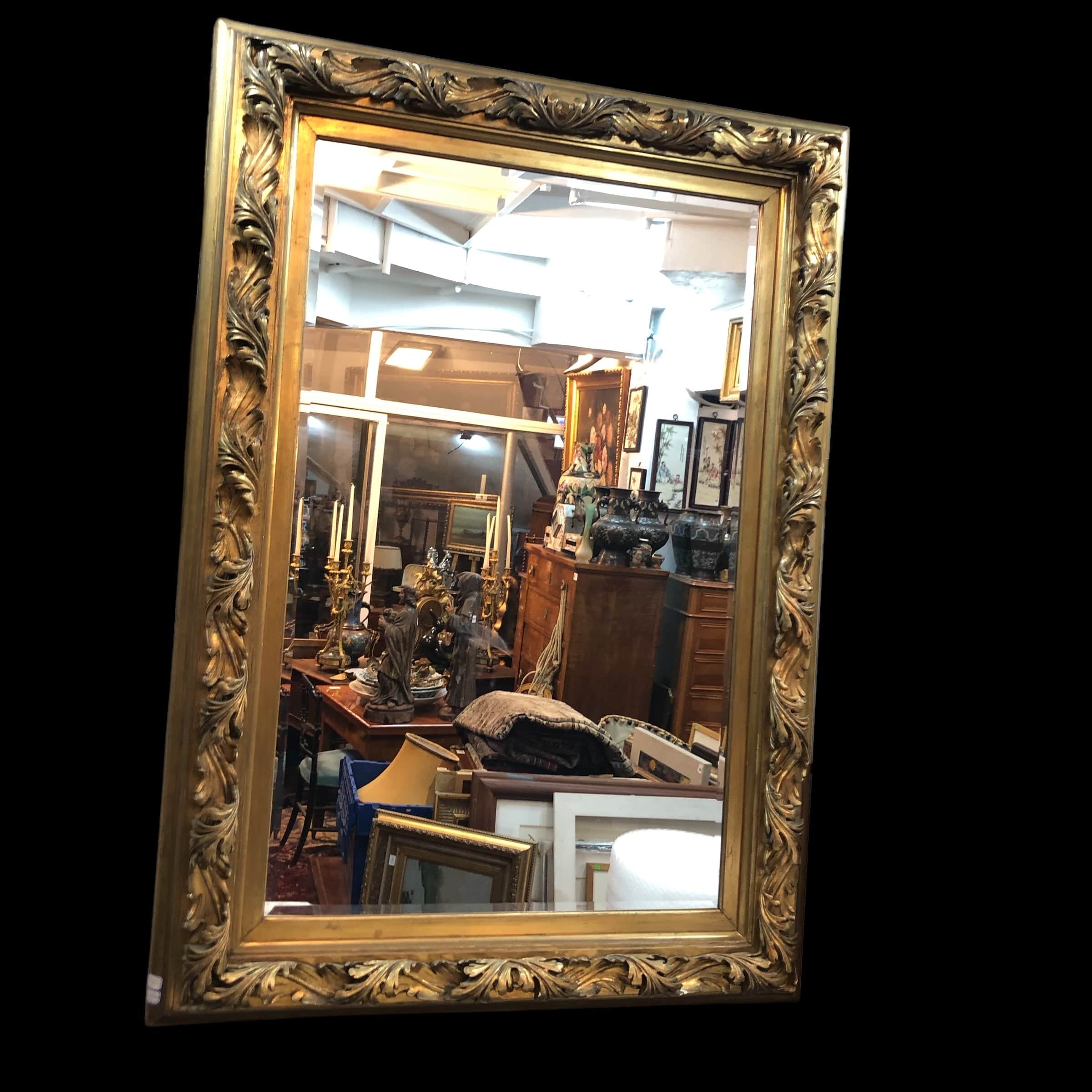 Grand miroir dans un cadre en bois peint en or avec de belles sculptures.