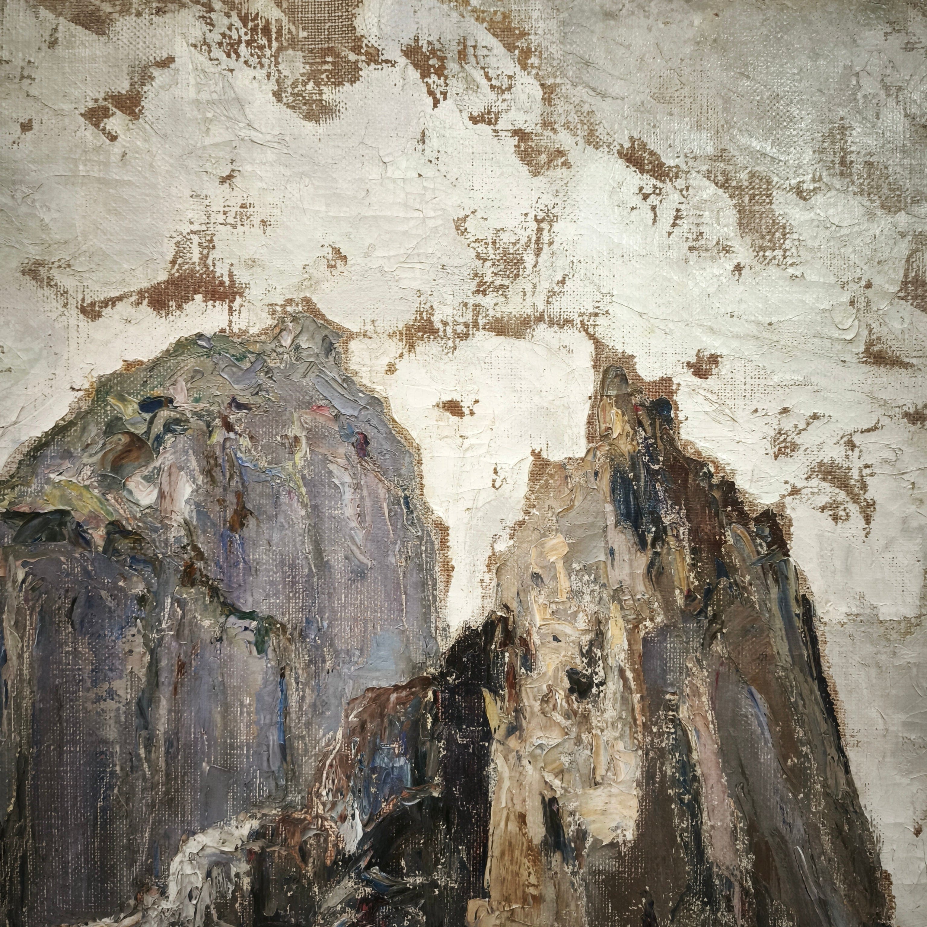 Luis Strozzi - Peinture à l'huile « La pierre de l'église »
