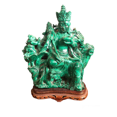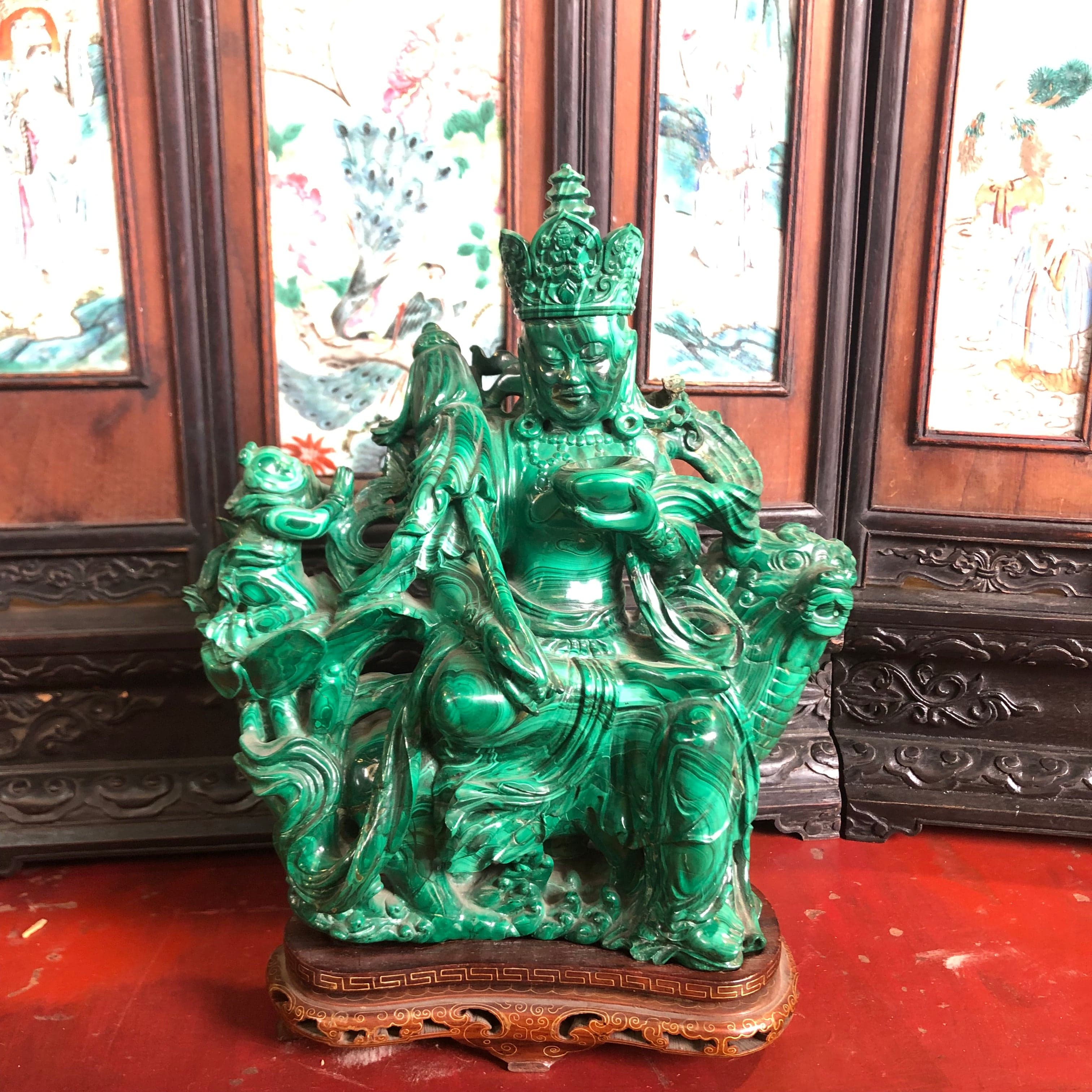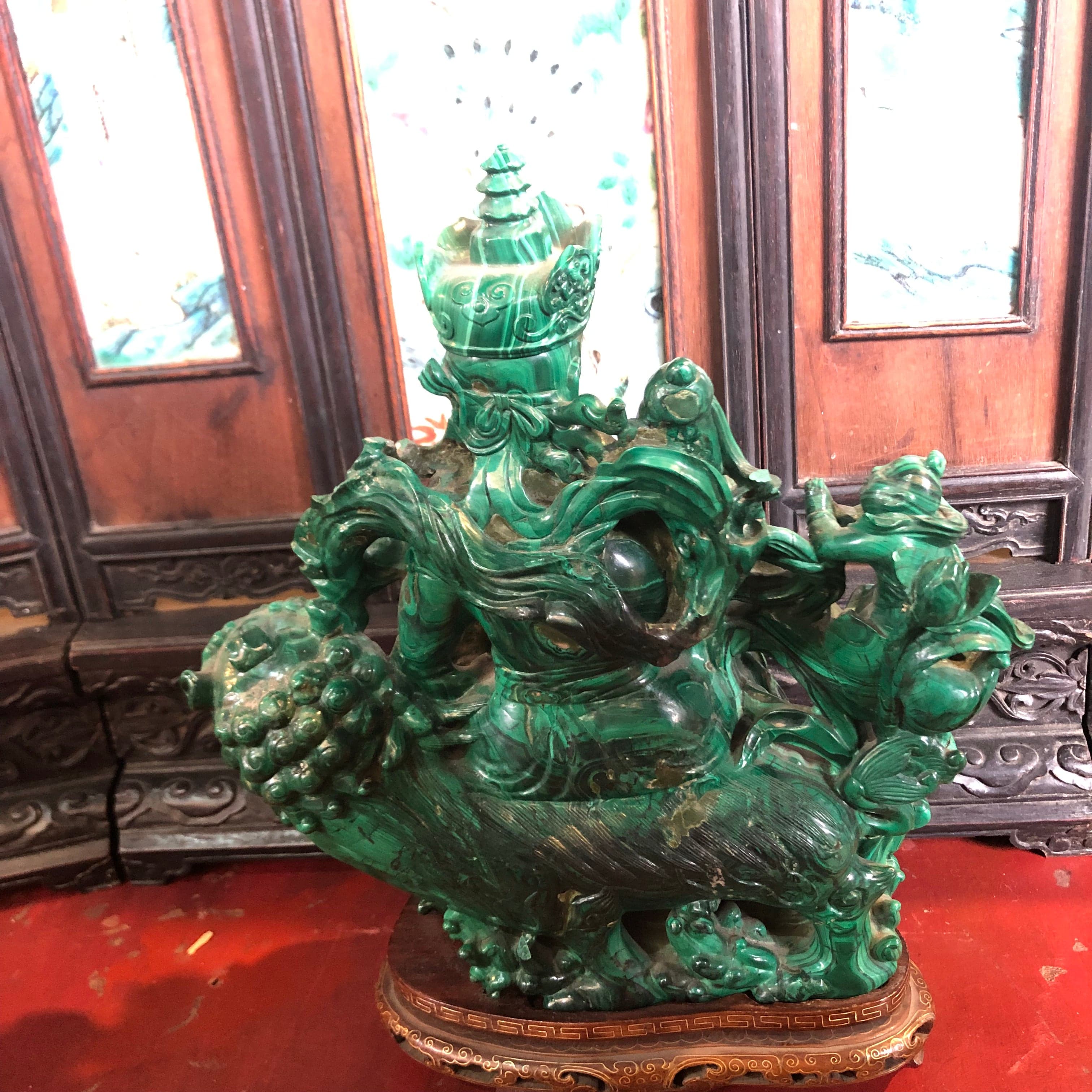 Belle figurine en pierre de malachite avec base en bois amovible.