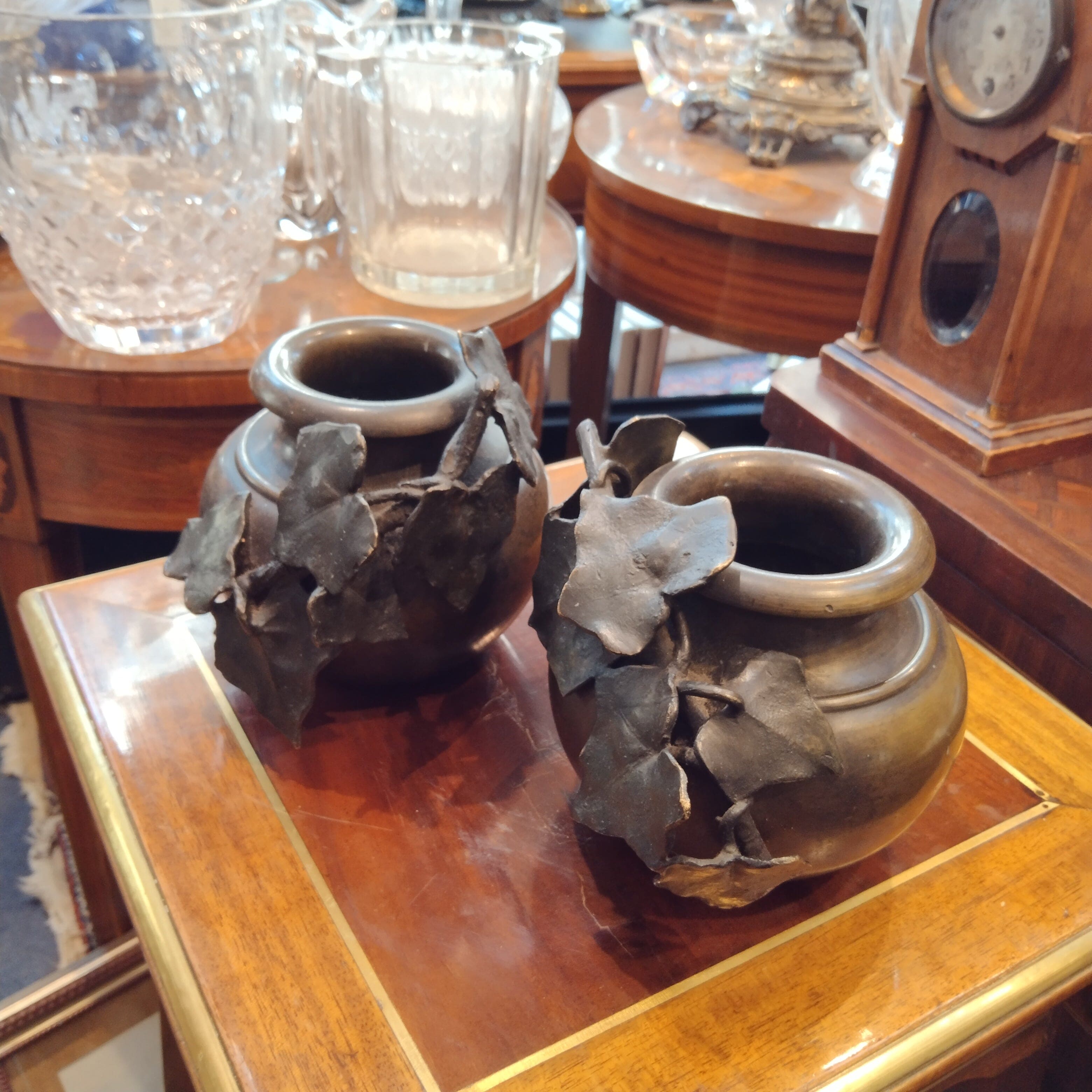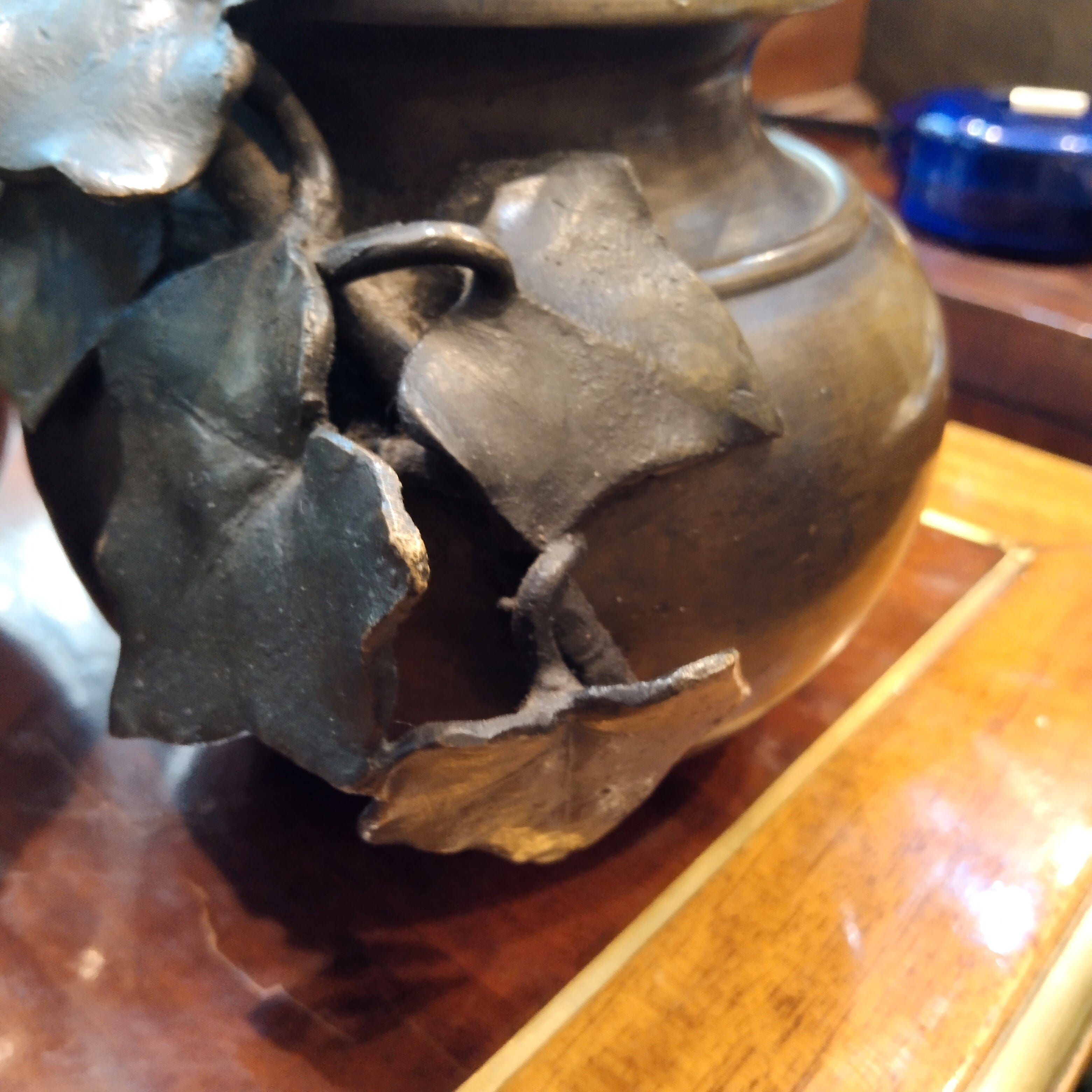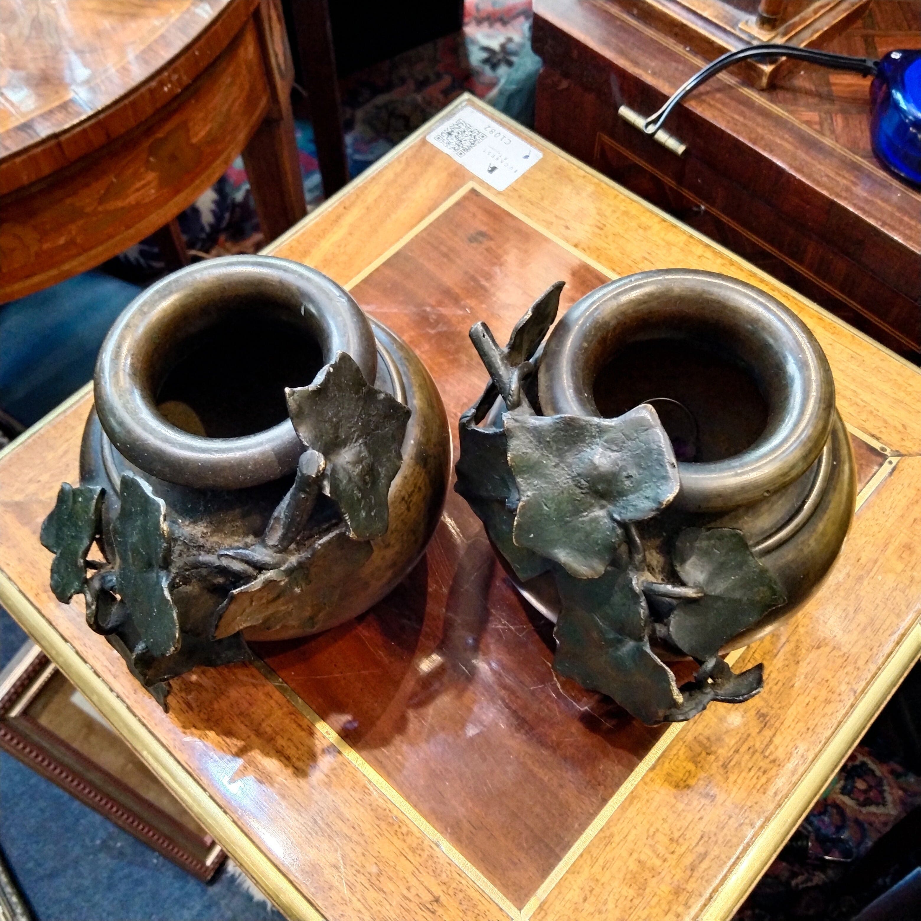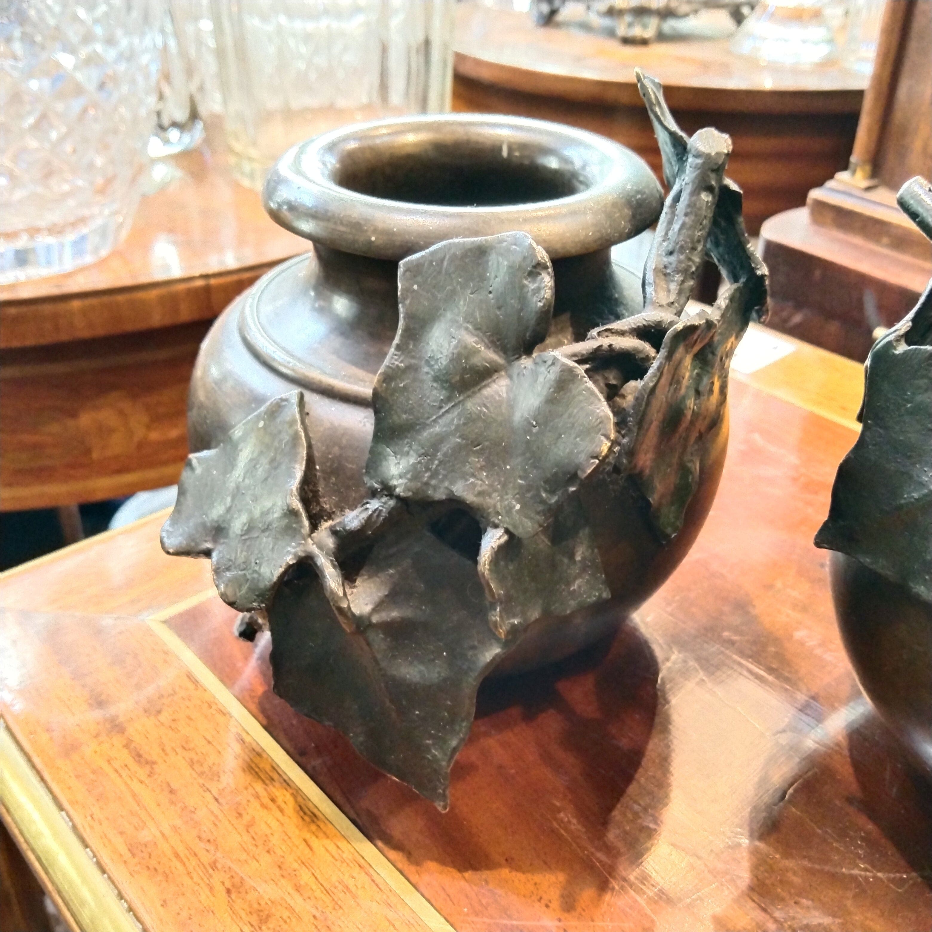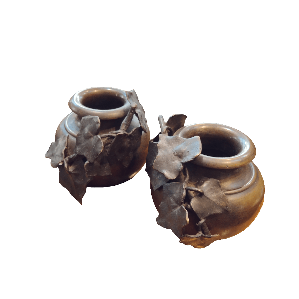 Sculptures en bronze représentant des fonds d'argile chiliens typiques, avec de beaux détails de vigne parcourant leur surface.