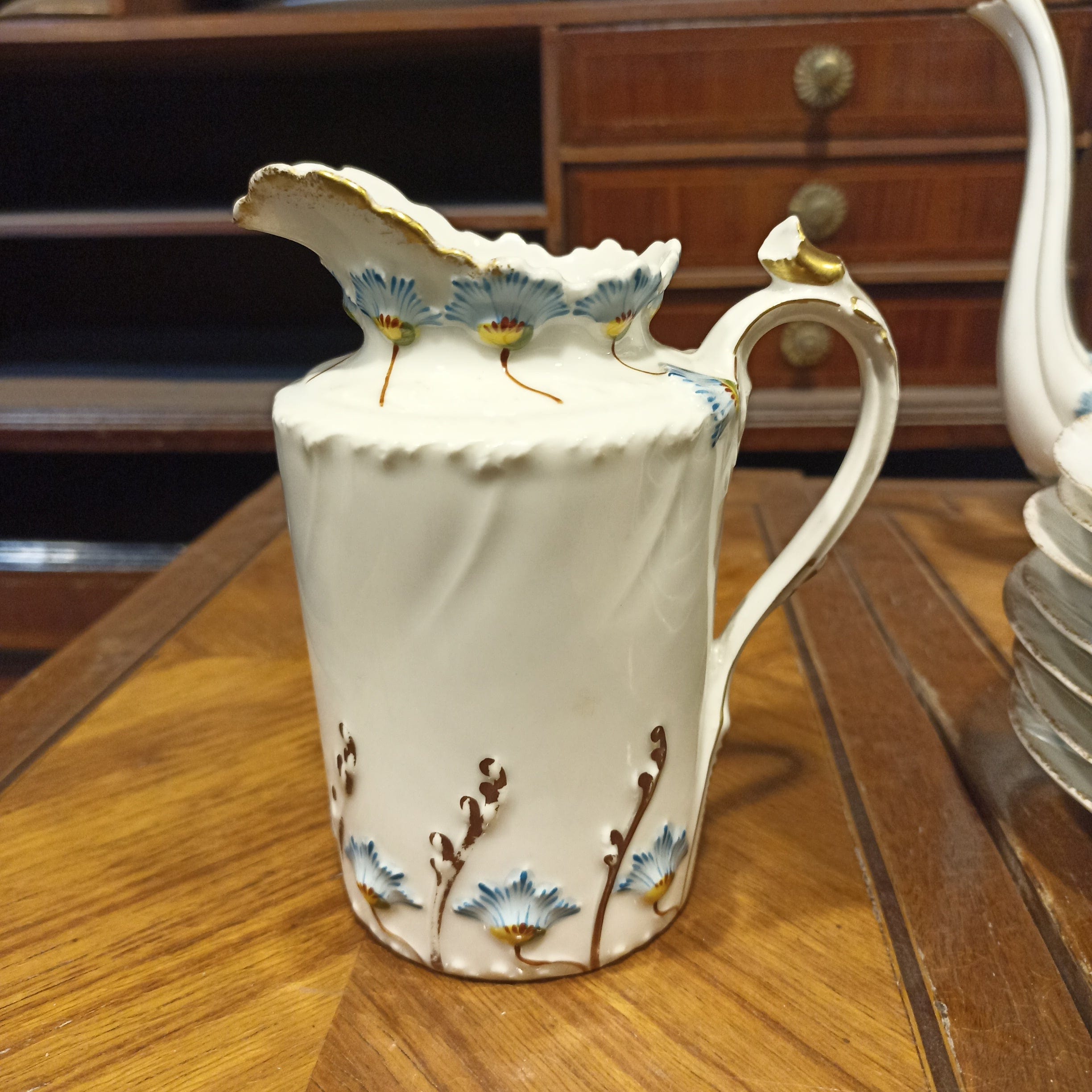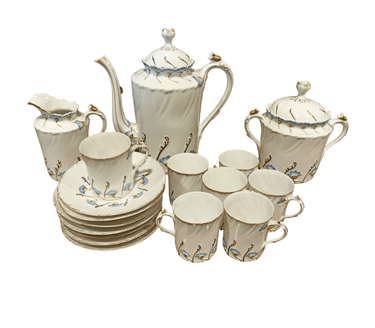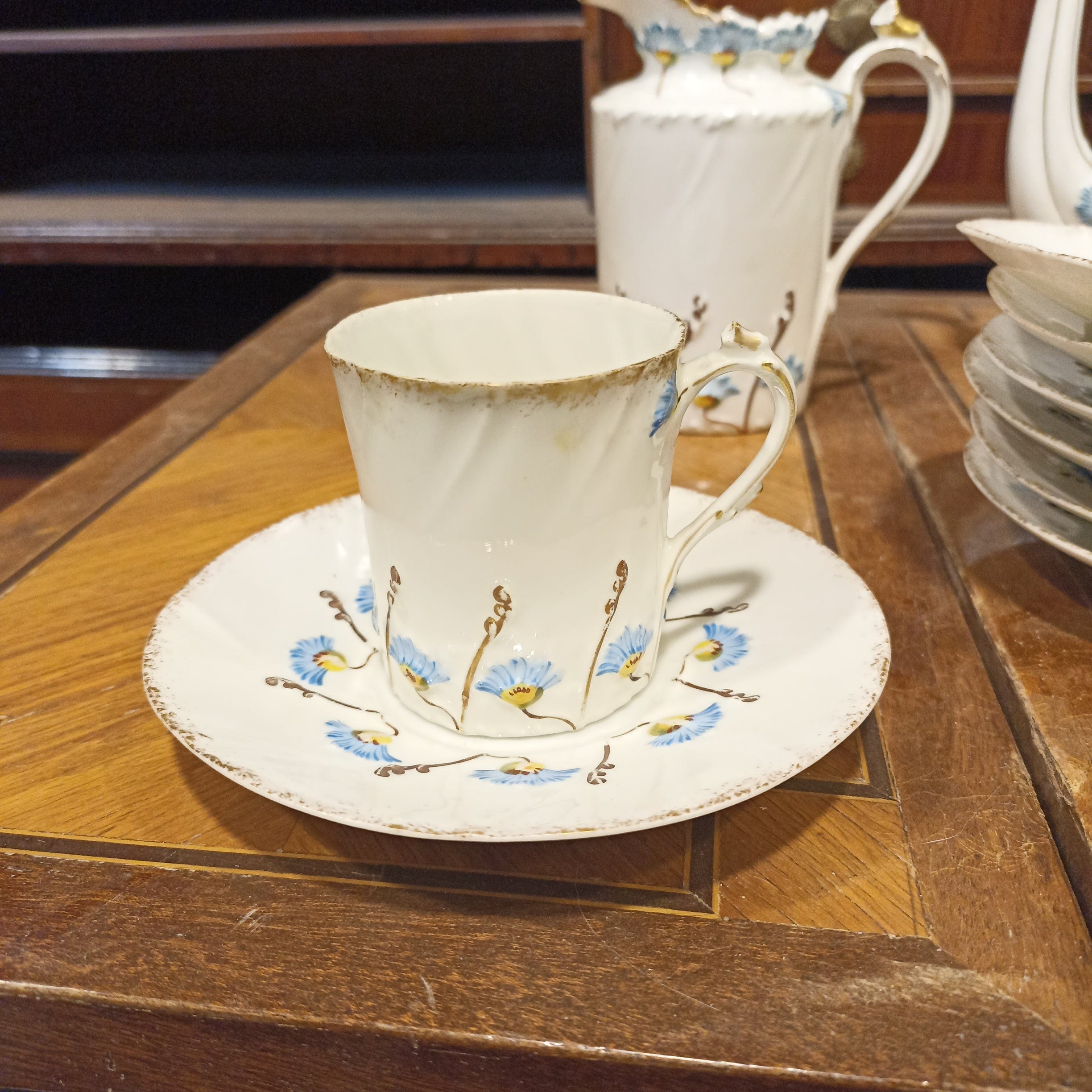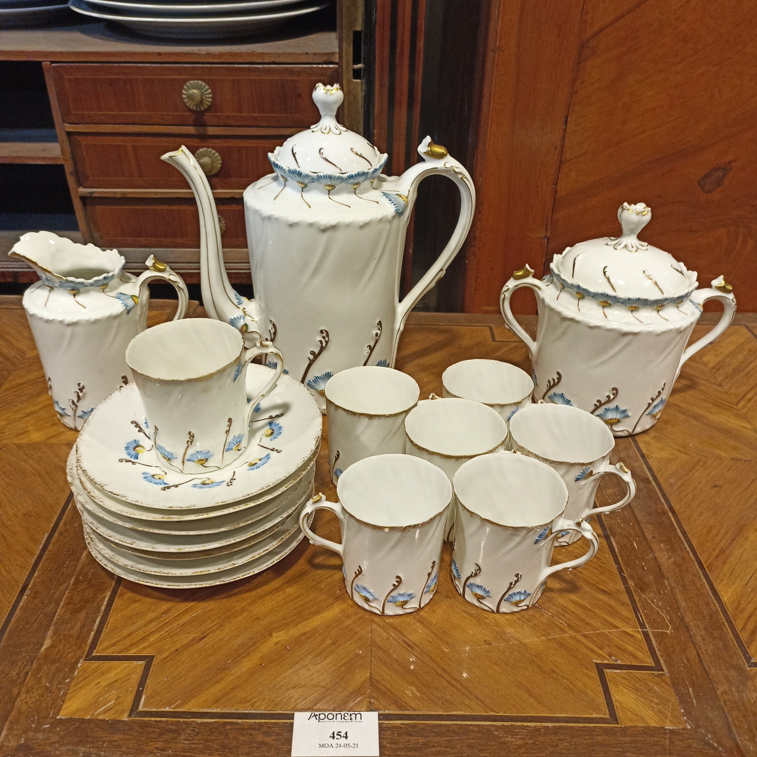 Magnifique service à café en porcelaine de Limoges pour sept personnes. Magnifiquement détaillé et décoré de motifs floraux.