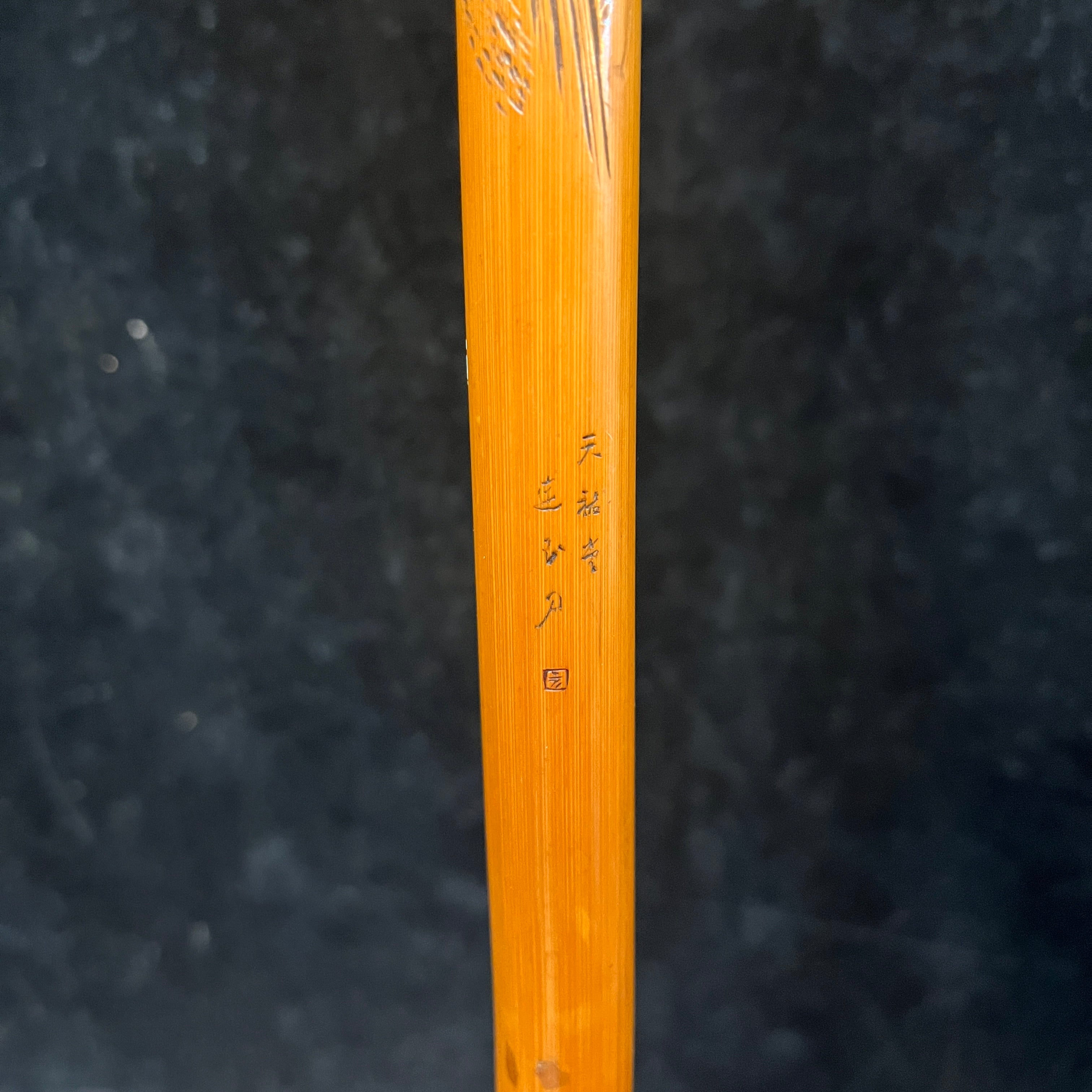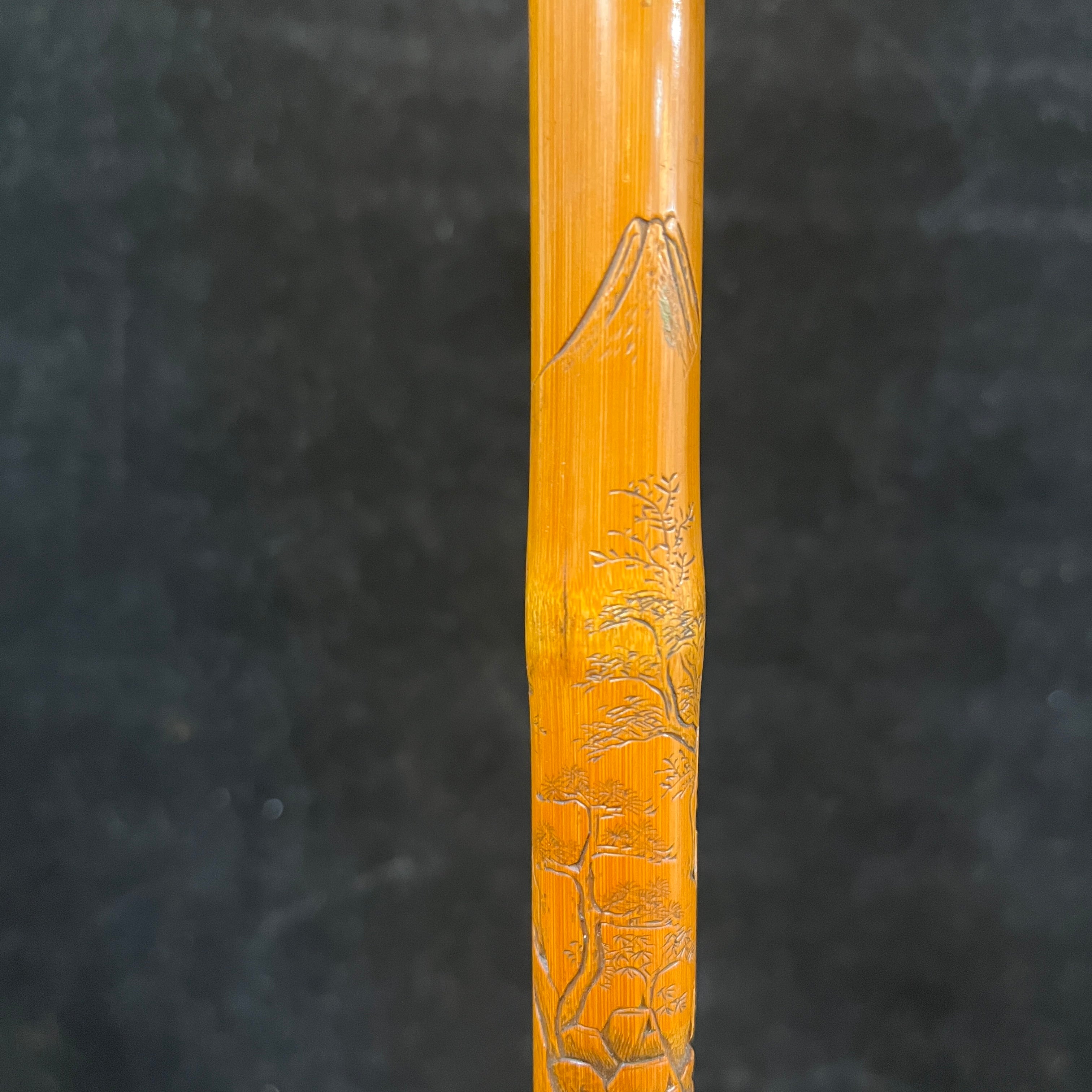 Bastón chino madera tallada paisajes montañas orientales