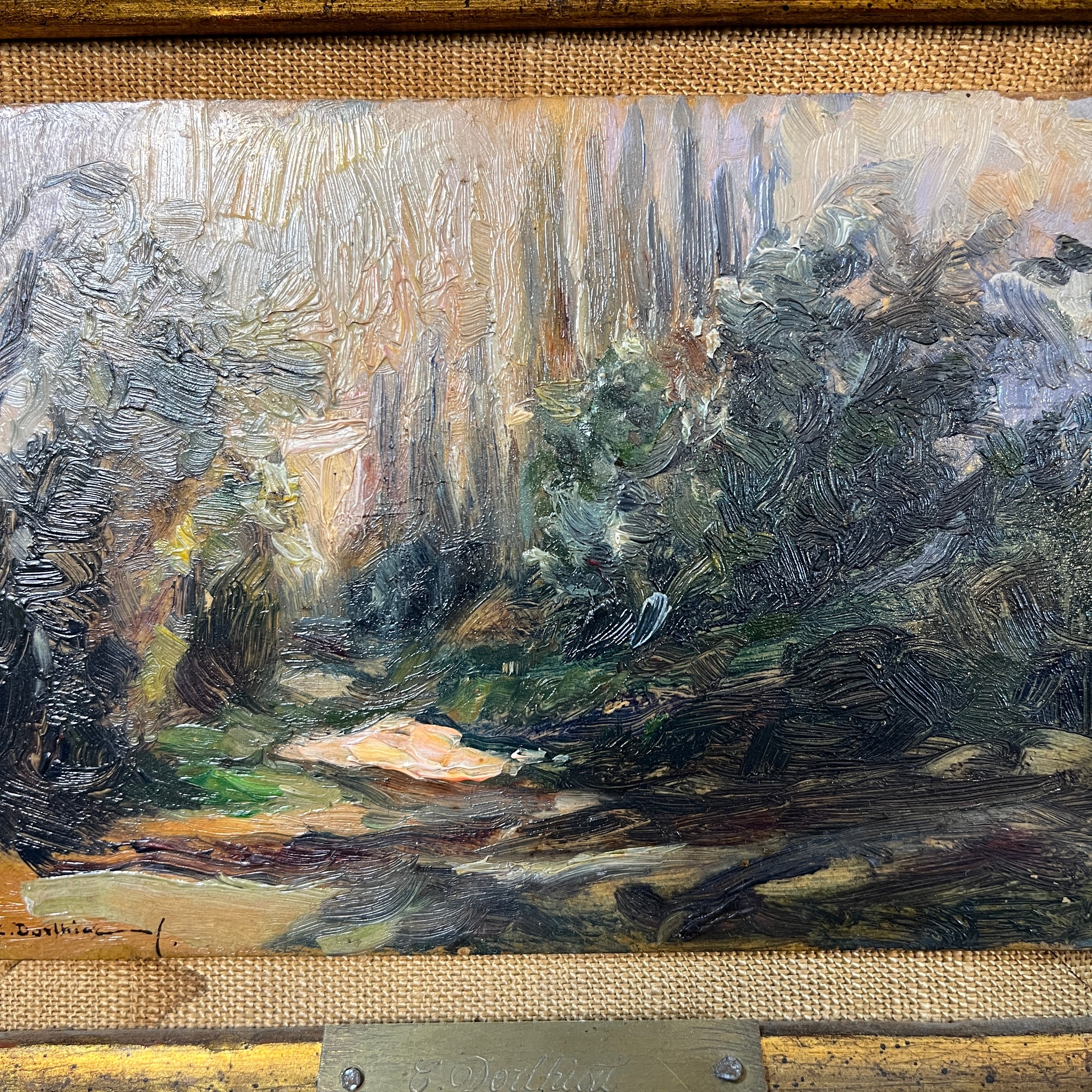 Hermoso cuadro del talentoso artista multidisciplinario Carlos Dorlhiac (1880-1973). El paisaje caracterizado por su luminosidad y pinceladas sueltas y estucadas. Detalles en sombras y tonos naturales