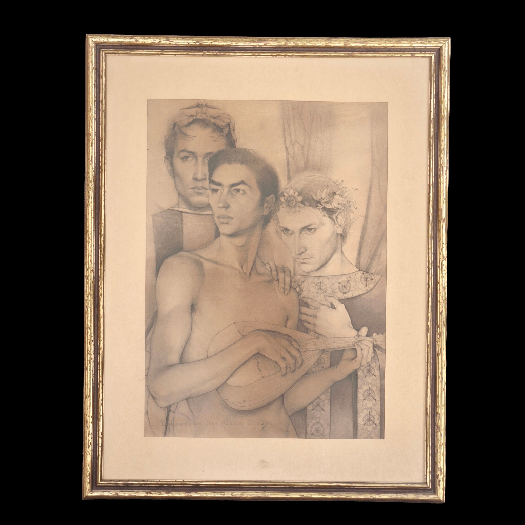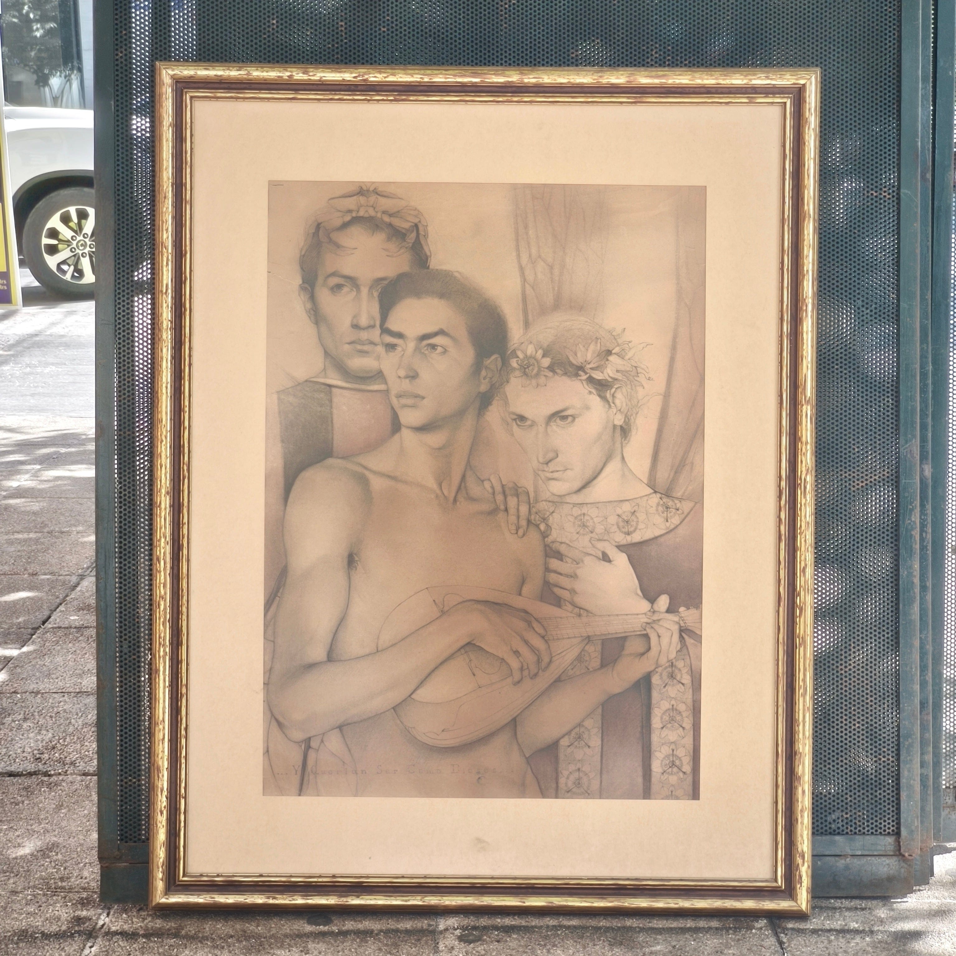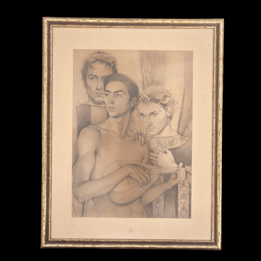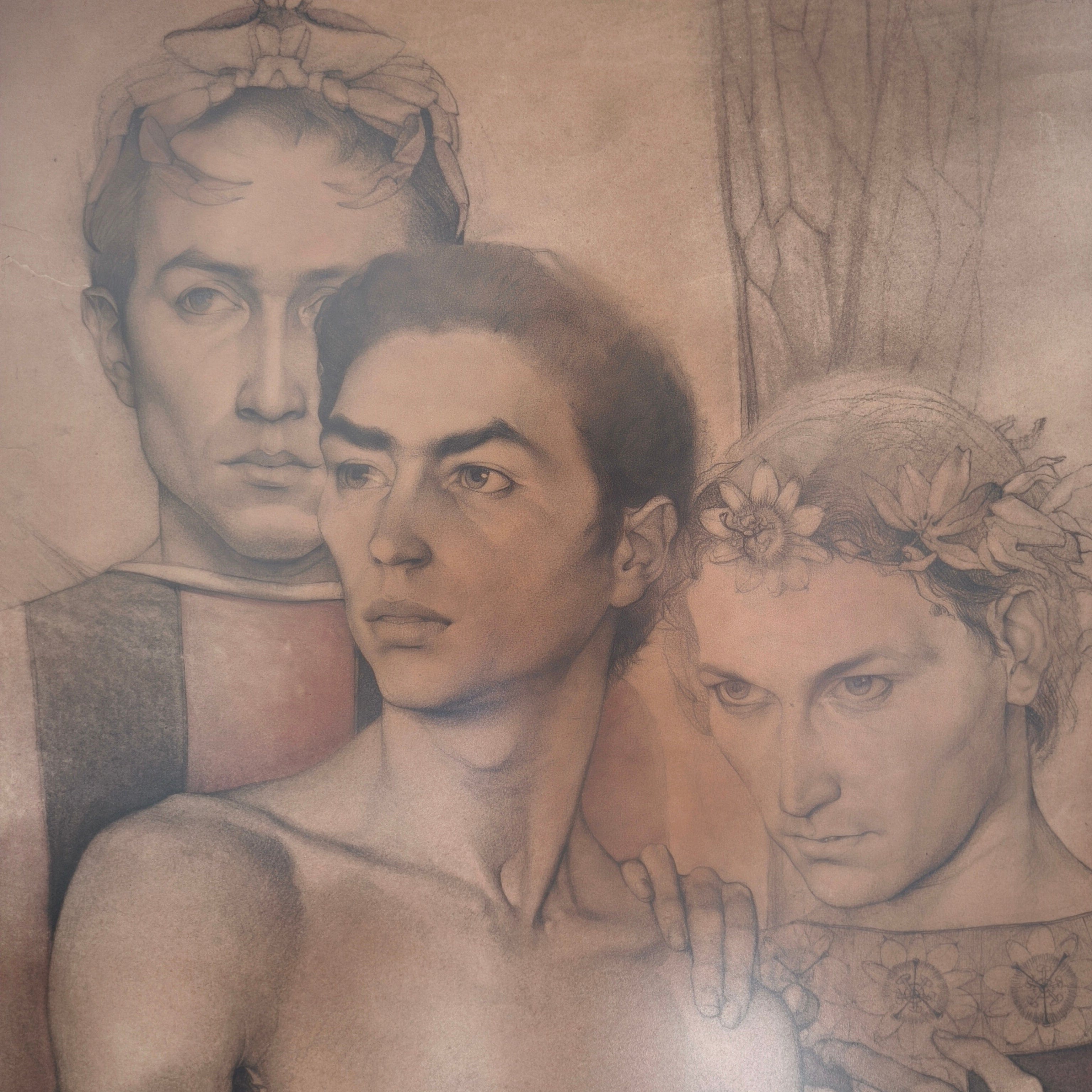Dans cette œuvre réalisée au crayon graphite, nous voyons un autoportrait de trois versions de l'artiste.