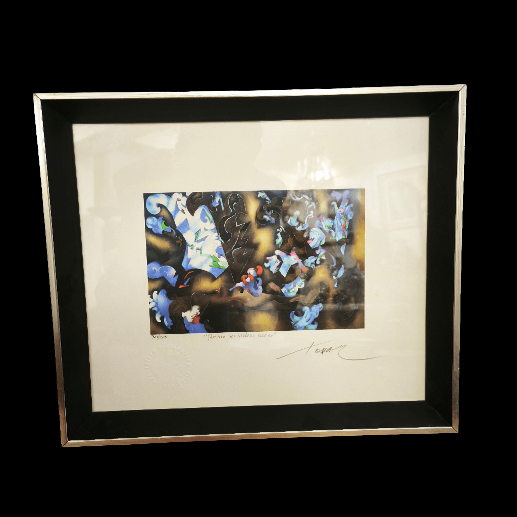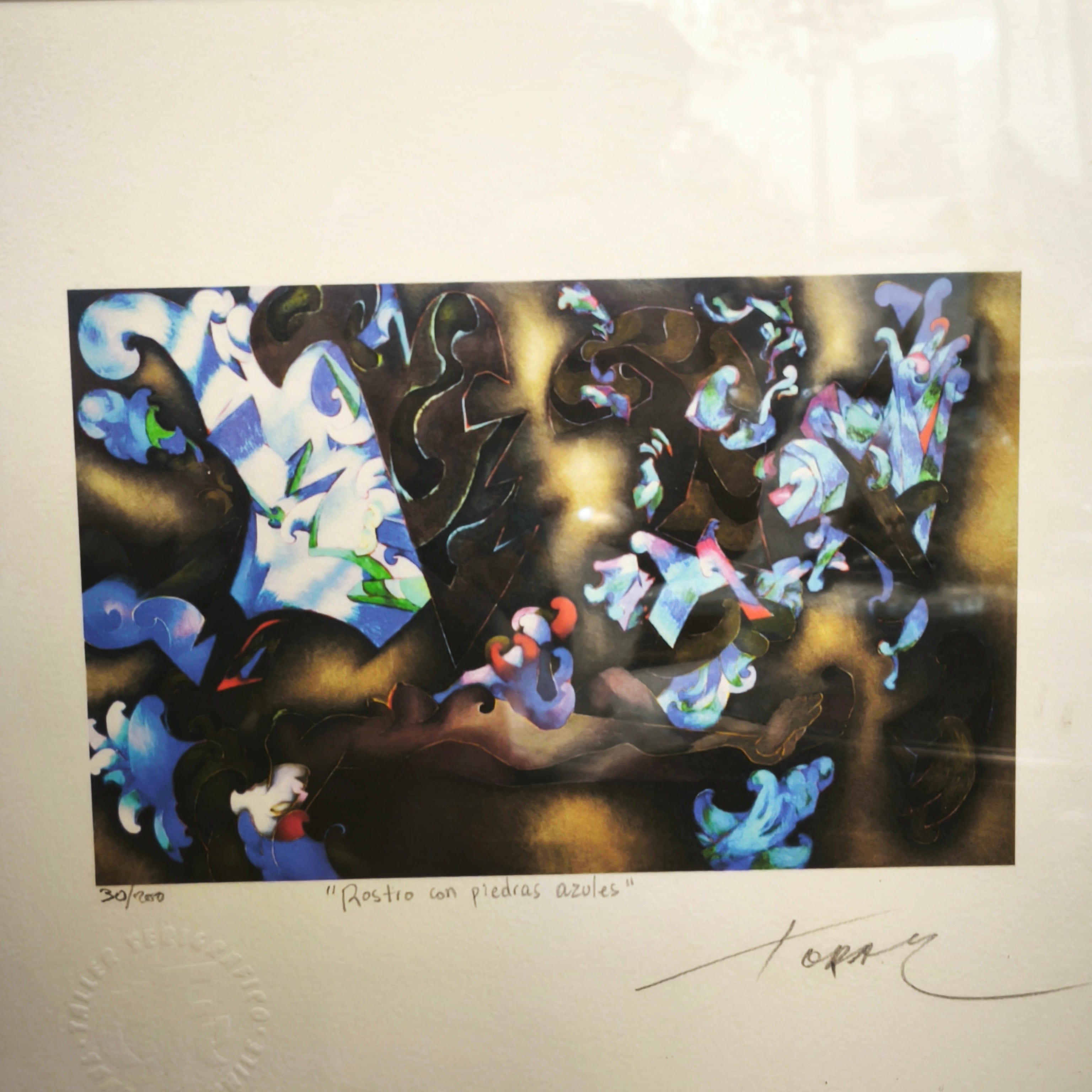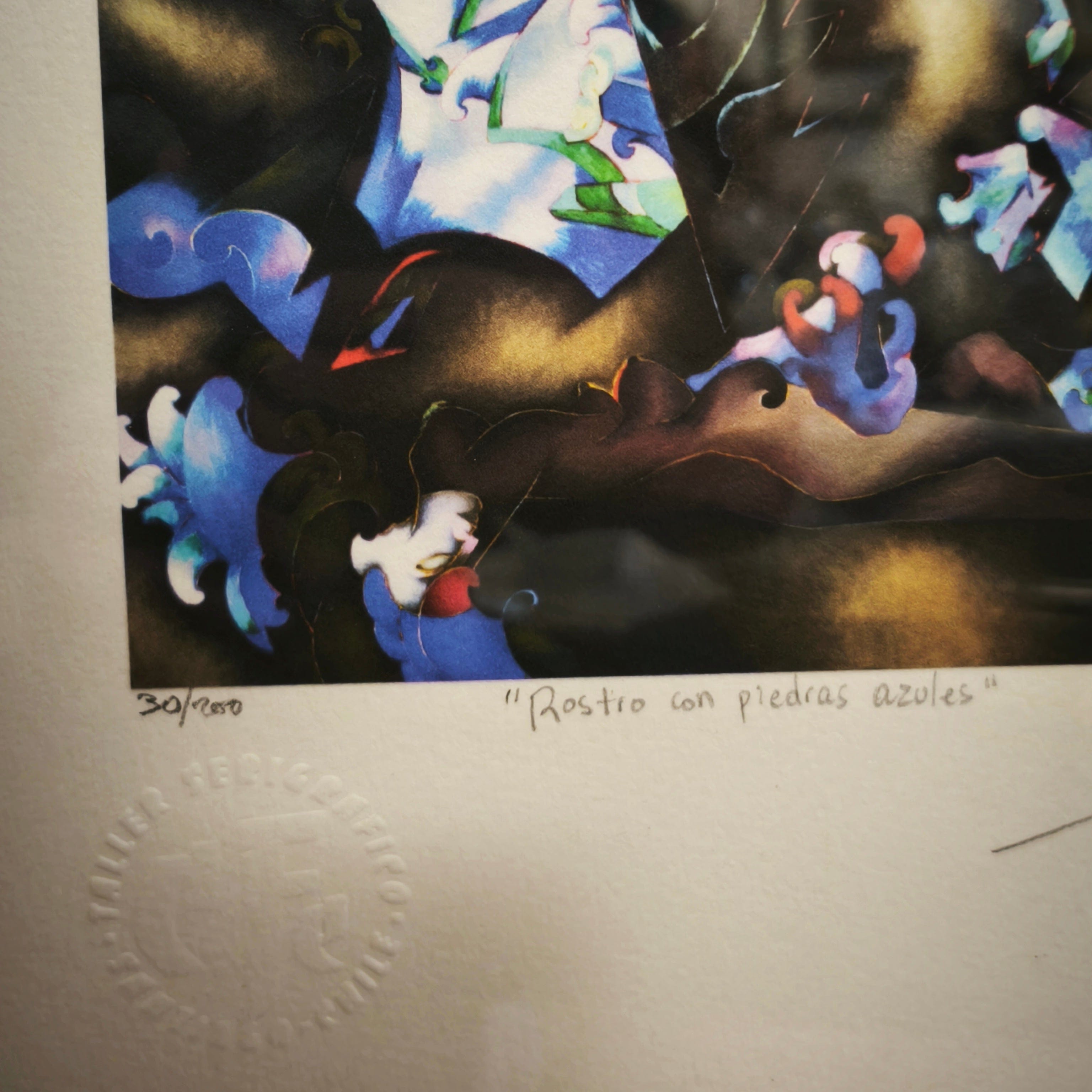Giclée intitulée « Visages aux pierres bleues » de l'artiste national de renom Mario Toral. Signée et numérotée.
