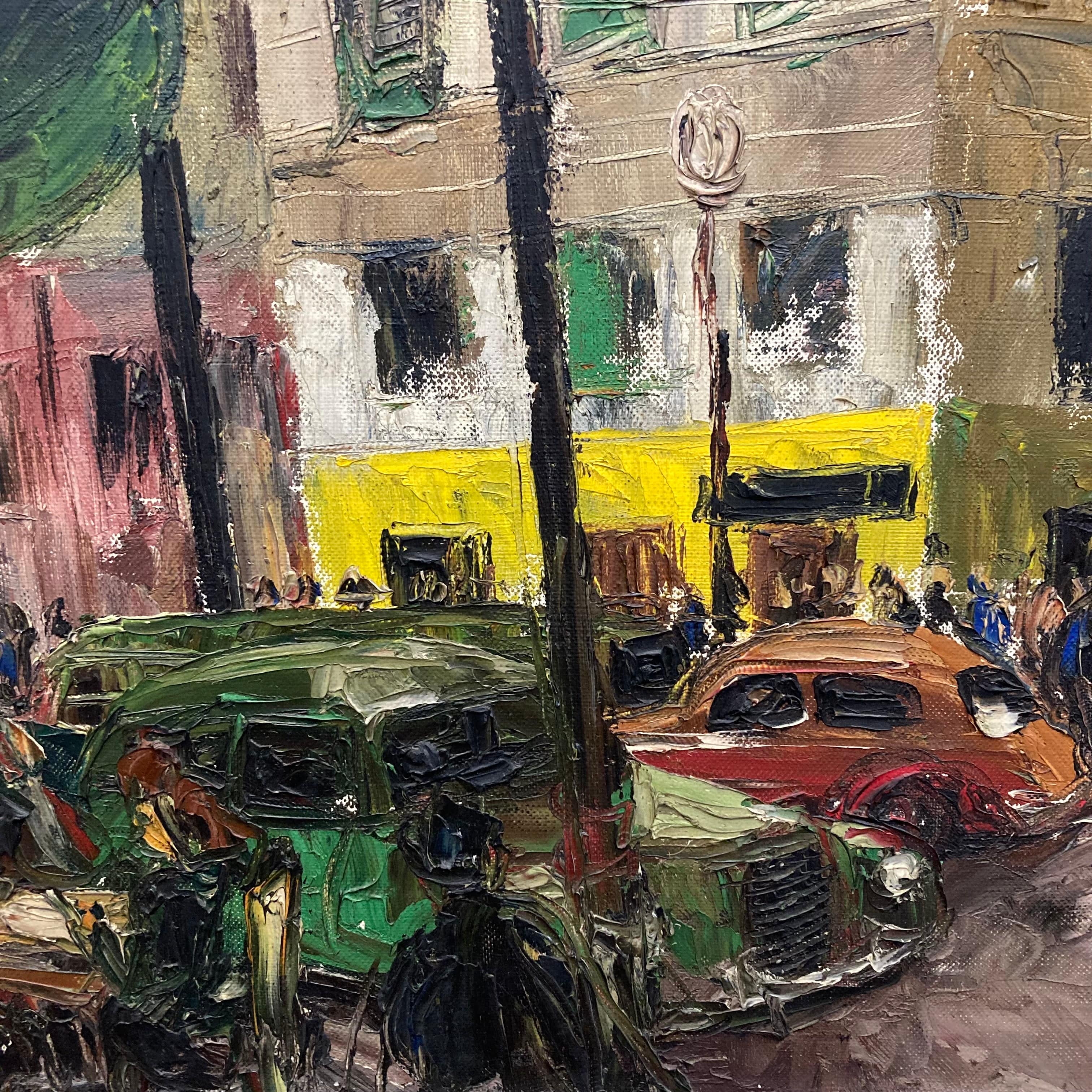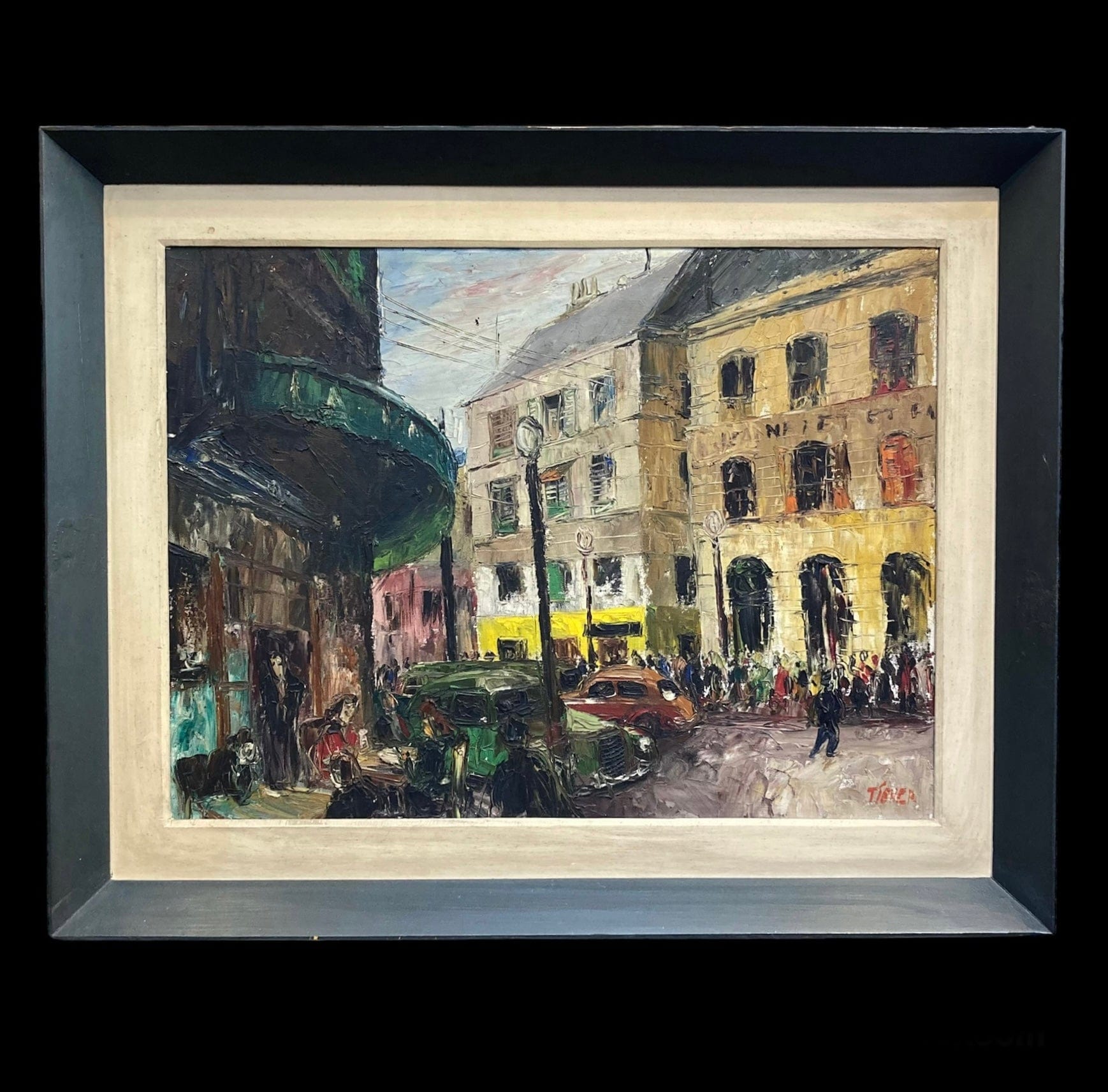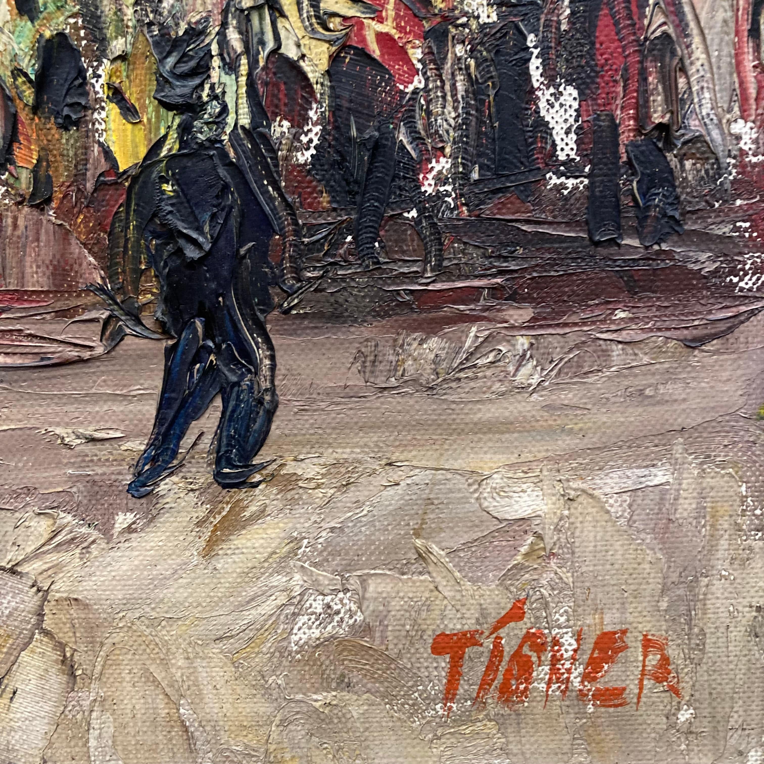 Huile sur toile du peintre Tigner. Le tableau représente un paysage urbain dans les rues de Paris.