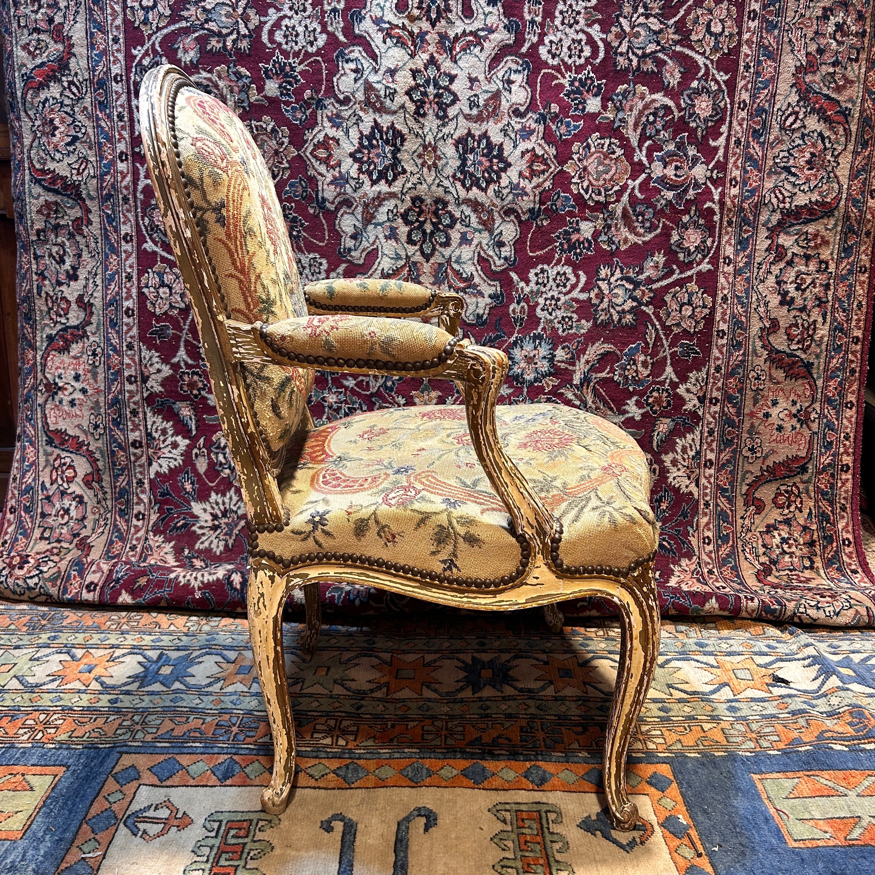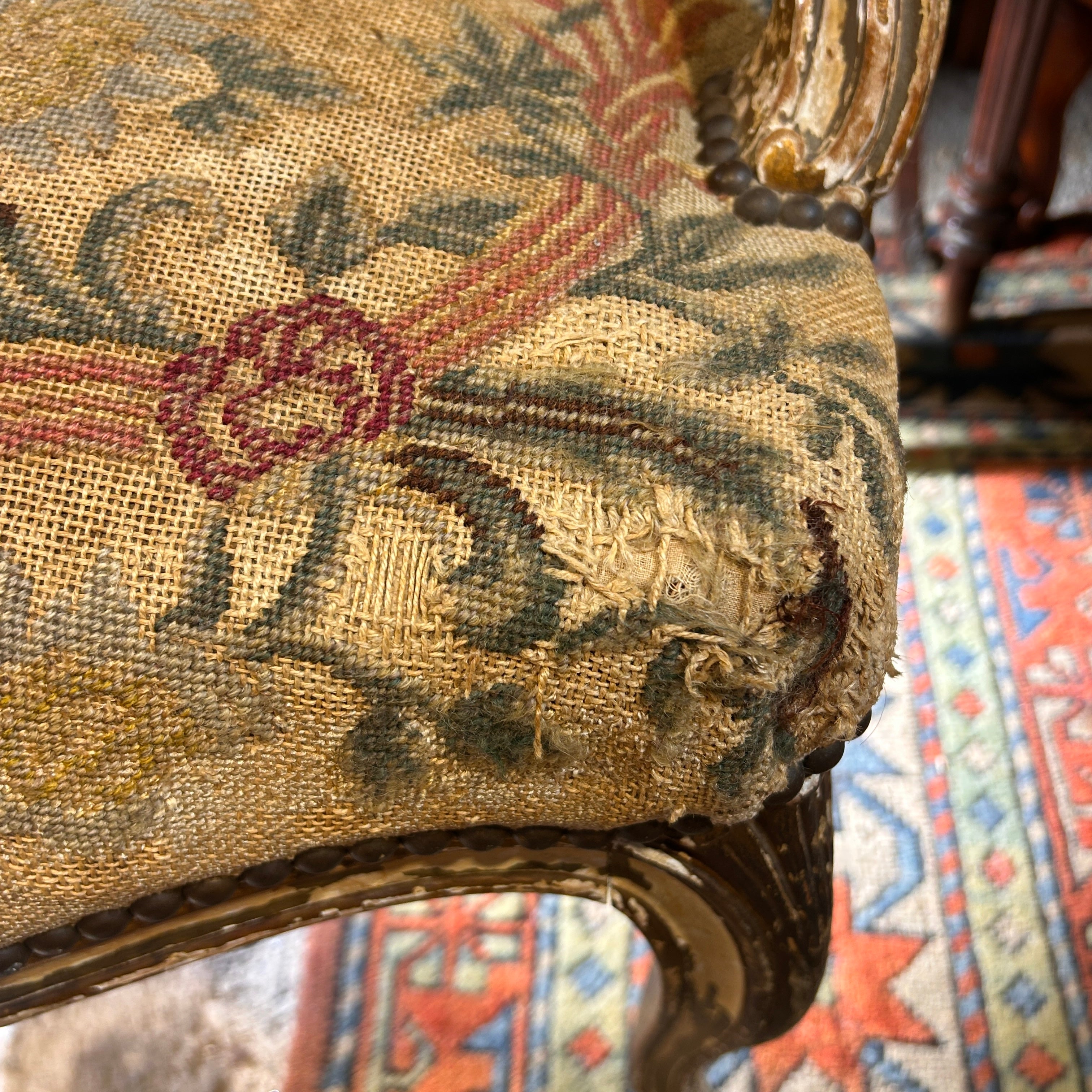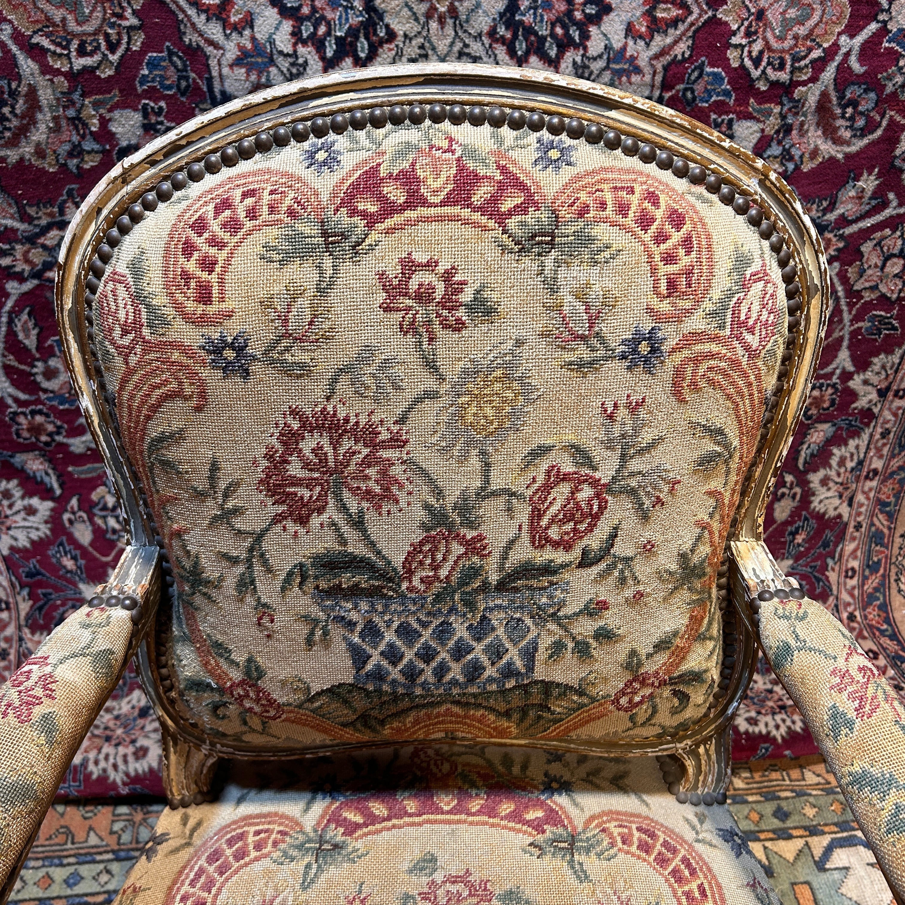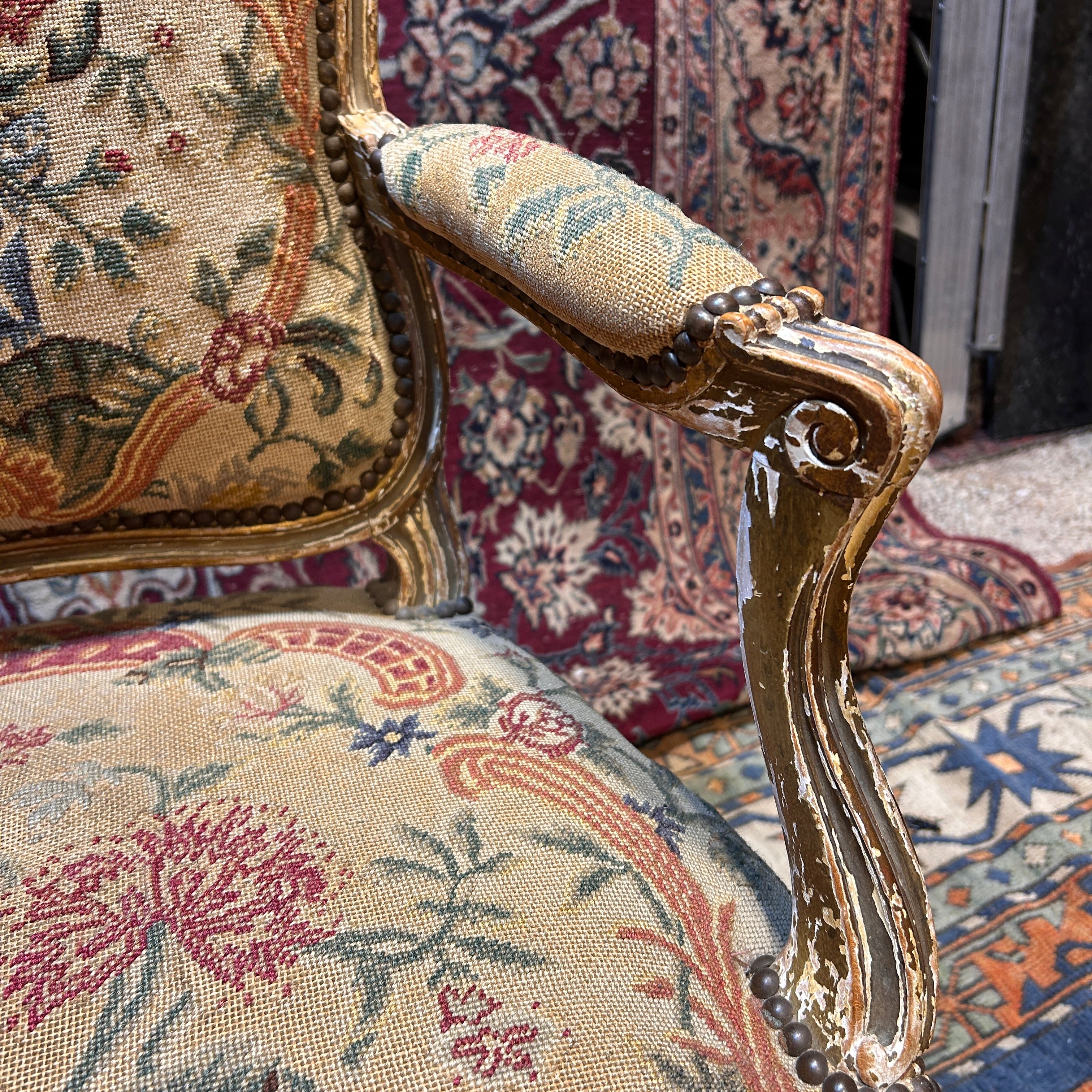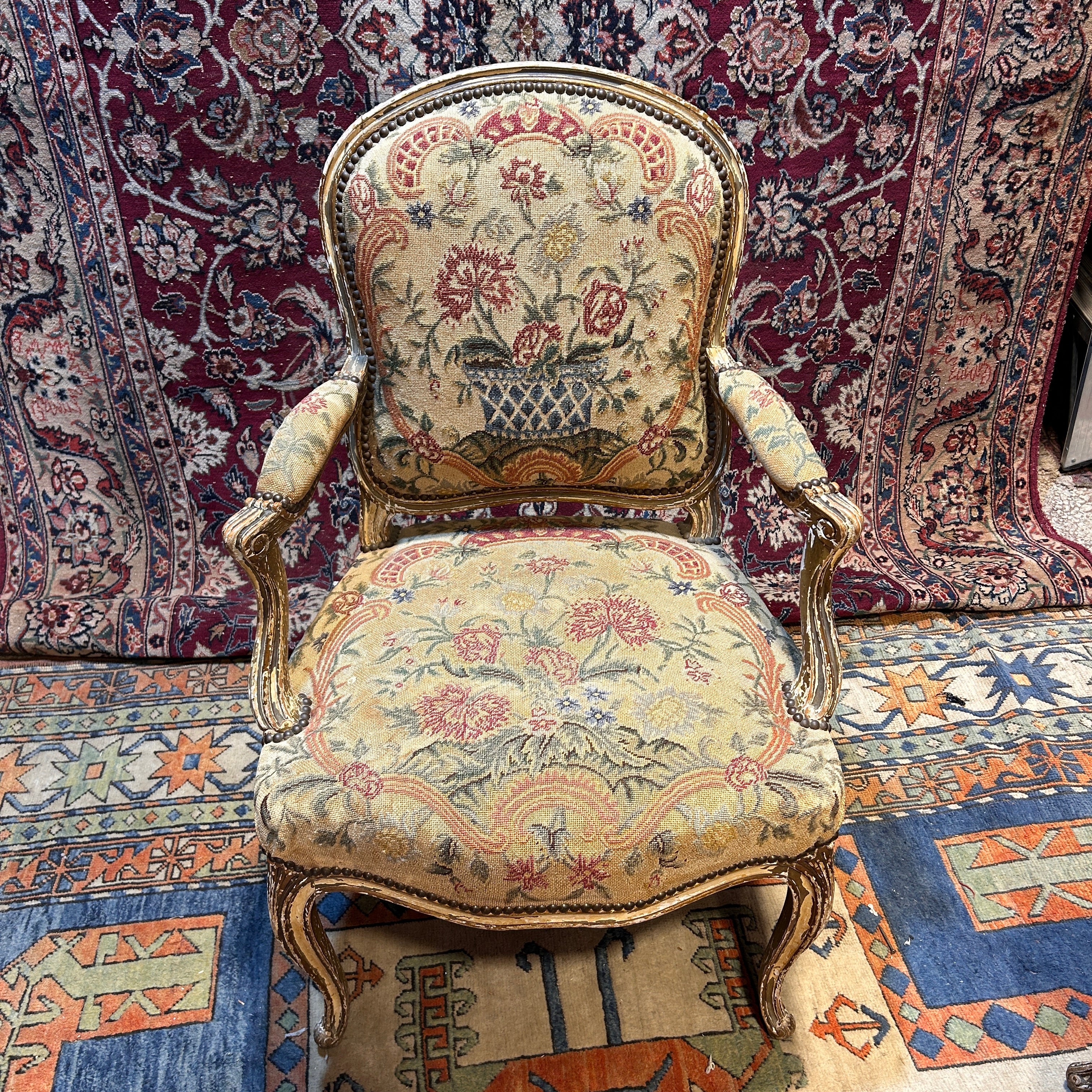 8 pieces Living room furniture in natural wood with floral decoration: sofa, corbeille-type chair (broken leg) and pair of cabriolets.