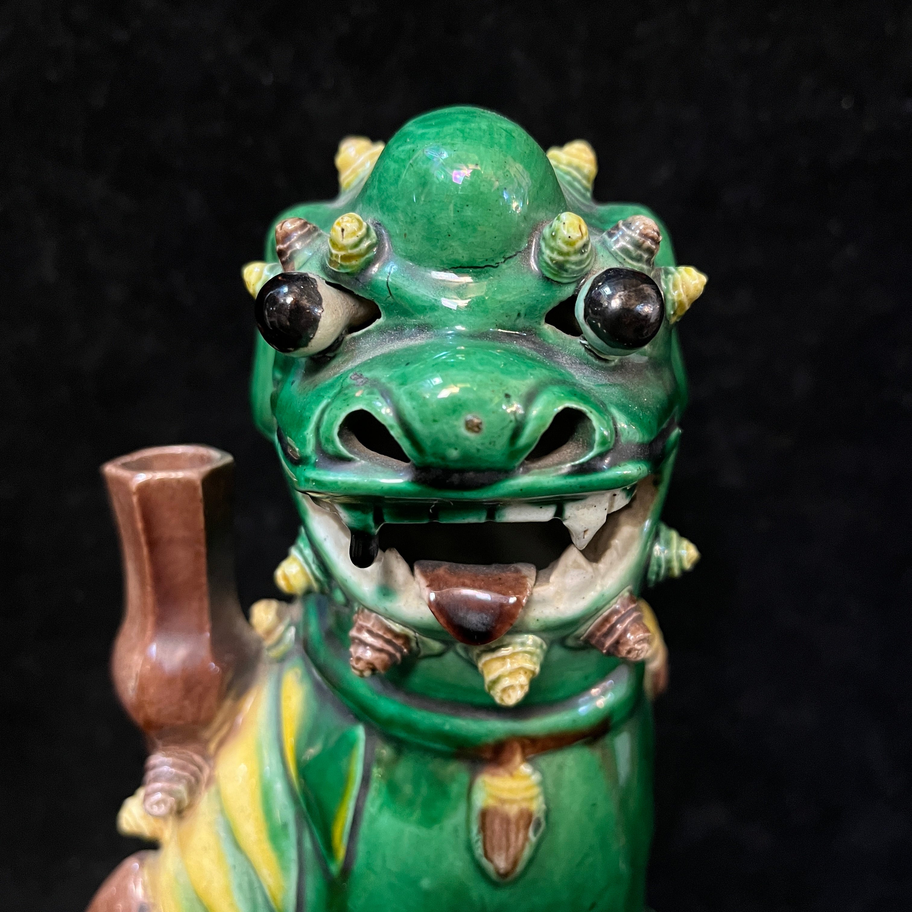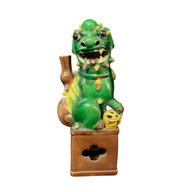 Hermosa figura mitológica china de tamaño medio de un clásico perro fu Verte, colocados habitualmente en las entradas de los hogares como símbolo de protección y para ahuyentar las malas energías.