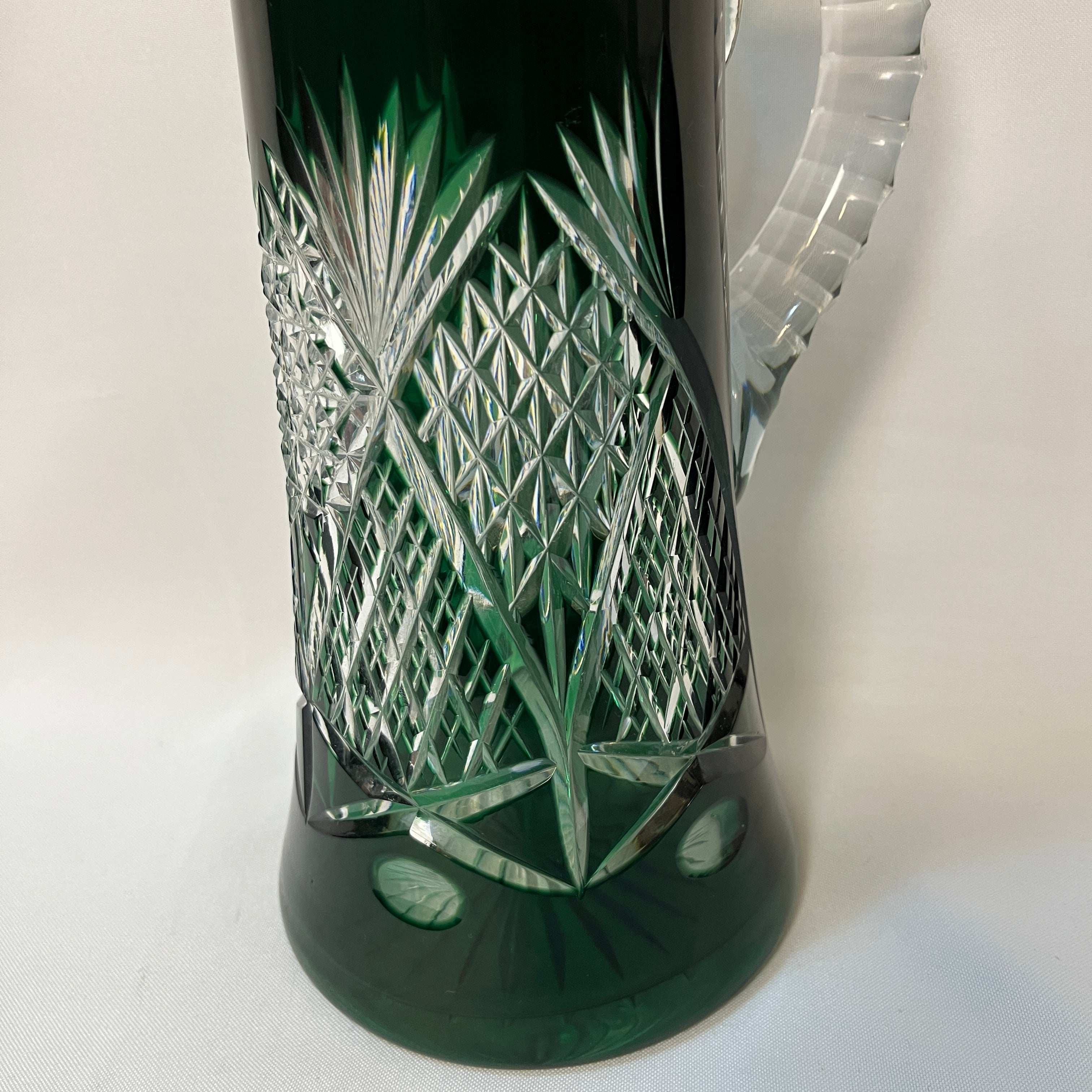 Jarra de cristal tallado verde esmeralda principio s. XX