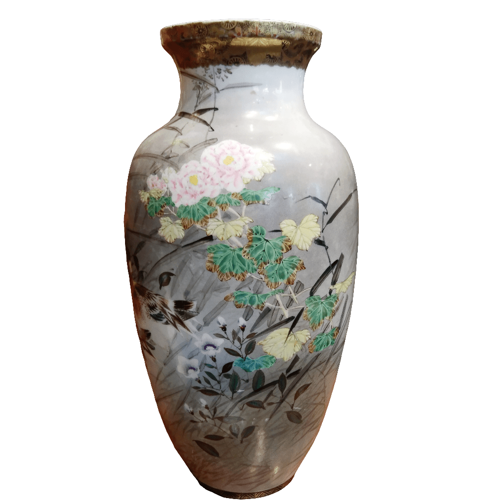 Vase en porcelaine japonaise à motifs floraux et canards