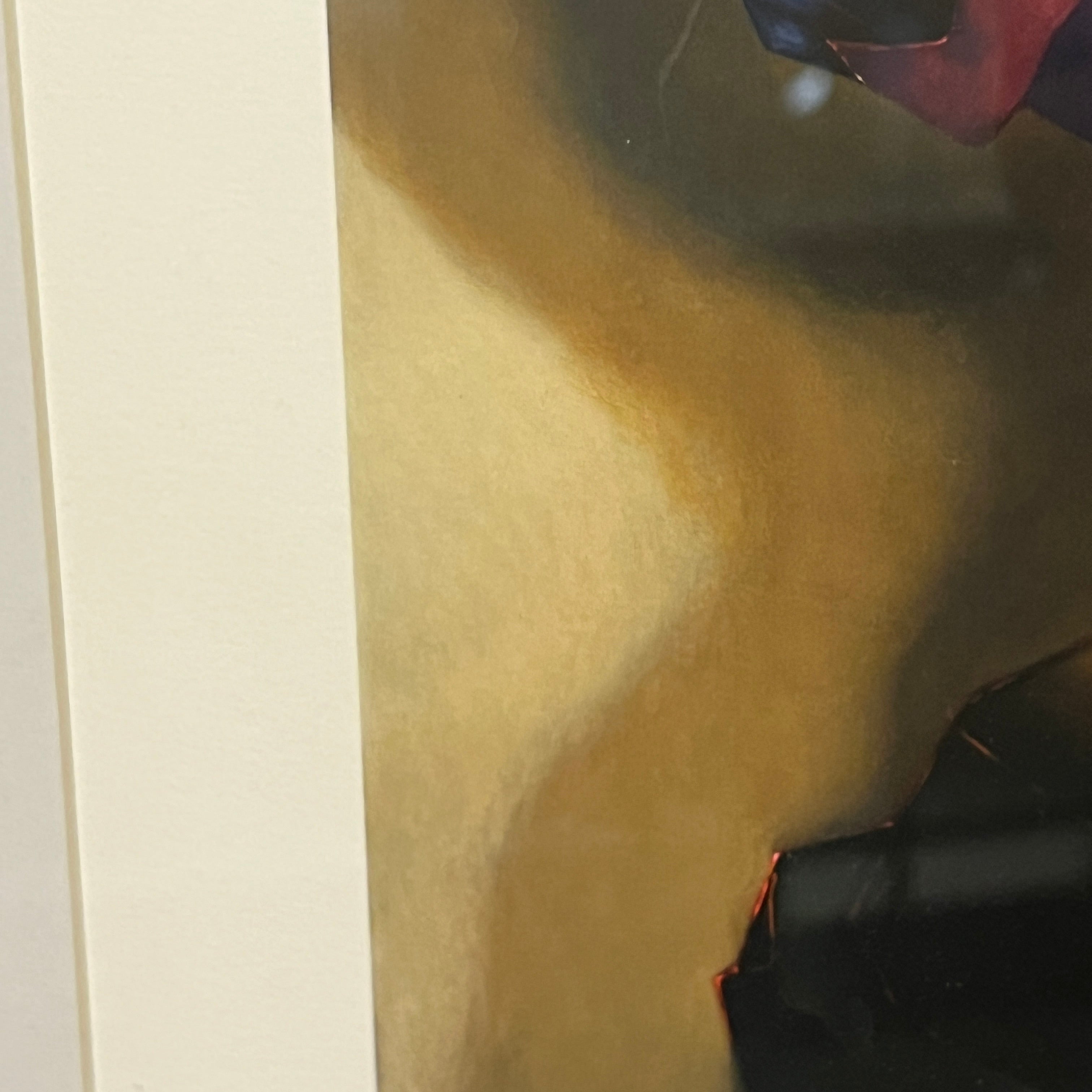 Grabado digital en técnica Giclée sobre papel de algodón, del reconocido artista nacional Mario Toral titulada ‘Mujer con cabellera azul’. Firmada a mano y numerado. Ejemplar 185/200. La obra muestra el rostro de una mujer suspendido entre sus cabellos, que caen en diagonal por el cuadro, cambiando de tono y forma. La obra tiene un marco de madera de color plateado.