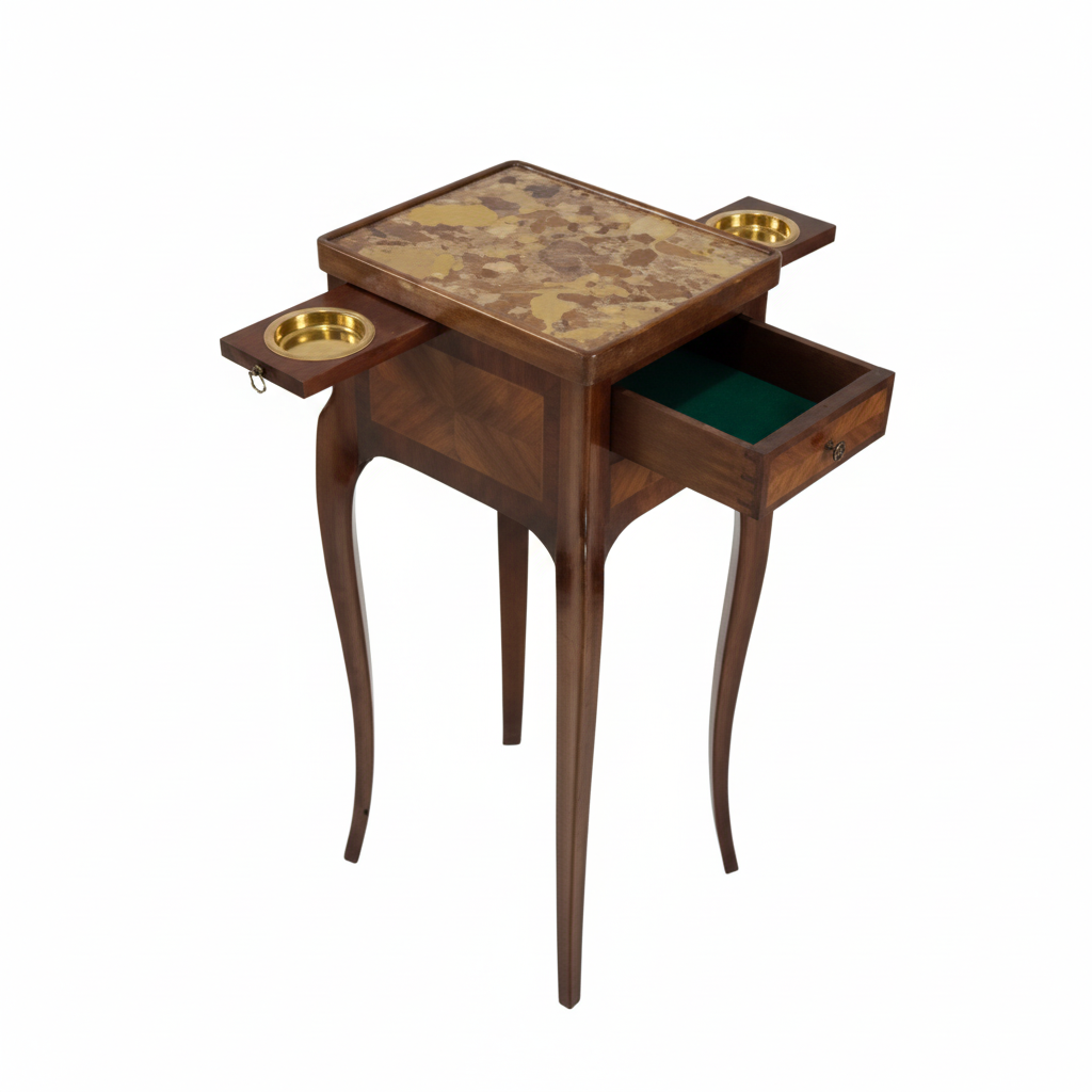 Two drawers and two ashtray trays in brass, brèche d'Alep marble top. Louis XV style.