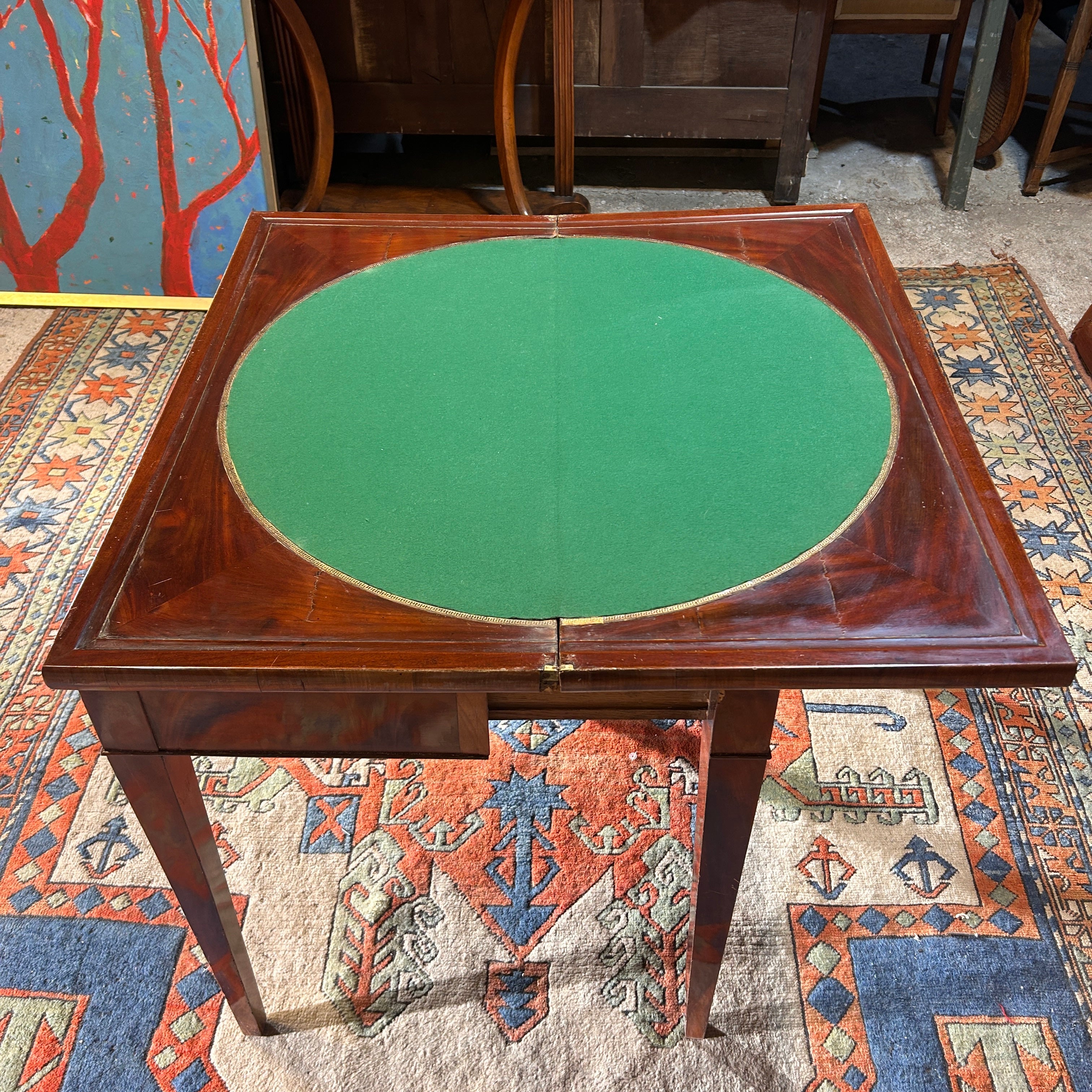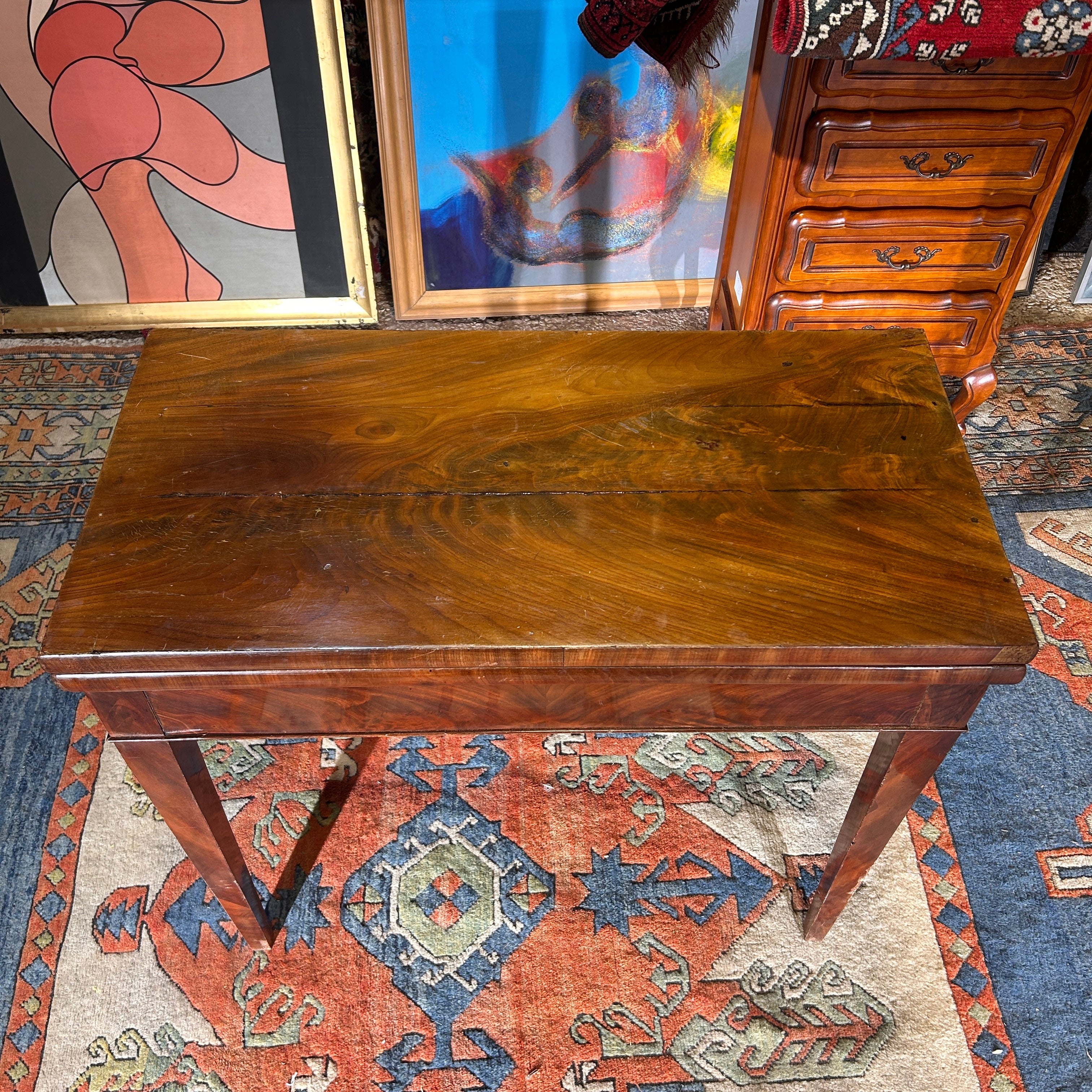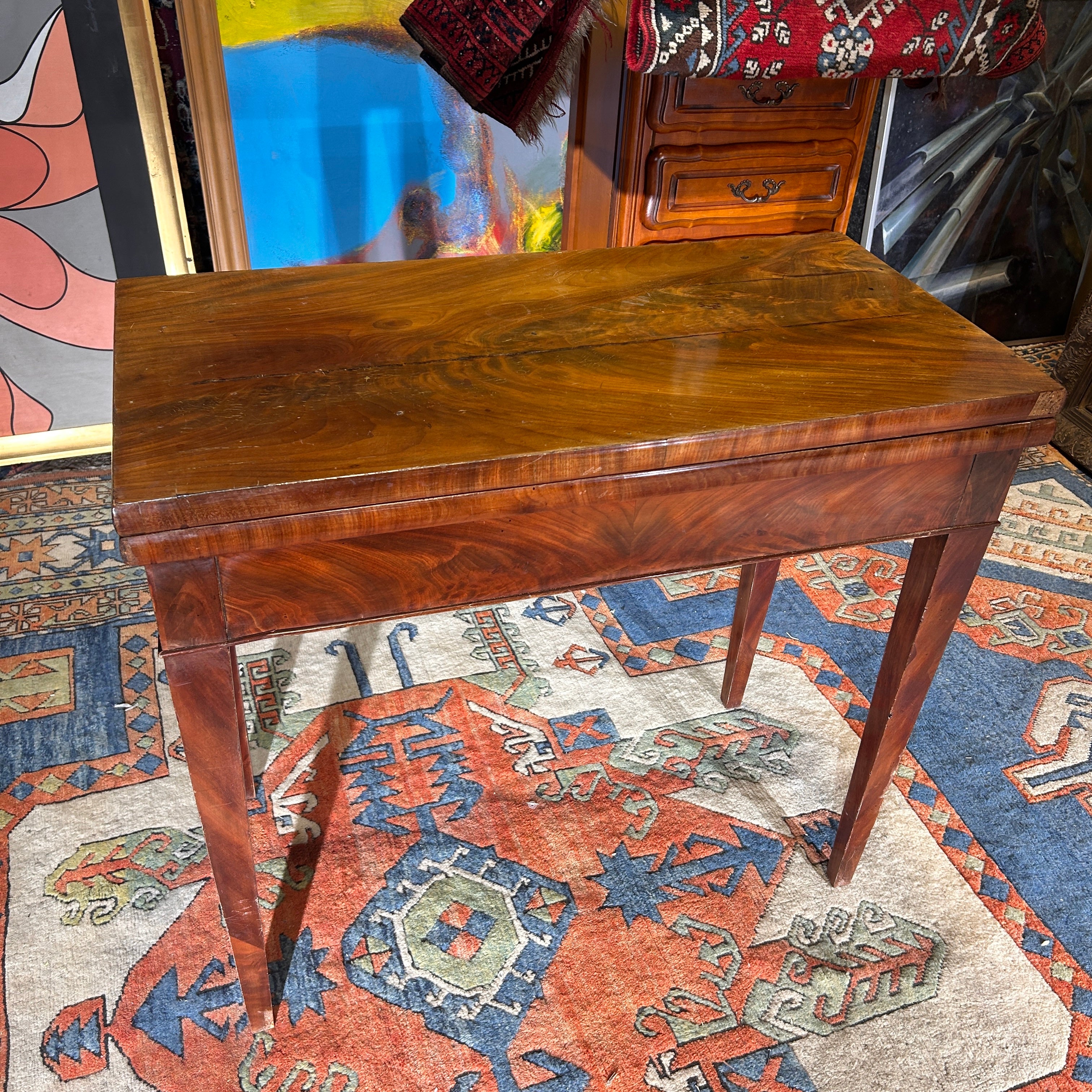Small game table in veneered wood.