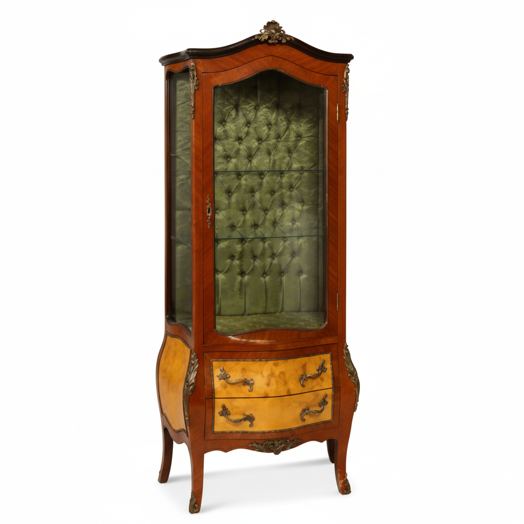 Pequeña vitrina de entrepaño francesa con dos cajones inferiores