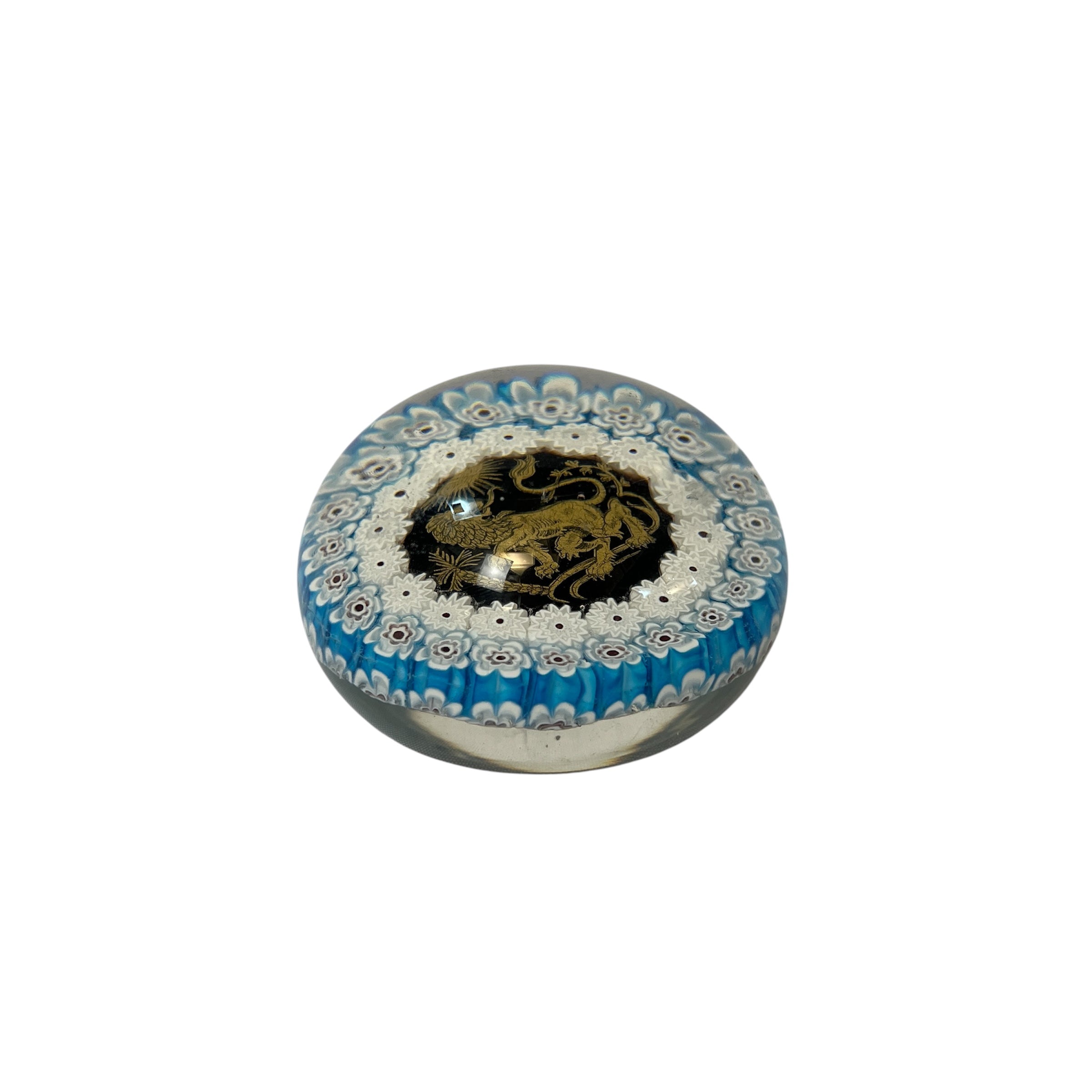 Pisapapel de vidrio millefiori y león dorado en su interior circa 1900