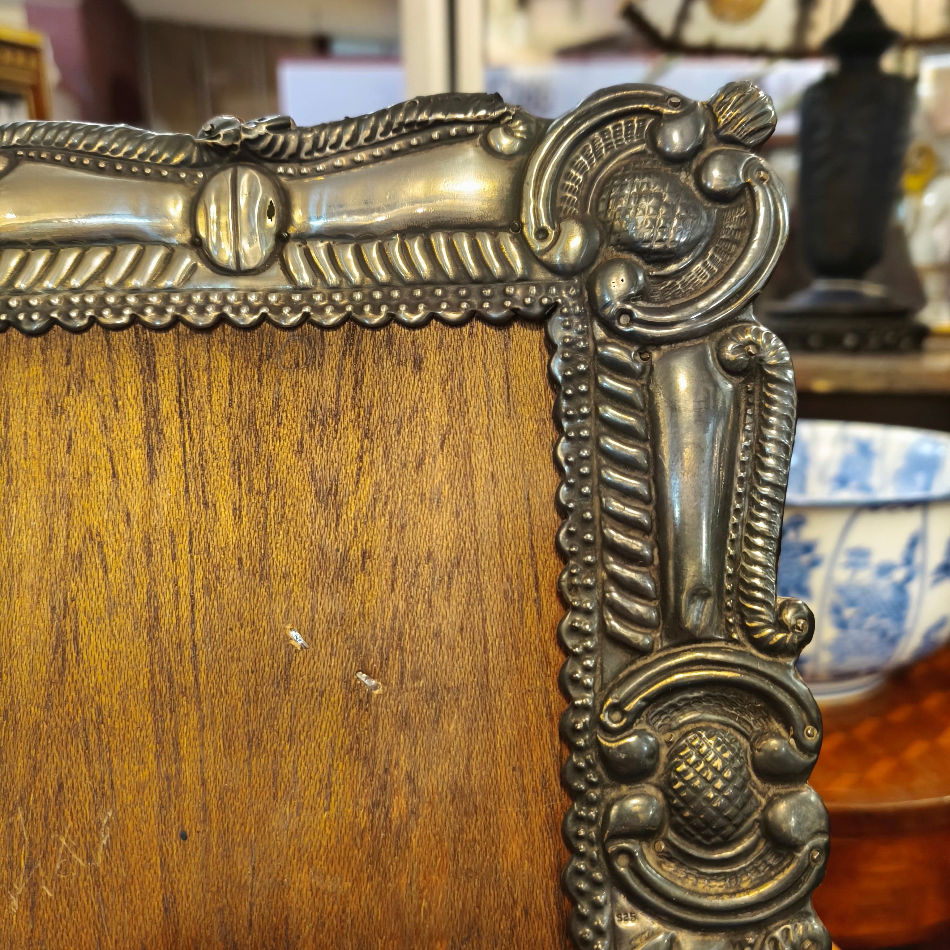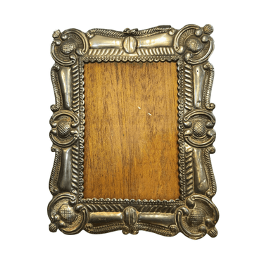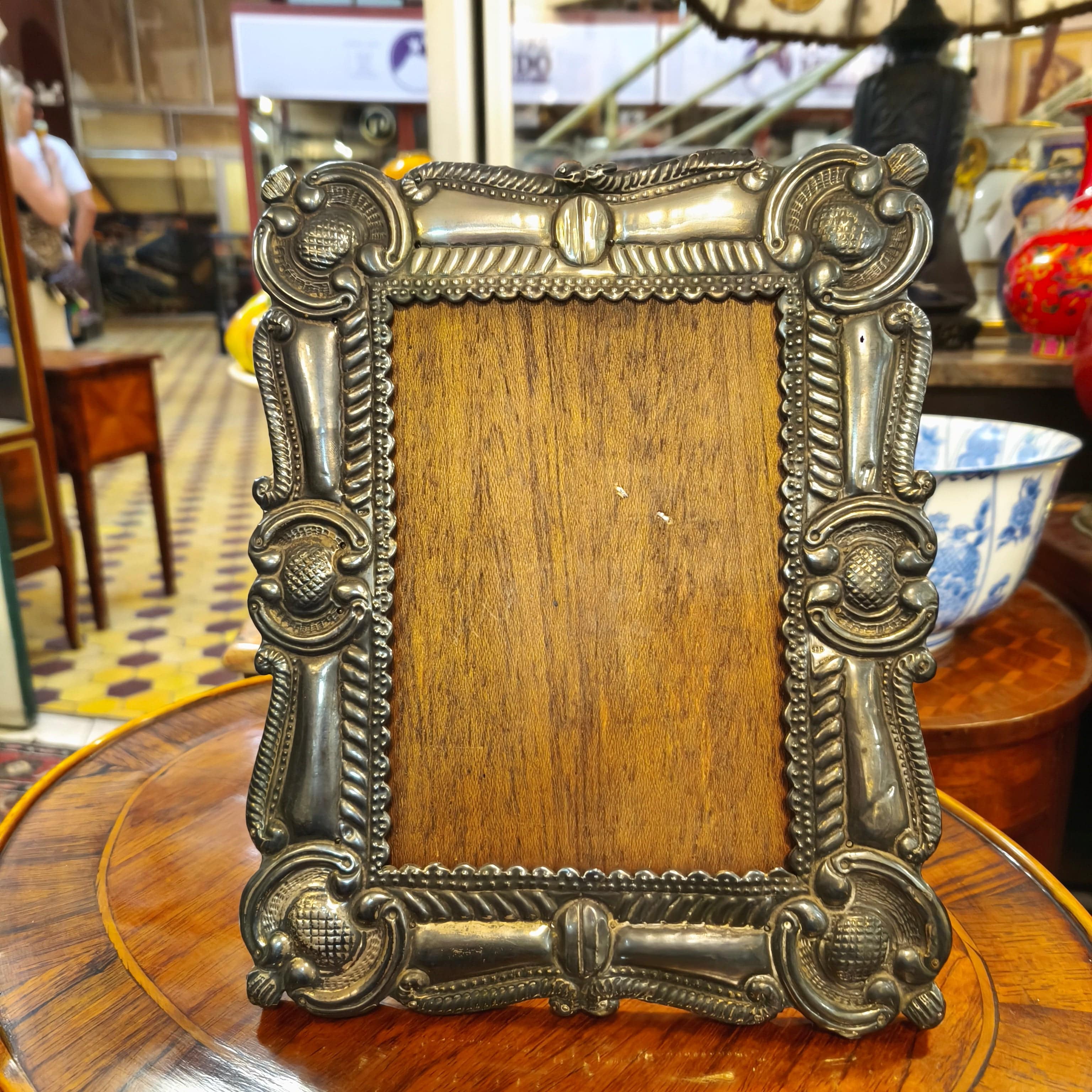 Magnifique grand cadre photo en argent sculpté, base en bois.